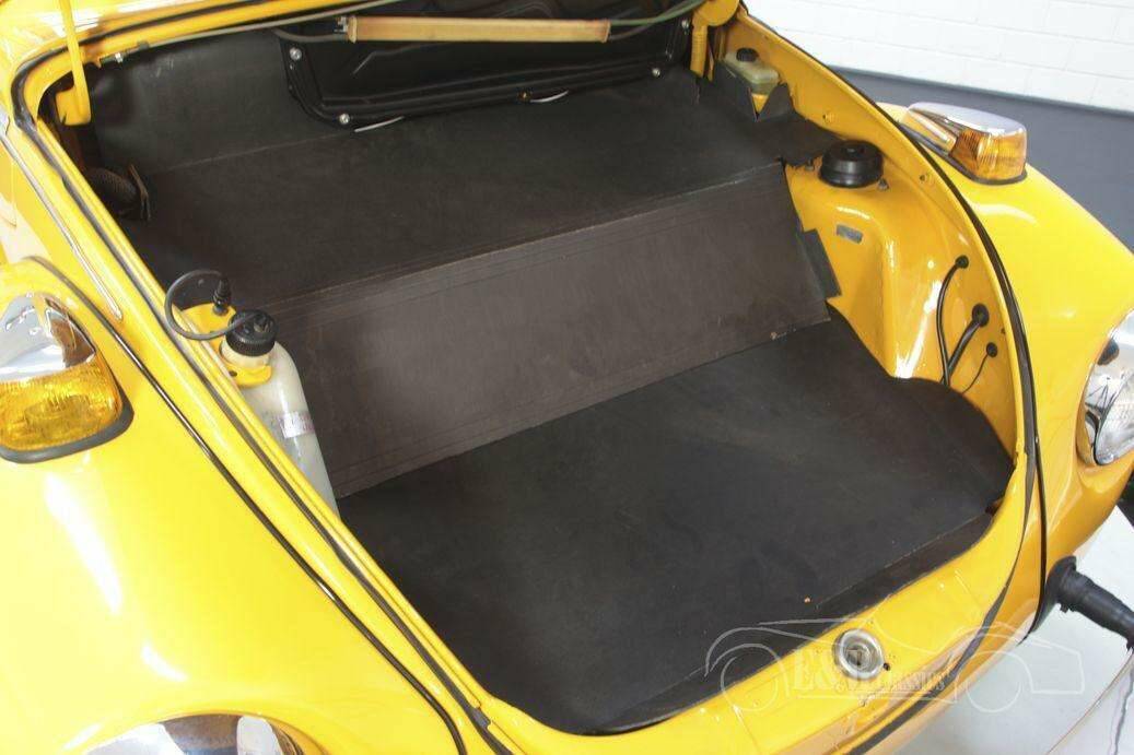 Het gele lakwerk is in een zeer goede staat en is de perfecte kleur voor een Kever. Het chroomwerk springt eruit en staat erg mooi bij de kleur van de auto. Ook het interieur ziet er prachtig uit en is voorzien van donkere bekleding die erg mooi combineert bij het opvallende uiterlijk. Zonnetje erbij, kap naar beneden en rijden maar.
