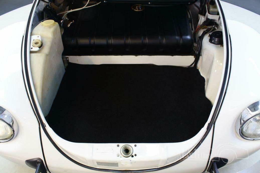 The Volkswagen Beetle Cabriolet that we offer for sale here is truly a sight to behold. It has a beautiful white paint that combines very nicely with all chrome accessories and the black soft top. The interior is in very neat condition and has black upholstery that contrasts nicely with the white paint.
