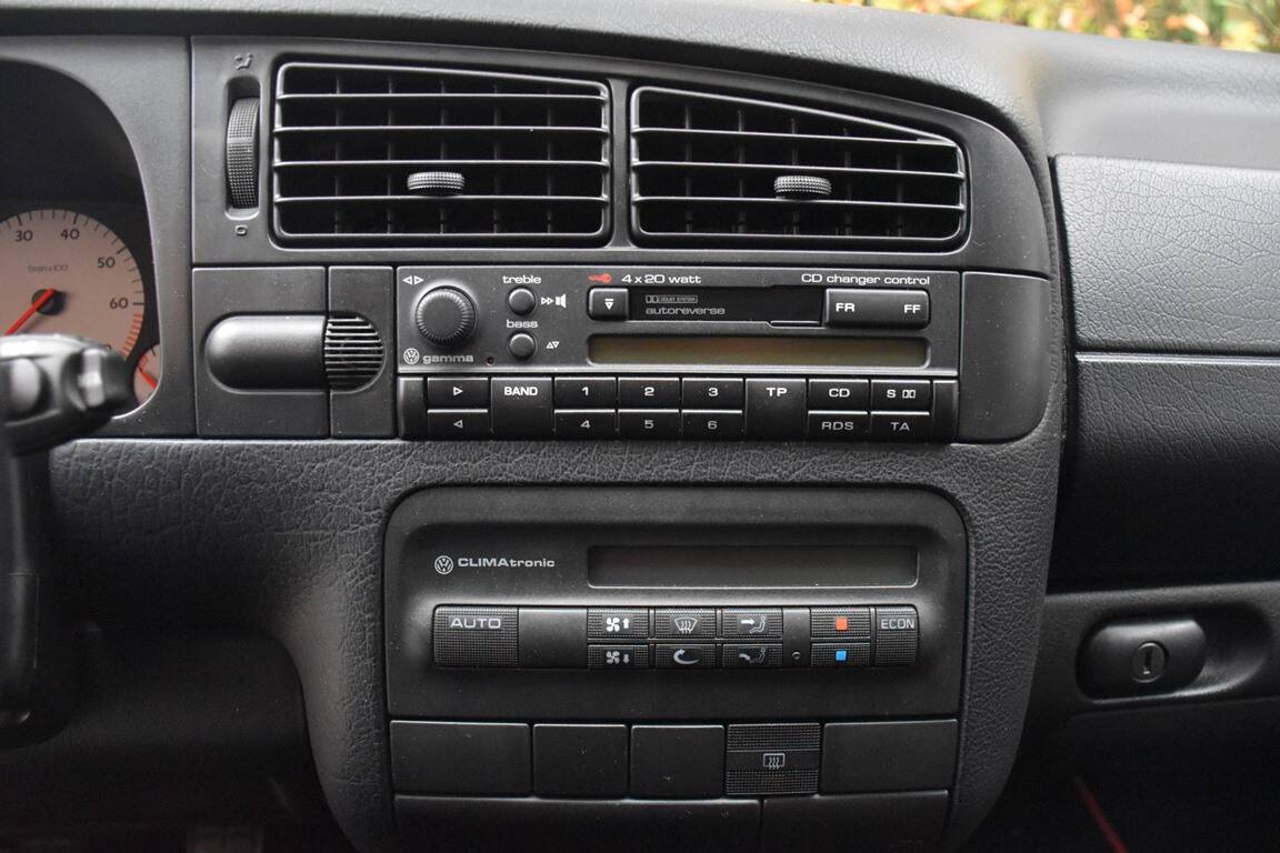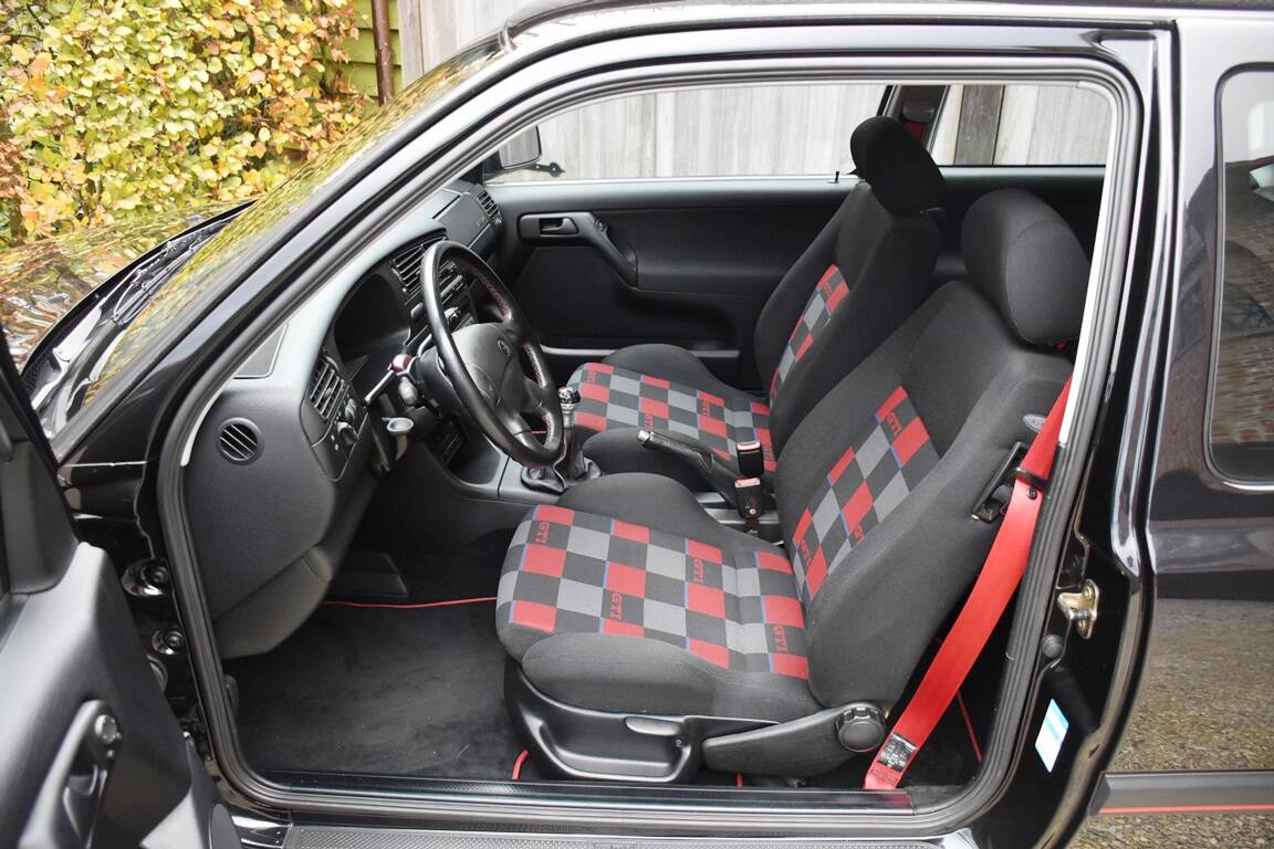This particular example must be one of the best still in existence. It is perfectly maintained and in stunning original condition. The body is still in the original factory first paintwork without any significant signs of use or wear. The interior looks and smells like new and without any modifications. The car comes with a full VW-dealer stamped service book and the timing belt is recently replaced as well as the airconditioning refilled. This GTi was originally delivered to the first German owner by Volkswagen-Audi dealer Scherer in October 1997, and only had 4 owners since. It is absolutely rust- and accident-free, and the low mileage is verifiably documented. All factory stamps and stickers are still present as well, and so are all books and tools.