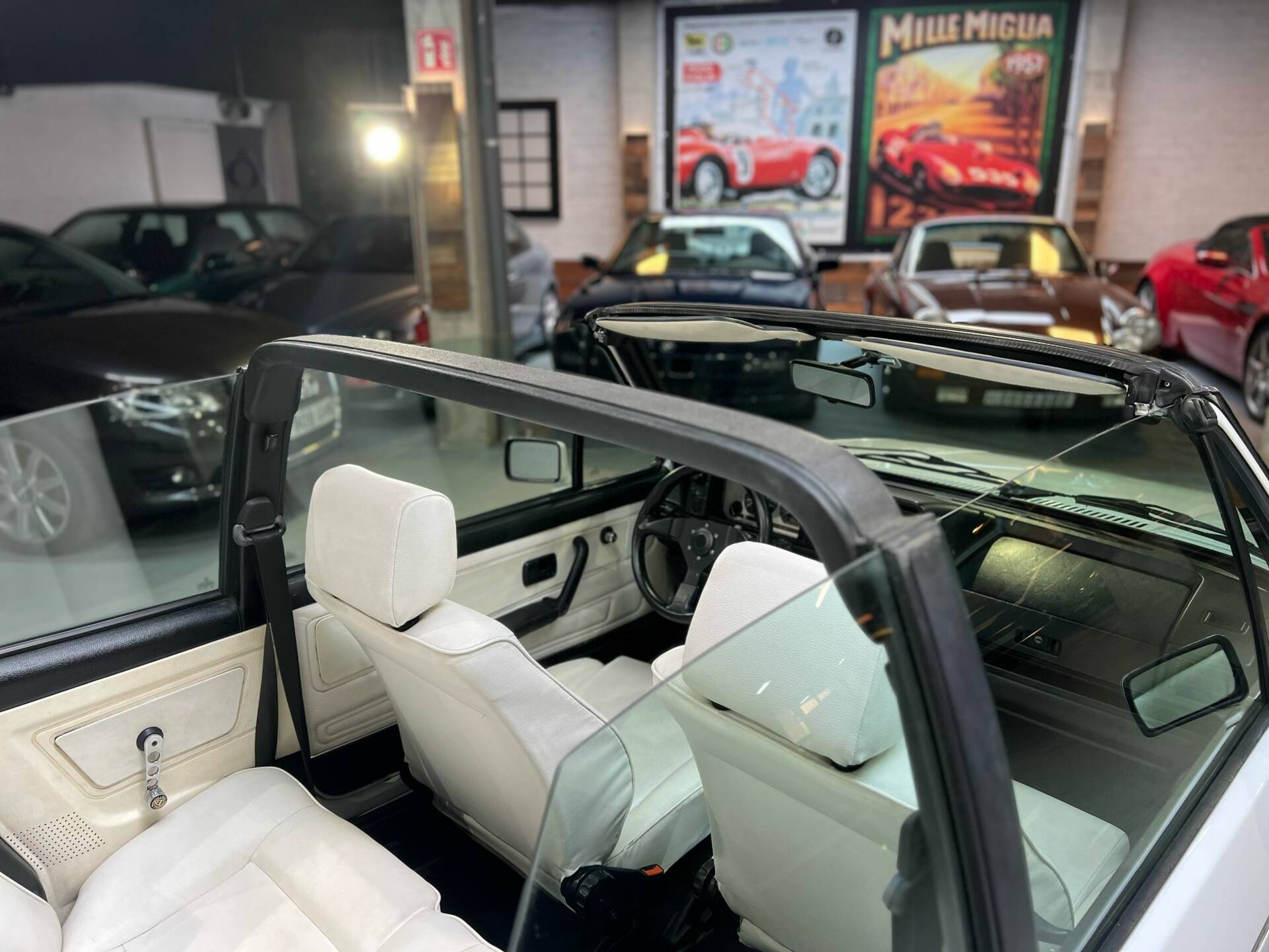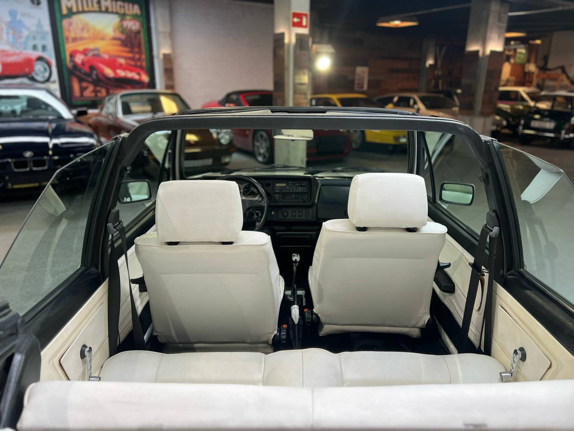 Exterior Finished in its original color and showing excellent gloss and panel fit, this Cabriolet stands out with its set of iconic original BBS wheels—a true GTI hallmark. The electric soft top operates smoothly and is free of damage. The bodywork and underbody are solid, rust-free, and have been carefully preserved, highlighting the car’s superb structural integrity.
