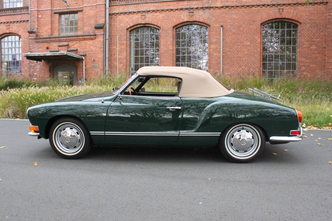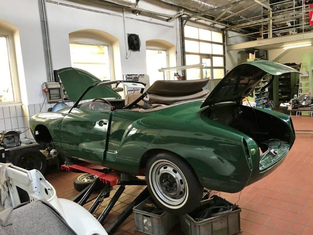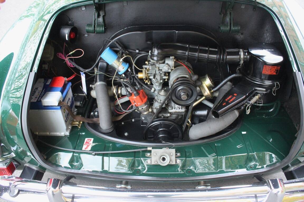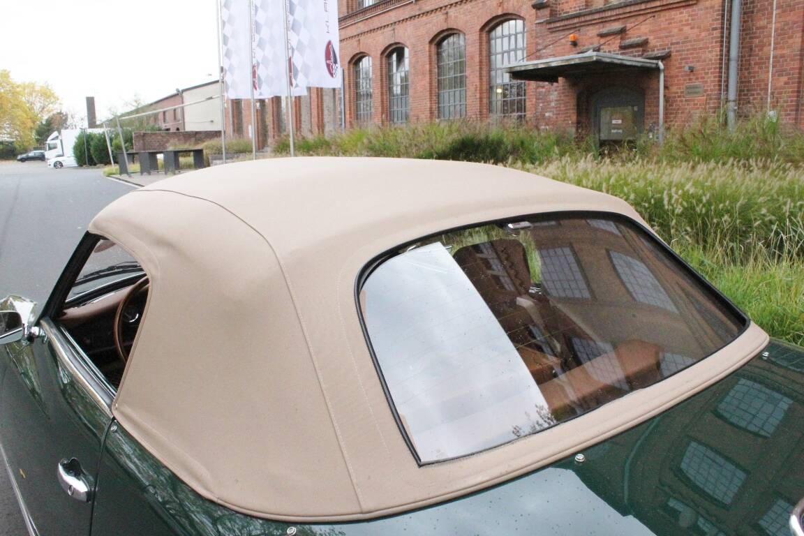 Es wurde auf rostfreier Basis in der orig. Farbkombi dkl. grün mit Leder tan nach Deutschland geliefert und hier von einem sachkundigen typenspezifischem Betrieb restauriert.