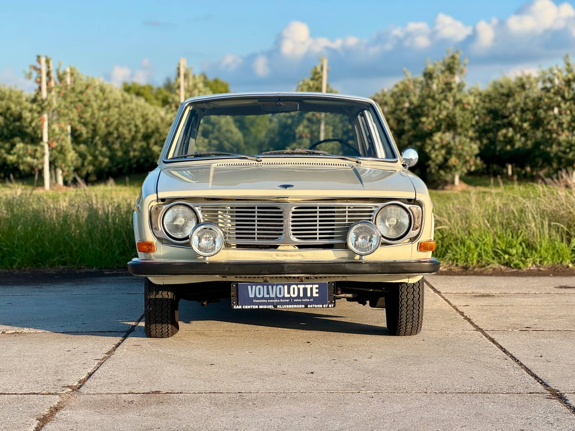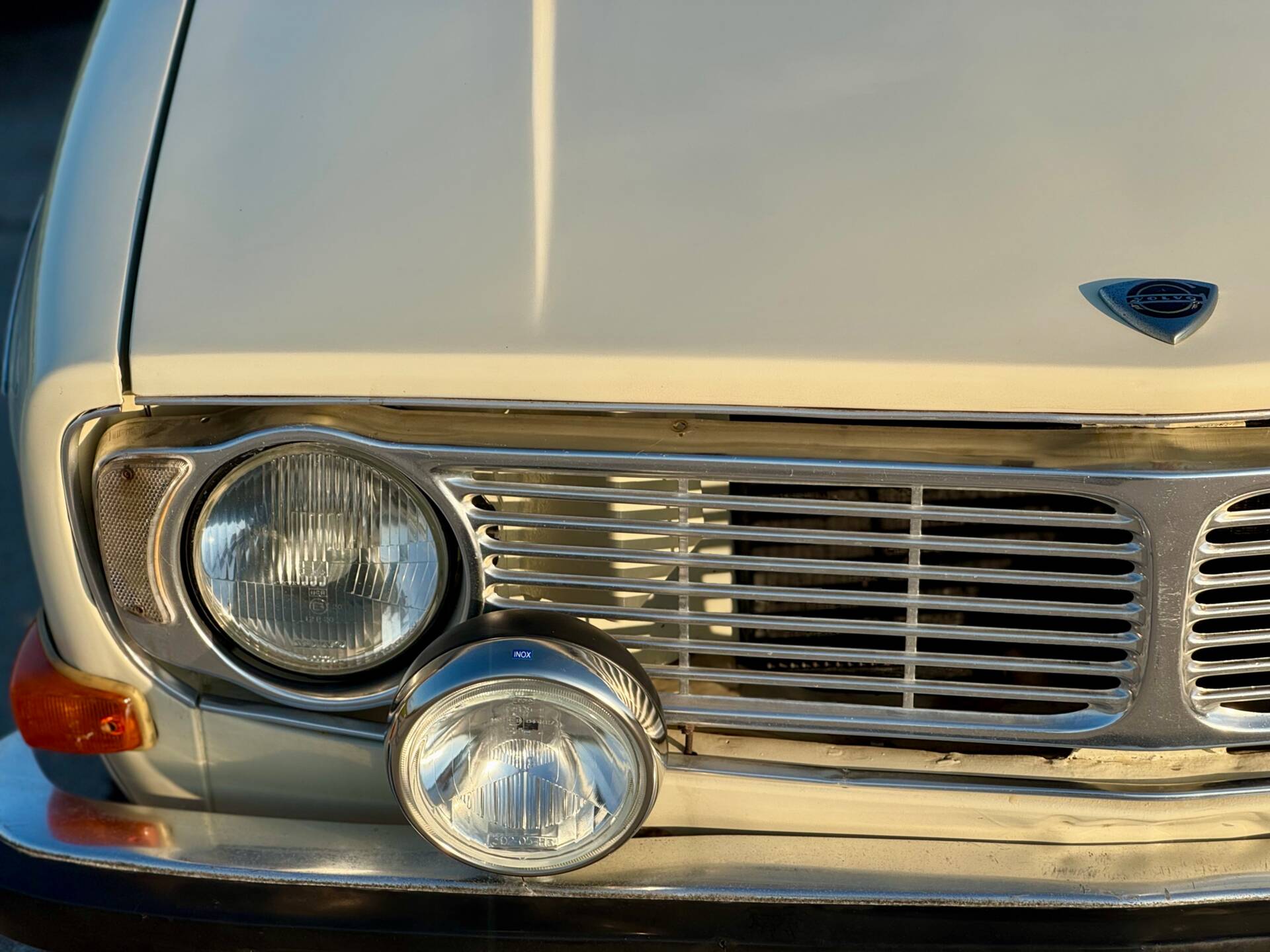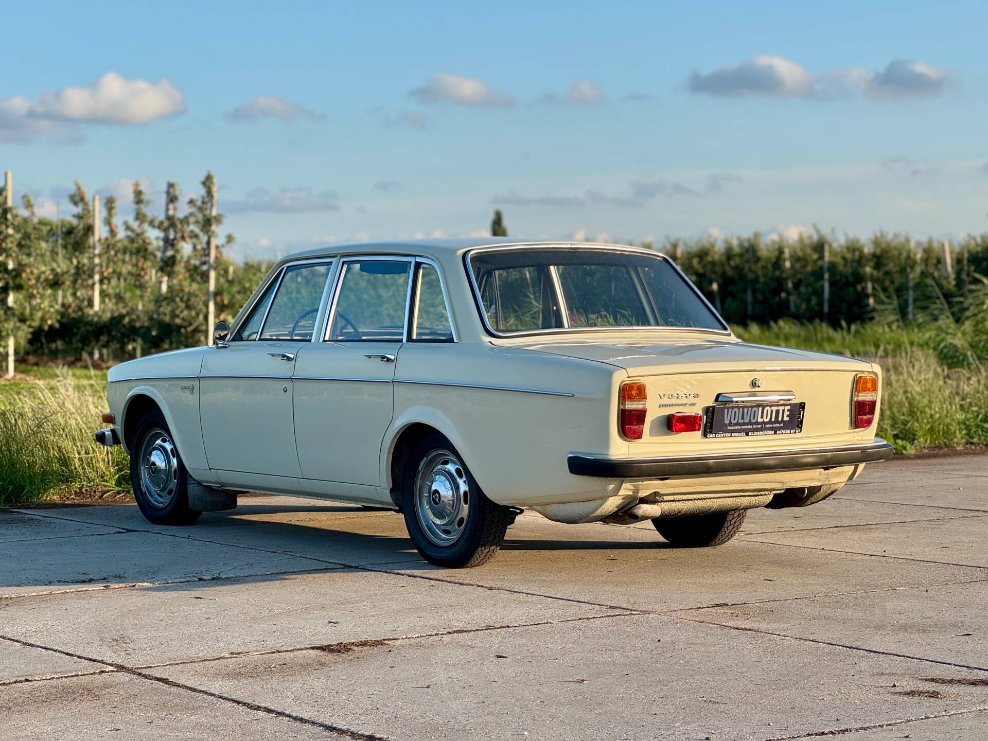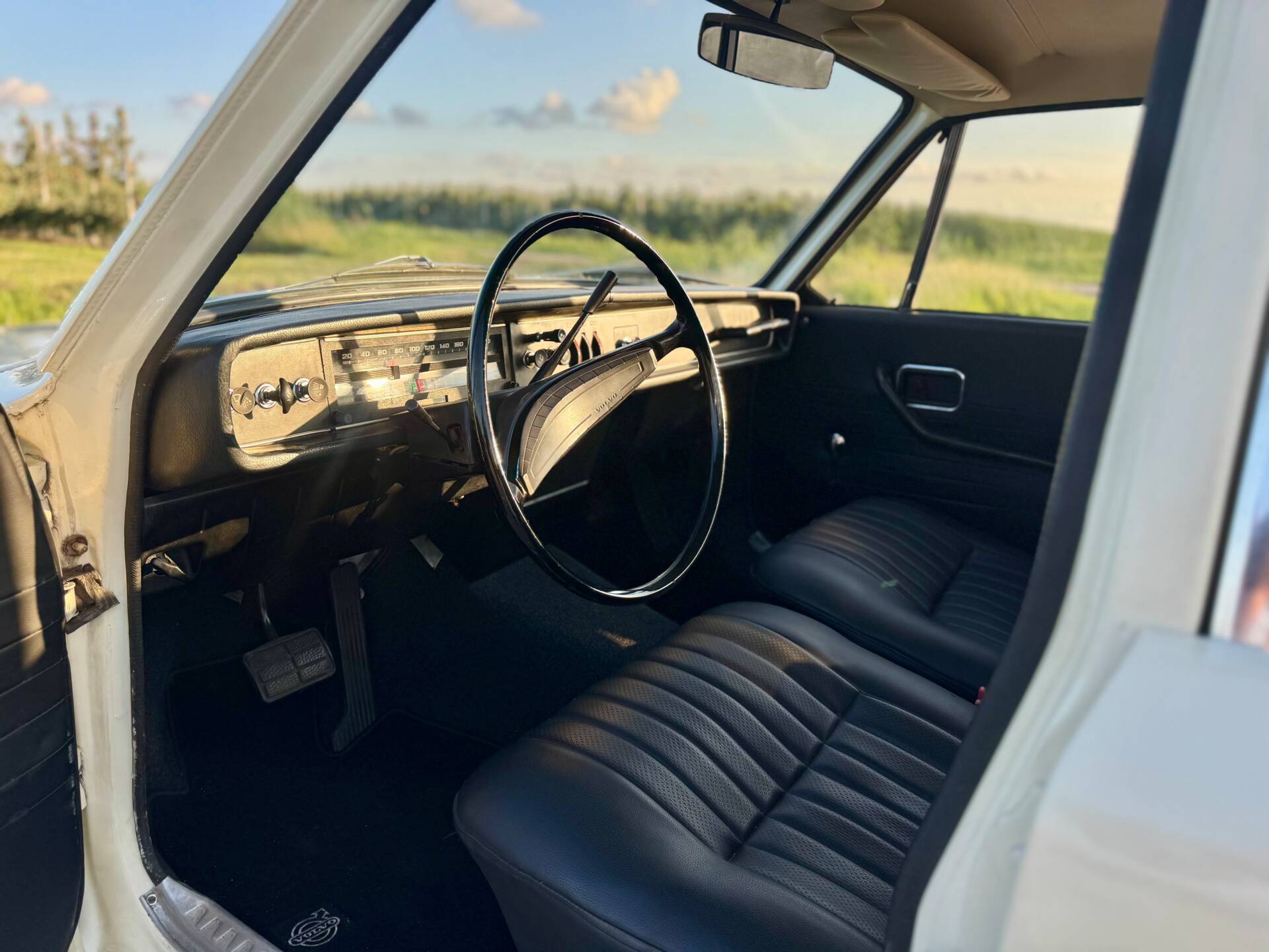 La Volvo 144 se distingue par sa élégante teinte blanc cassé et conserve une allure authentique grâce à ses jantes en acier d’origine. Des éléments supplémentaires, tels que les projecteurs avant et le feu antibrouillard arrière, garantissent une visibilité et une sécurité optimales. Cette voiture soignée allie style et fonctionnalité pour faire de chaque trajet une expérience unique.