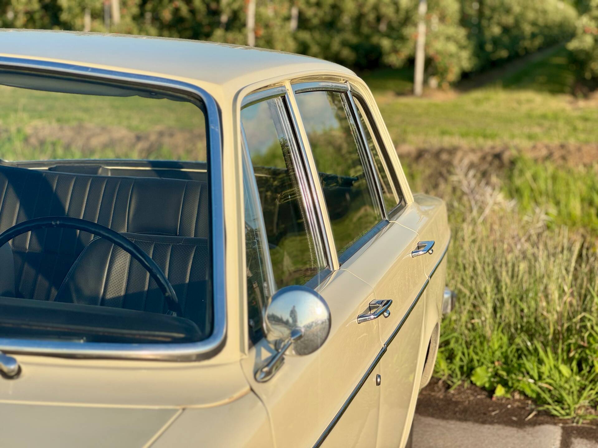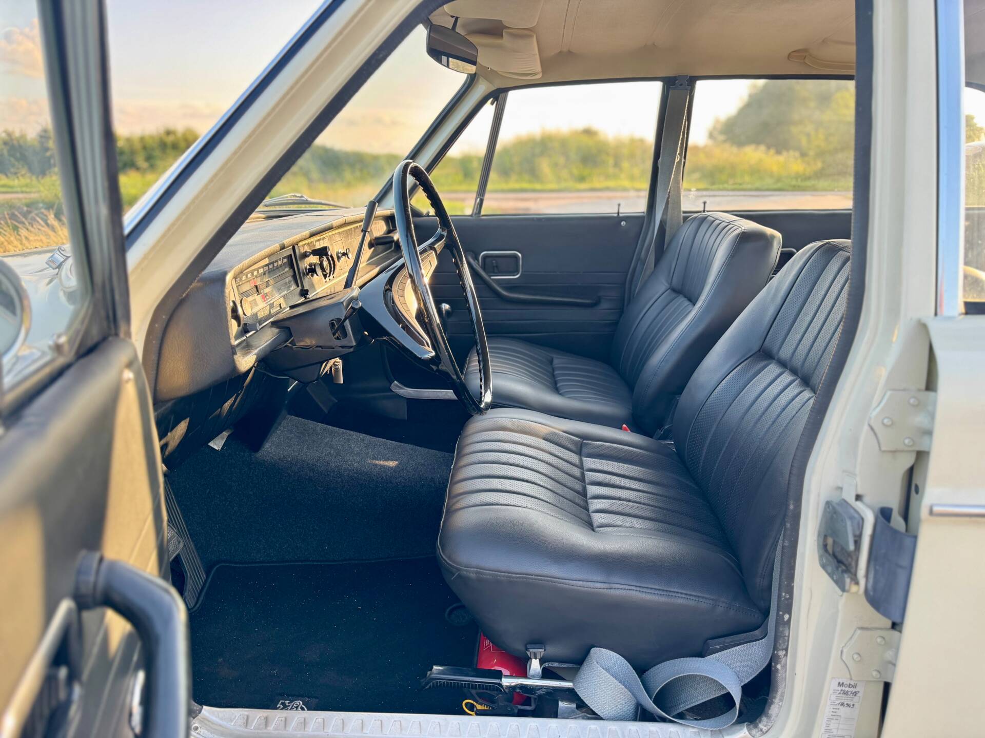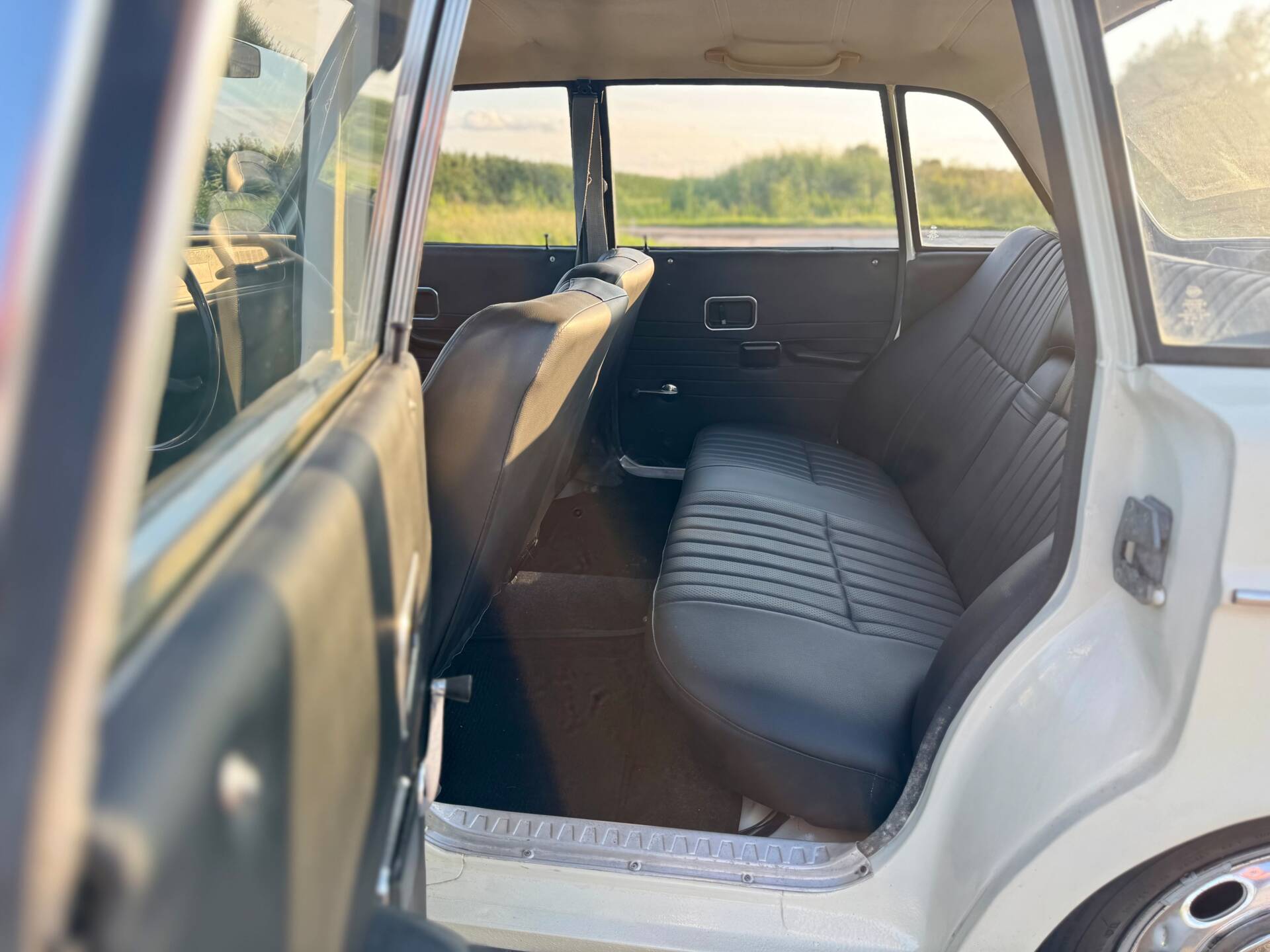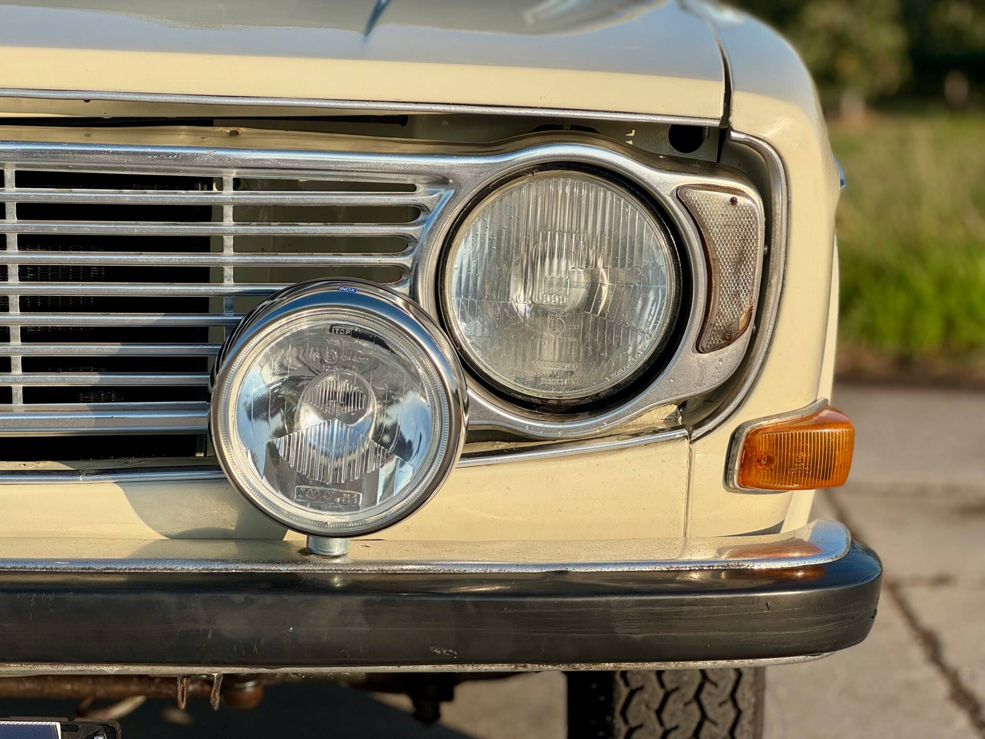 La Volvo 144 se distingue par sa élégante teinte blanc cassé et conserve une allure authentique grâce à ses jantes en acier d’origine. Des éléments supplémentaires, tels que les projecteurs avant et le feu antibrouillard arrière, garantissent une visibilité et une sécurité optimales. Cette voiture soignée allie style et fonctionnalité pour faire de chaque trajet une expérience unique.