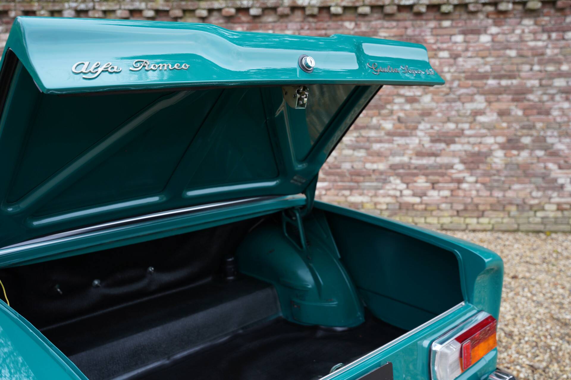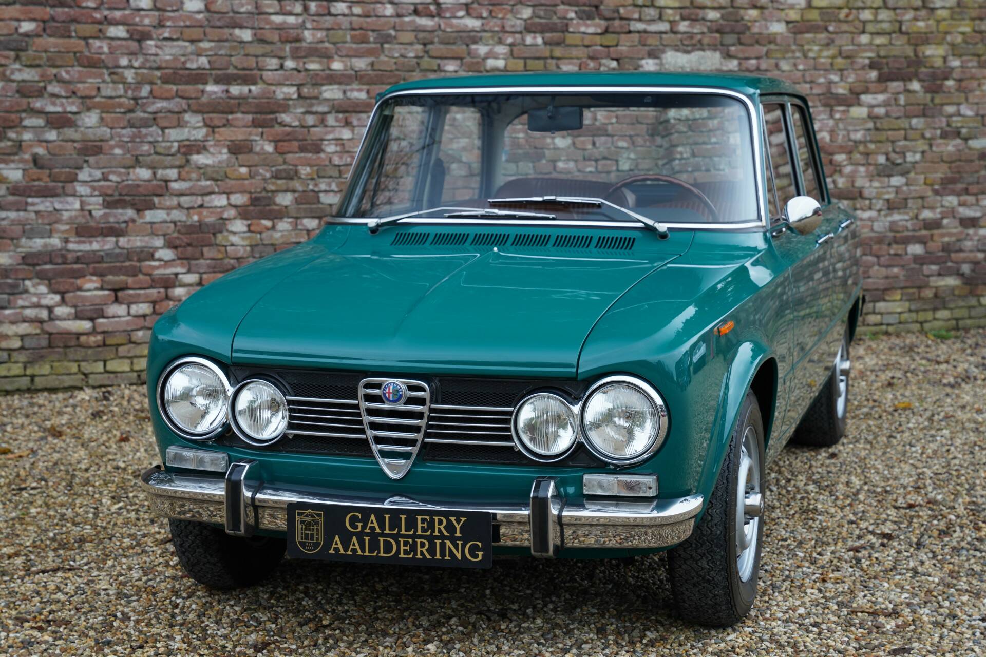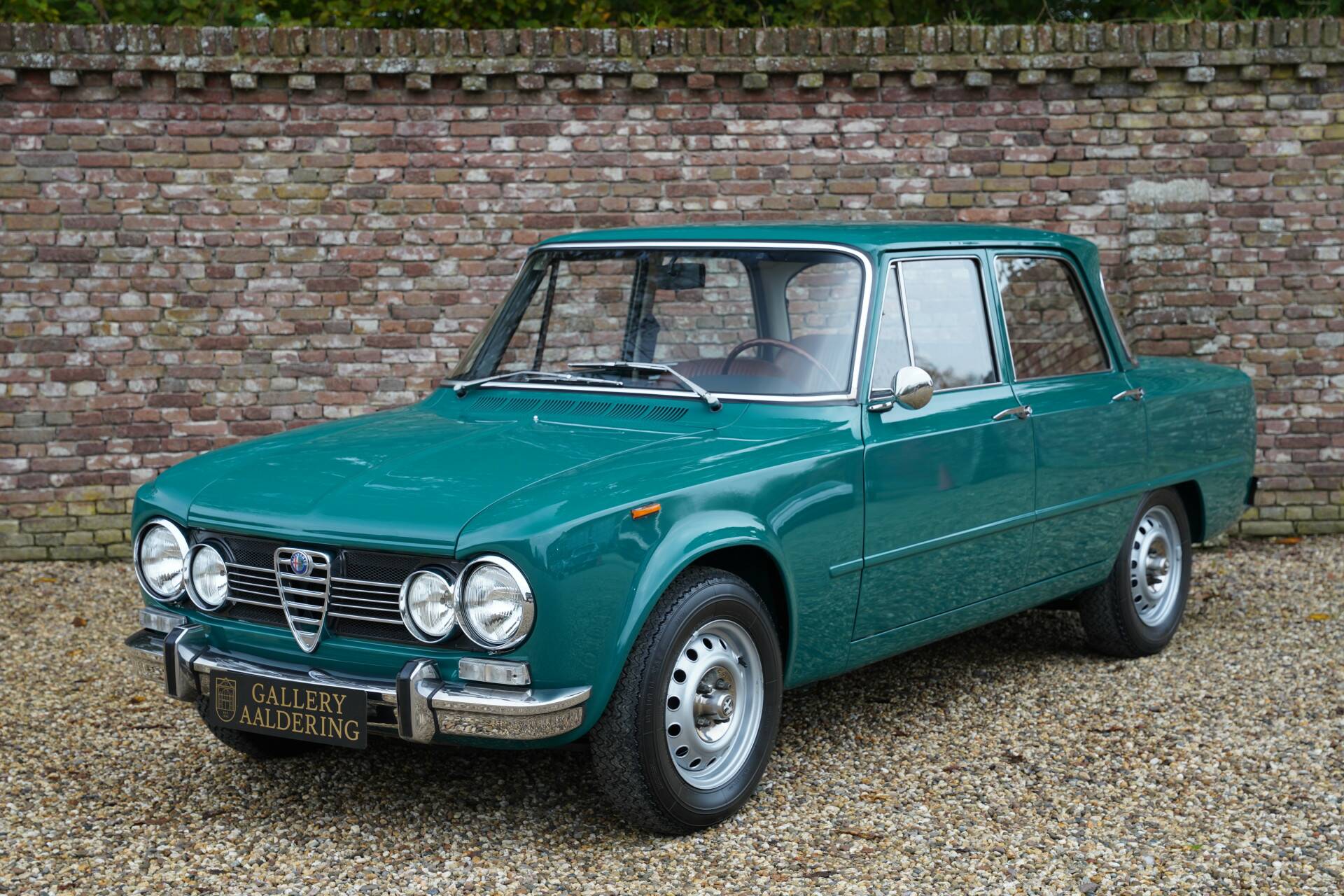 Alfa Romeo Giulia 1300 Super "Lusso" Superb unrestored and original condition, Two owners since 1971 - Newly delivered in Rome-Italy, Part of a beautiful Italian car collection for a long time, Pino Verde with a brown interior, Never restored - Original sheet metal (bodywork), Offered with documentation and history file, The first Italian “numero di targa” license plates are present.