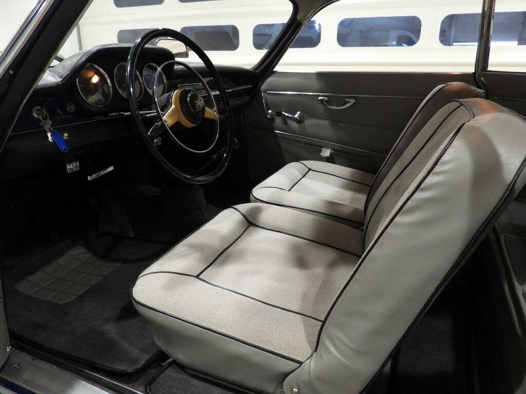 Blue Vipla seats and panels, blue wool carpeting, chrome-plated driver's side mirror