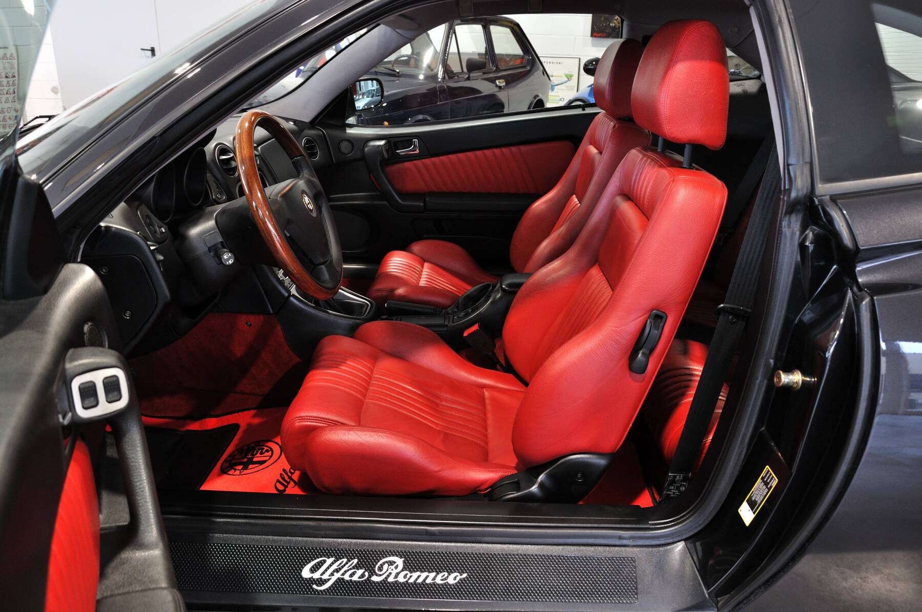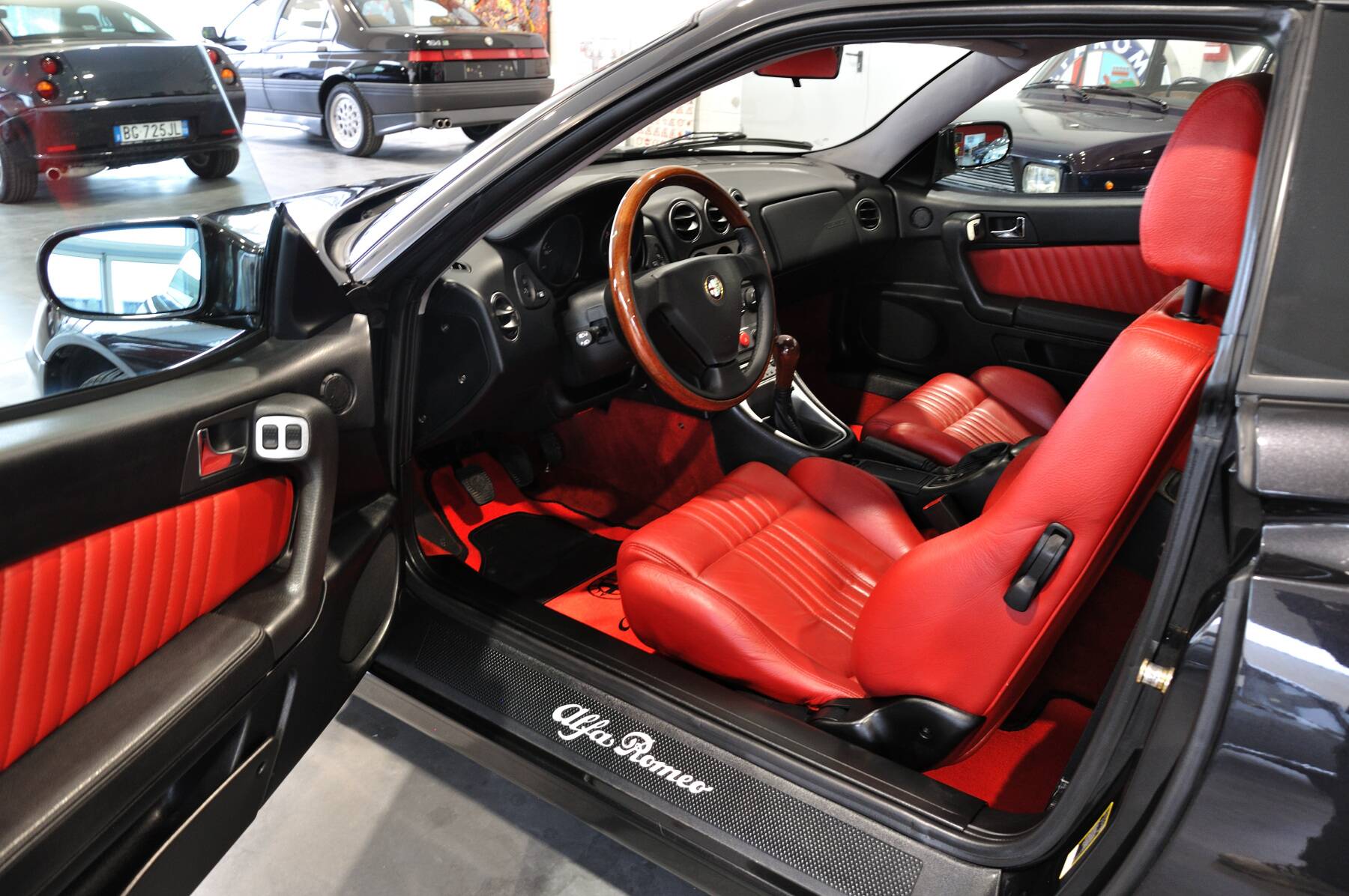 Vettura splendidamente conservata e decisamente accattivante grazie alla particolare combinazione di colori Nero Metallizzato (BLACK 632) con interni in pelle rossa, volante e leva cambio con finiture in radica, cerchi di nuovo disegno da 17 pollici con pneumatici da 225/45 e spoilerino posteriore Lineaccessori.