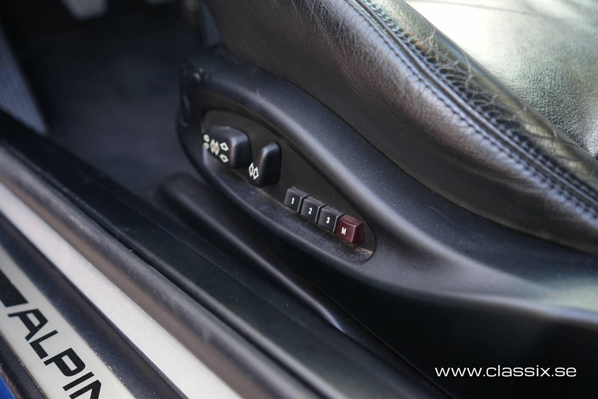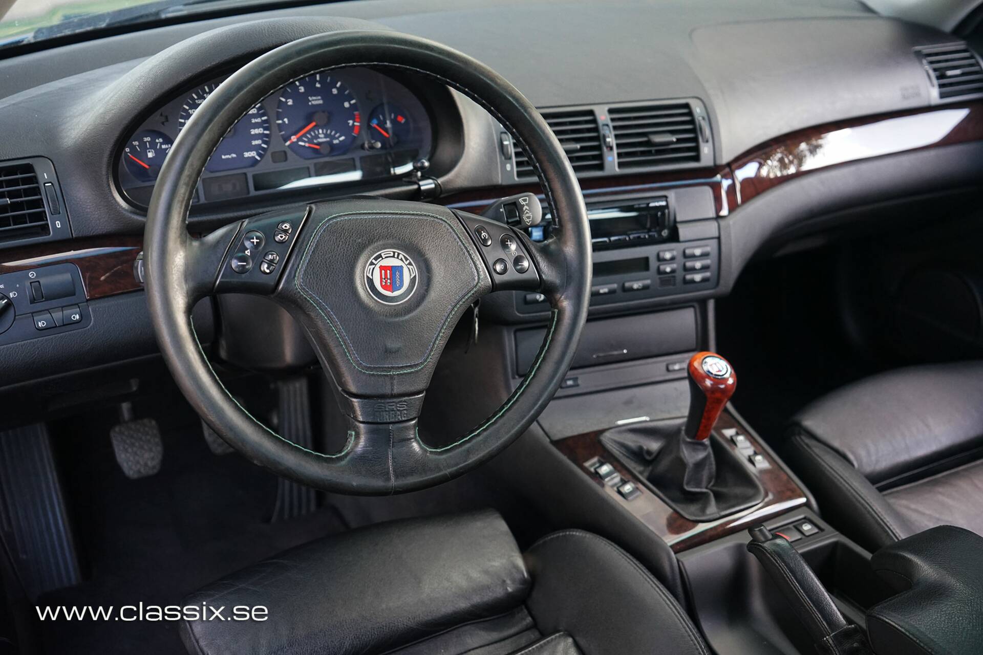 Interior: Inside, this E46 Alpina B3 features a black leather interior, which is actually a bit rarer, as many Alpinas of this generation came with cloth upholstery. It’s well-equipped for everyday use, with cruise control, memory seats, and heated seats adding to the comfort. One charming detail is the rear quarter windows that open electrically to the side. The only non-original element is the stereo, which has been upgraded to a modern unit with Bluetooth and aux input, more practical today. Everything else works as it should, including the air conditioning. It’s a very inviting and usable cabin that feels special without being over-the-top.