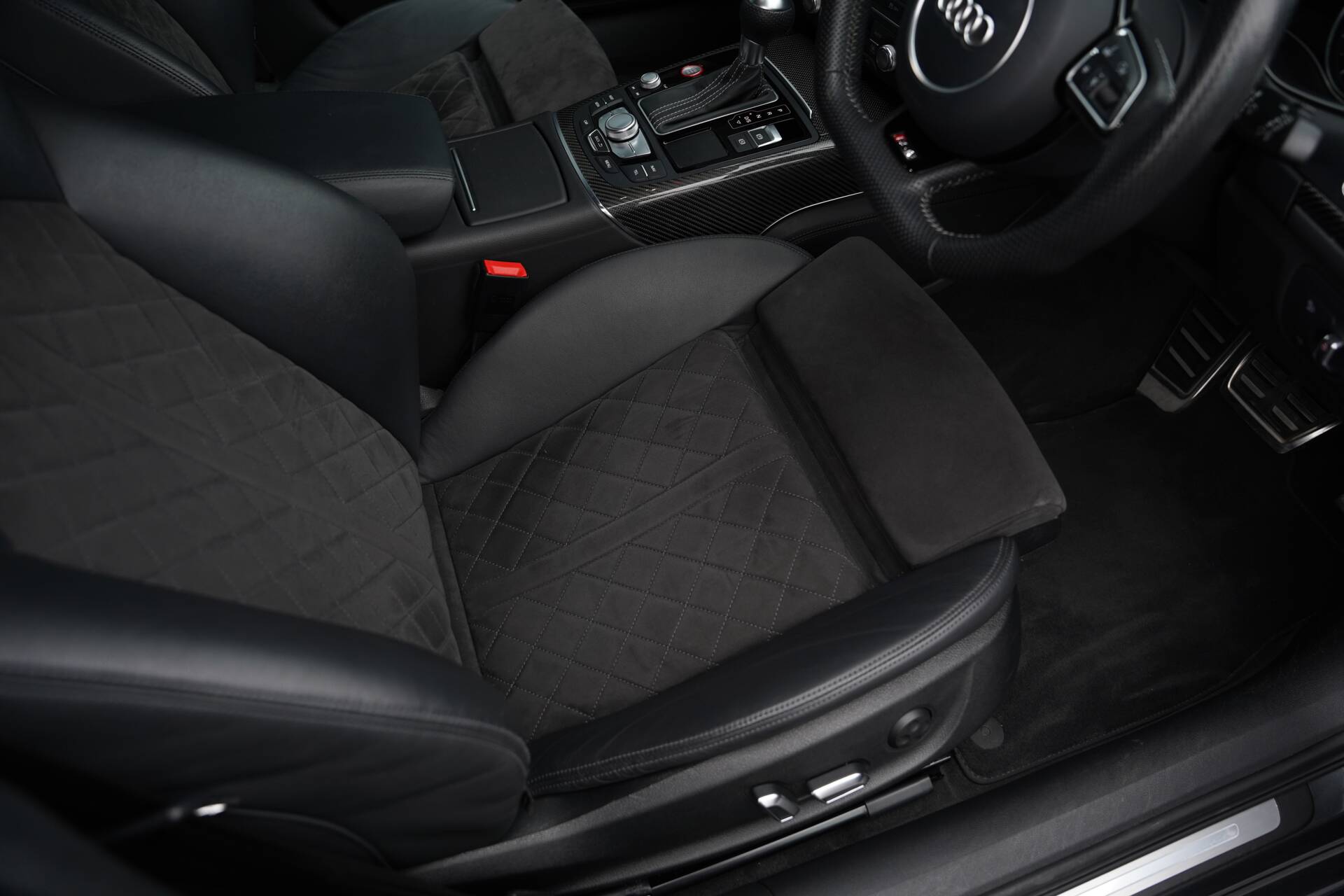 The carbon fibre inlays provide great contrast across the centre console, dashboard and door cards. The leather clad Sports steering wheel is in fantastic condition and the MMI Navigation Plus controls are well thought out and easy to use. The spacious and versatile boot provides all the storage room necessary, with a cargo net and load cover for added security. BOSE Surround Sound finishes off the interior perfectly, providing an engaging audio experience.