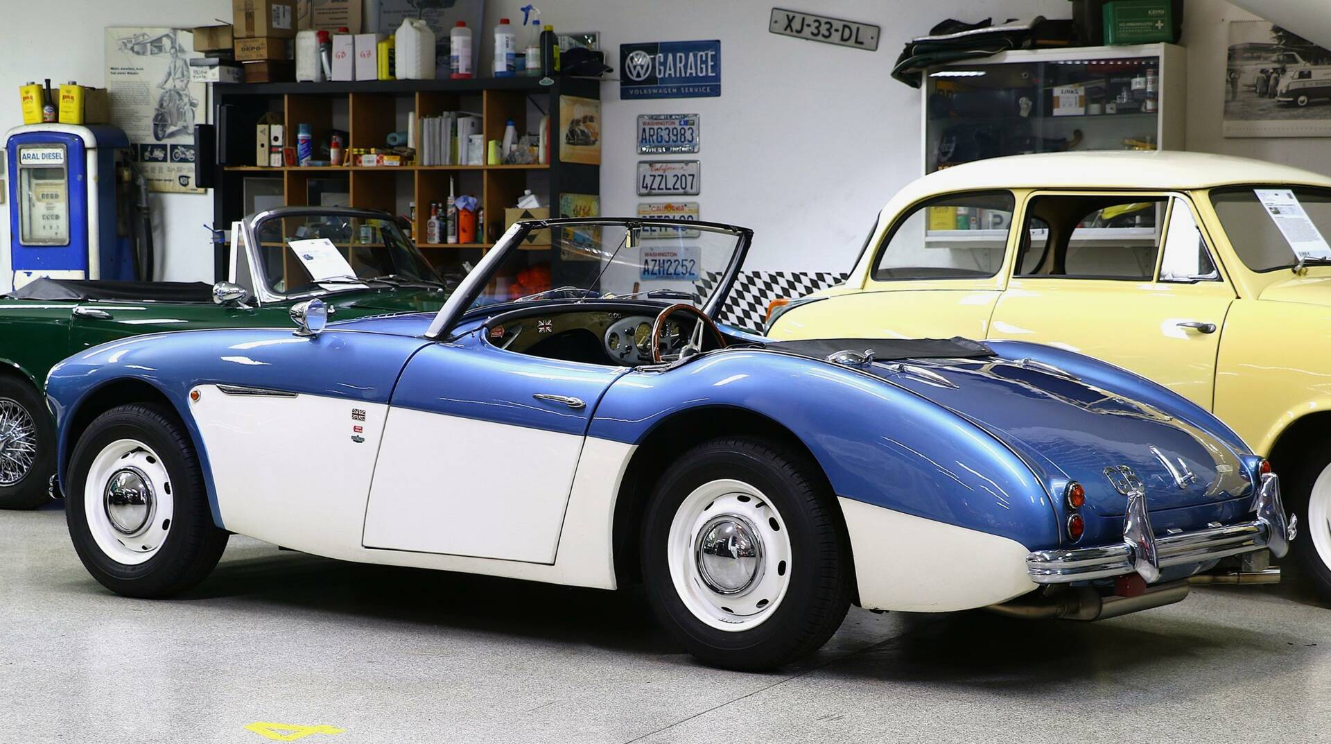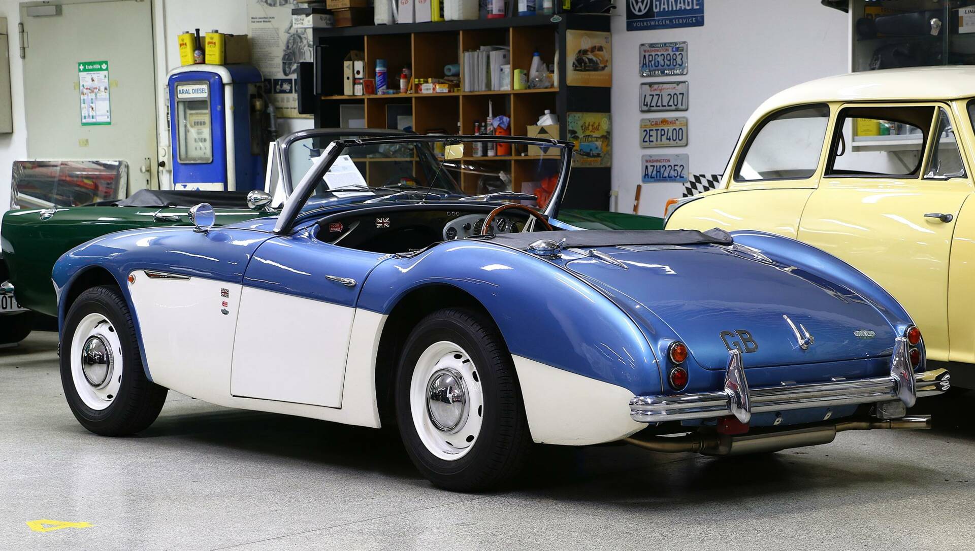 Unser HD-100 verfügt zusätzlich über einen (aktuell abgebauten) Überrollbügel, ein Soft-Top mit Verdeckgestänge und ein (ultraseltenes) Hardtop (restaurierungsbedürftig).
