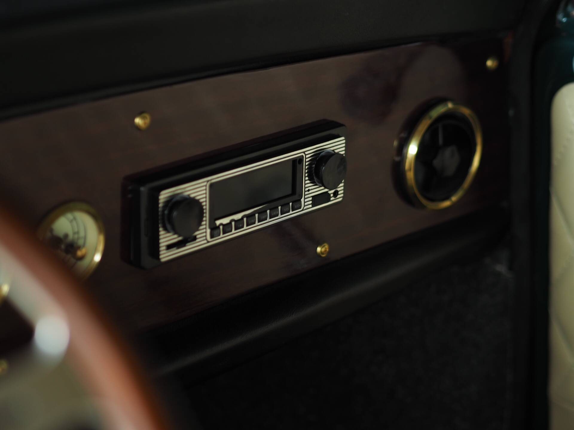 • Beautiful clock cluster in the wood-trimmed dashboard
