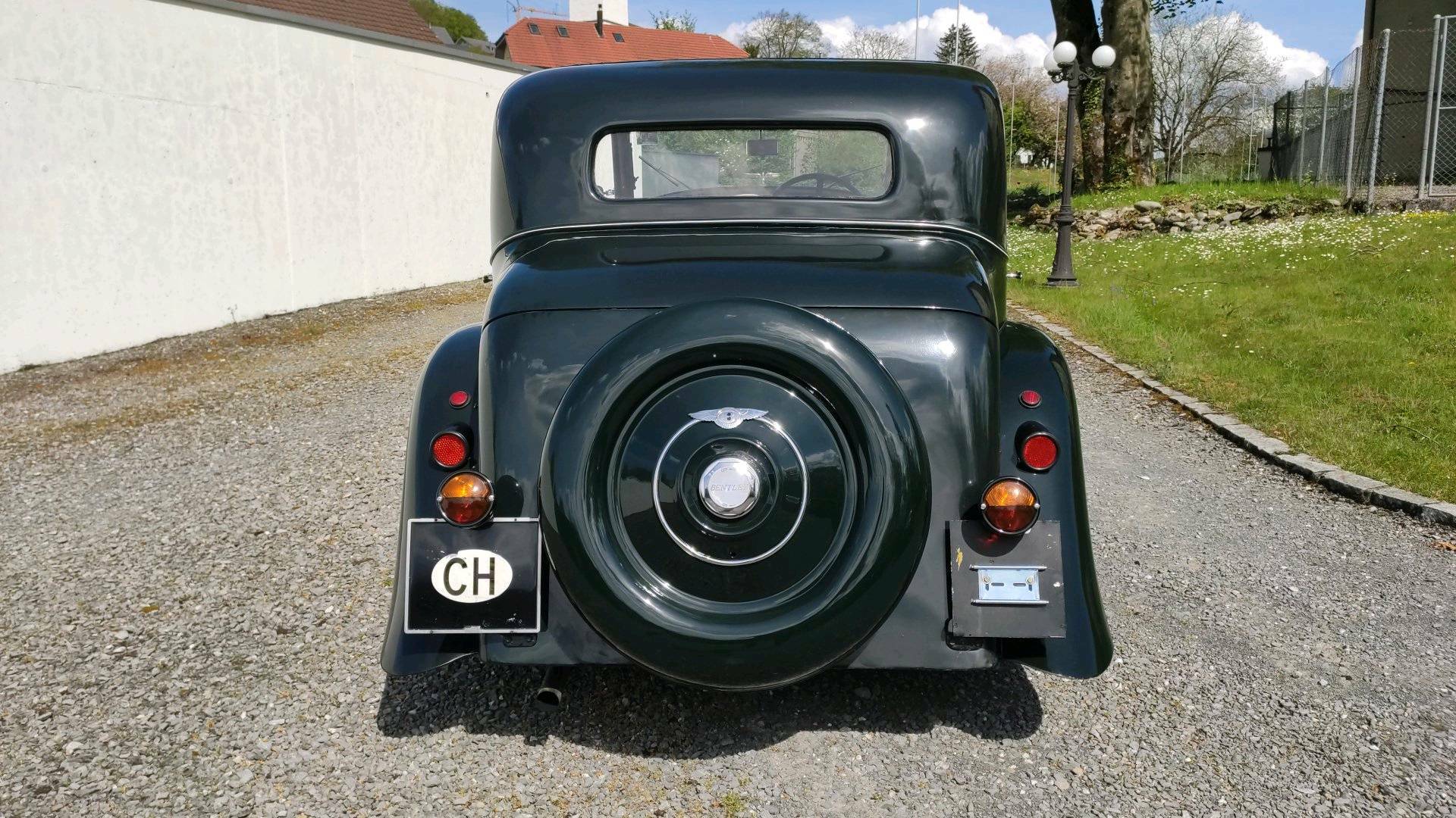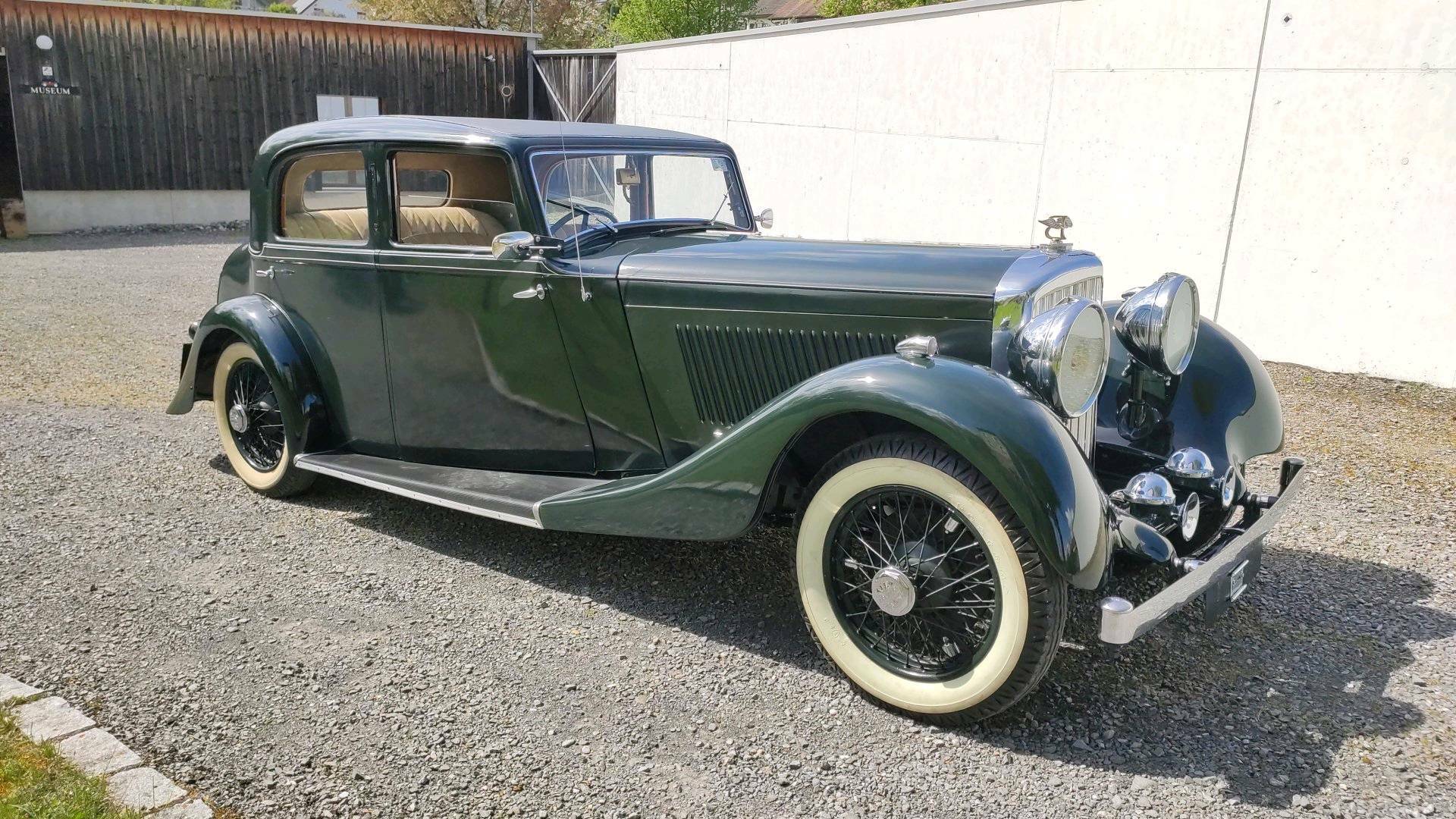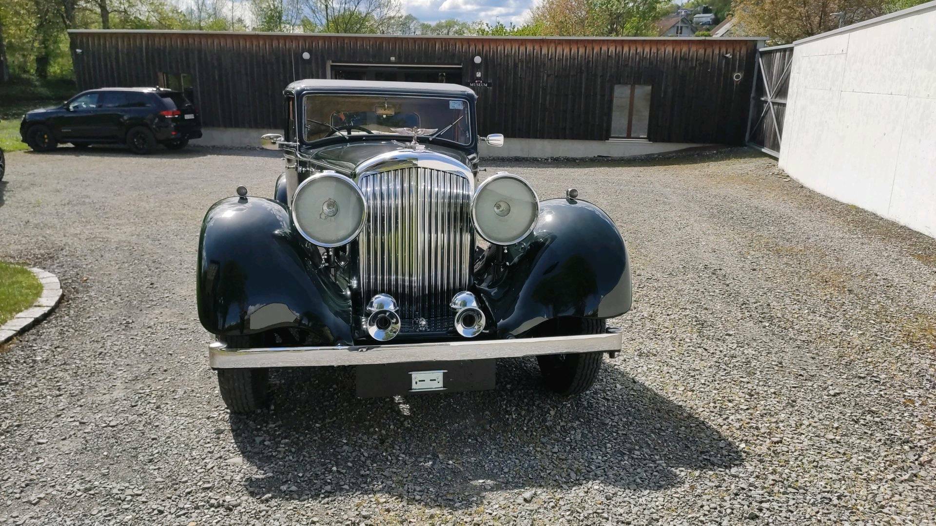 Vom Bentley 3.5 Litre wurden 1177 Stück gebaut, davon etwa die Hälfte mit Park Ward Sports Karosserie. Das Fahrzeug wurde vor einiger Zeit restauriert. Dabei wurde auf Originalität und Qualität geachtet. Die Lackierung zeigt inzwischen wieder leichte Alterungsspuren. Sehr schön präsentieren sich Motor und Aggregate. Auch Fahrwerk und Chassis sind einwandfrei. Sitze und Lederpanels haben Patina, aber keine Risse. Die Holzapplikationen sind in sehr gutem Zustand. Das Schiebedach ist fix verschlossen. Der Wagen startet sofort und lässt sich gut fahren. Der Wagen wurde vor mindestens 25 Jahren aus GB in die Schweiz importiert und hatte hier zwei Besitzer. Der Wagen erhielt kürzlich einen umfangreichen Unterhaltservice und hat eine soeben erneuerte Zulassung (MFK) als Veteran.