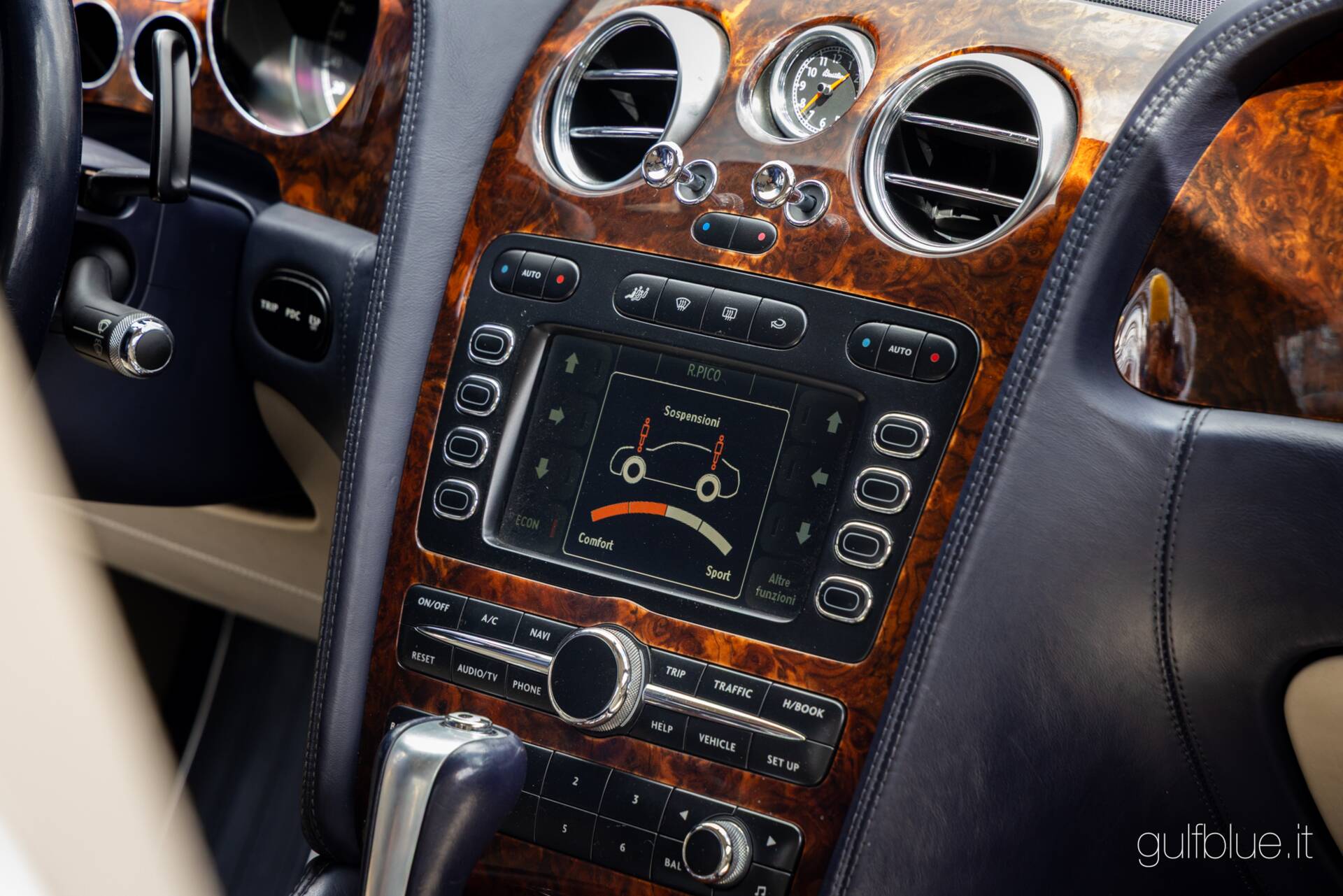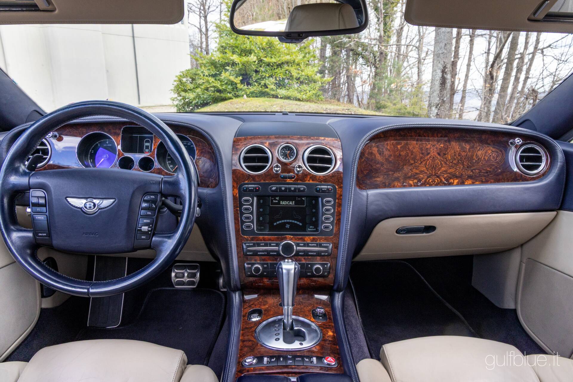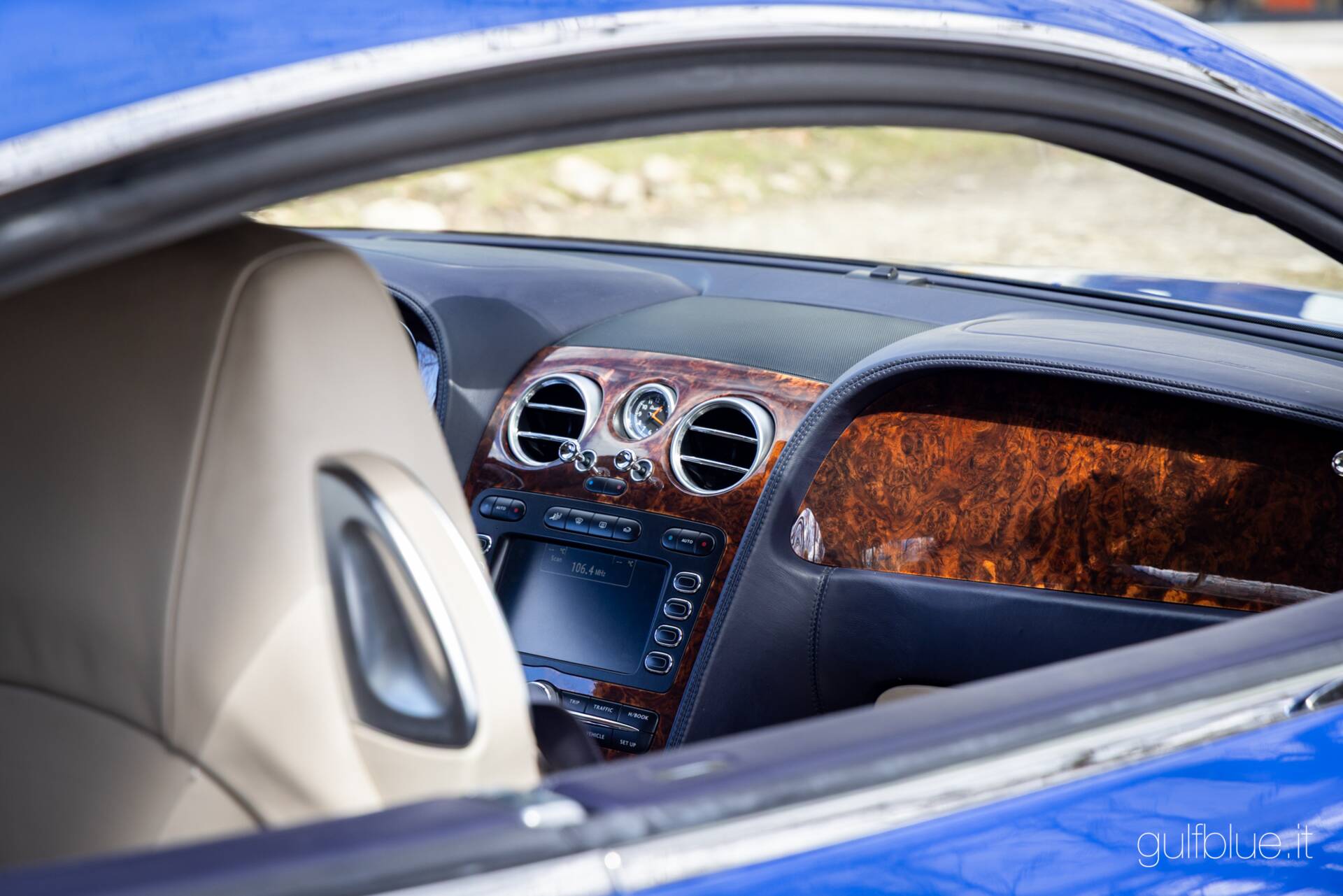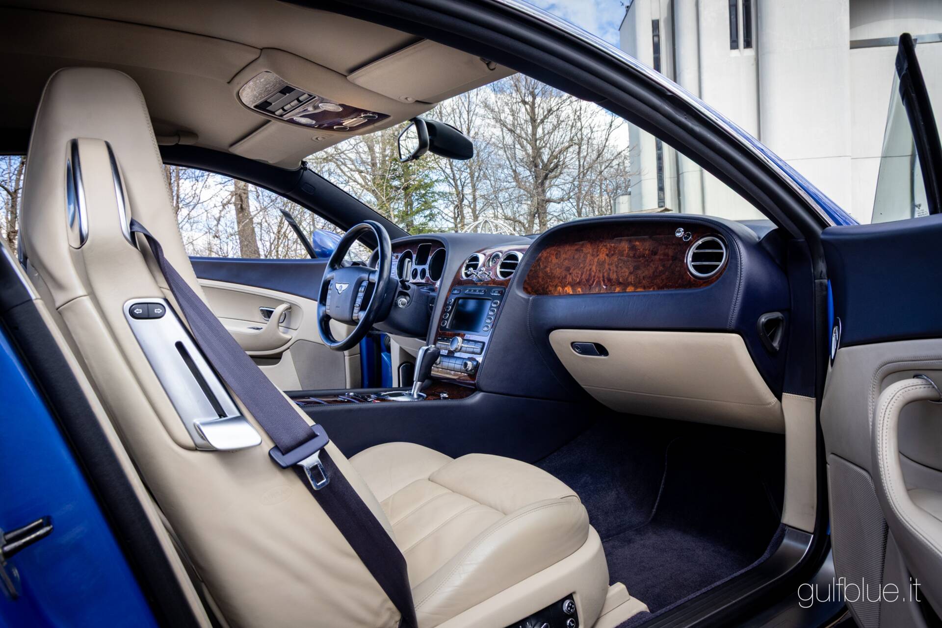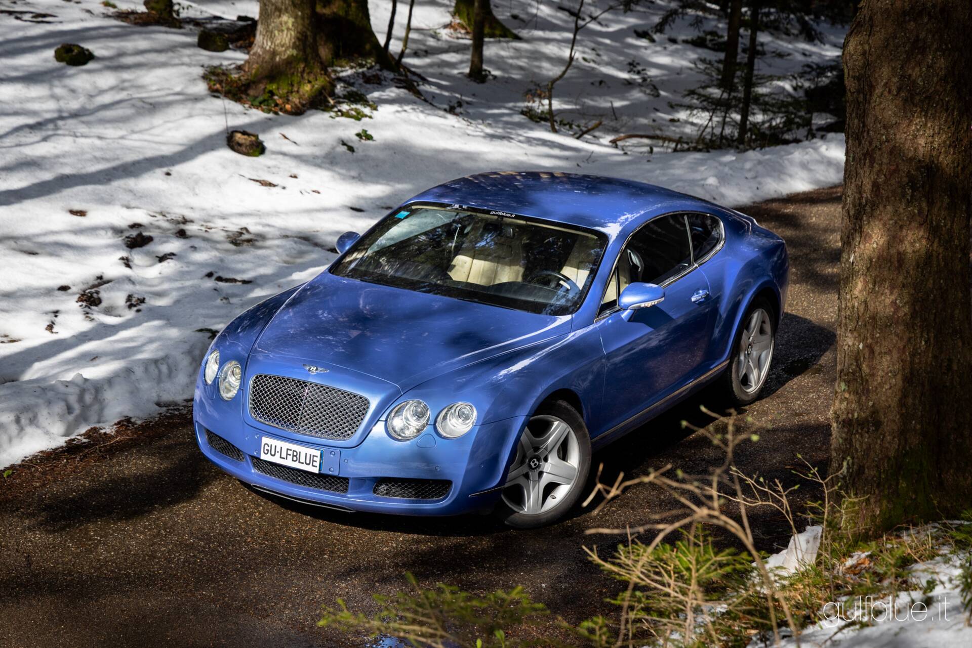 Il colore fa la macchina. Di Continental GT nere o blu scuro o grigio metallizzato è pieno il web, ma trovatene un'altra di questo colore! L'abbiamo cercata per un cliente, ma alla fine ci piaceva e l'abbiamo acquistata per noi; ecco come è andato l'acquisto di questa Bentley Continental GT del 2004 dal primo ed unico proprietario, un imprenditore di Lecce innamorato a tal punto di questo colore da affiancare alla coupè, anche una Flying Spur dello stesso colore: stiamo parlando del Neptune blue – metallizzato – abbinato agli interni in pelle sabbia (Portland) e blu (Nautic).