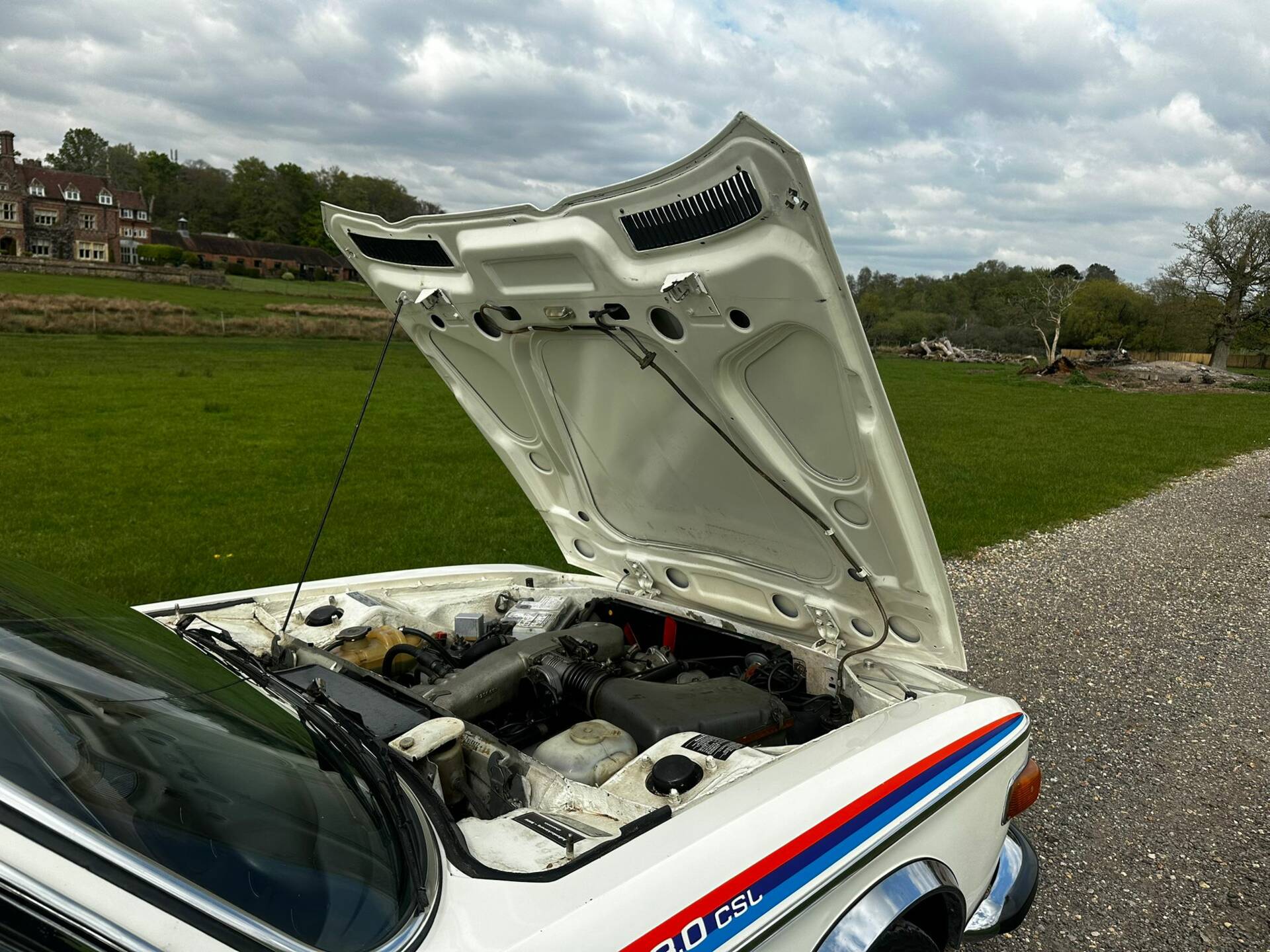 The car was discovered during a family drive in 1986 at a small garage near Poole, Dorset, and it was quickly purchased and then restored the following year. It has been in single ownership since then. It’s been carefully maintained and lightly used, covering around 500 miles per year. This CSL has mainly been enjoyed on classic car runs, shows, and occasional family outings. When the car wasn’t being used, it was stored in a dry, heated garage.