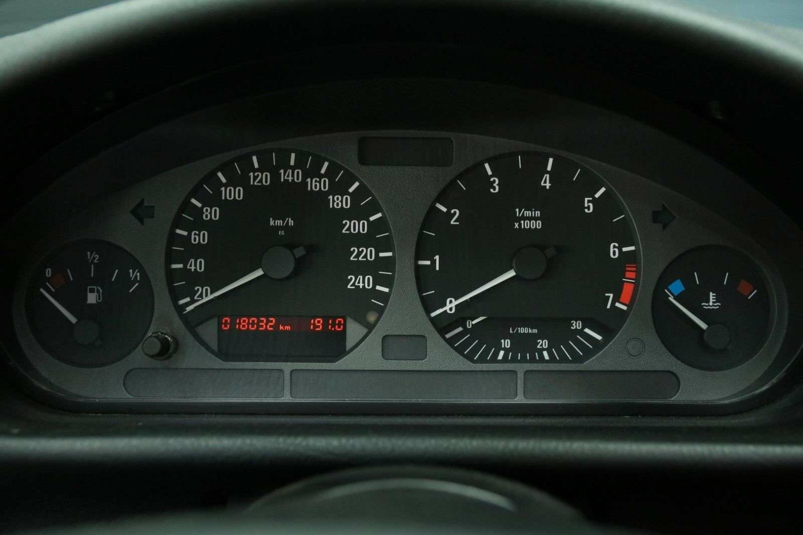 Dieses BMW 328 i Cabrio hatte bislang ein ausgesprochen ruhiges Leben. Mit knapp über 18.000 Kilometern nach rund 28 Jahren (im Durchschnitt etwa 642 Kilometer per anno !) kann man das mit Sicherheit so ausdrücken.