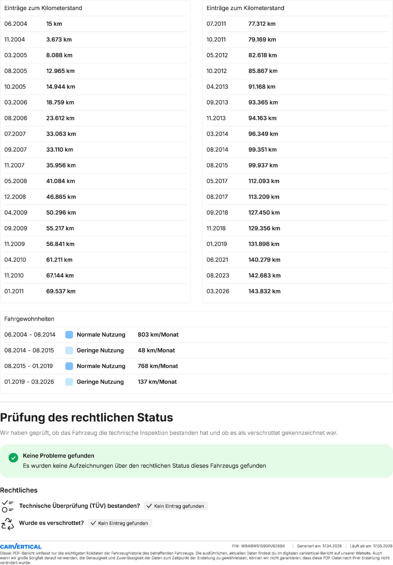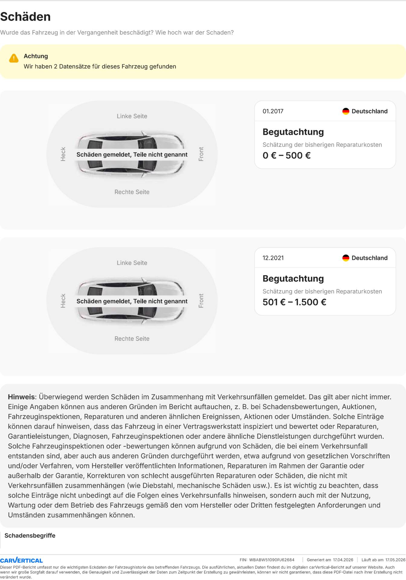 - Carvertical: https://www.carvertical.com/de/report?id=63c6eeac-0fd2-4f49-8cfd-99f90bbd712d