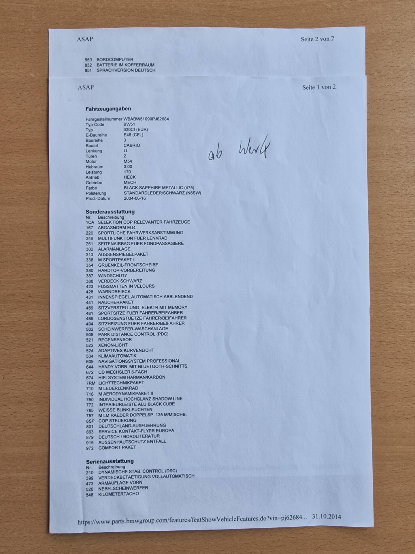 - Produced on 16.06.2004 at the BMW plant in Regensburg