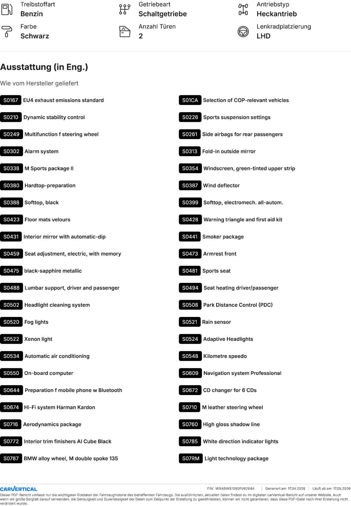 - Accident-free, but three repaints (2015: Rear left door and side panel due to scratches at Reichstein Automobile (seller); 2017: Front bumper due to stone chips at Karosserie Lack Center Dortmund; 2021: Hardtop at Strecker Lackier- und Karosseriefachbetrieb GmbH + Co. KG)