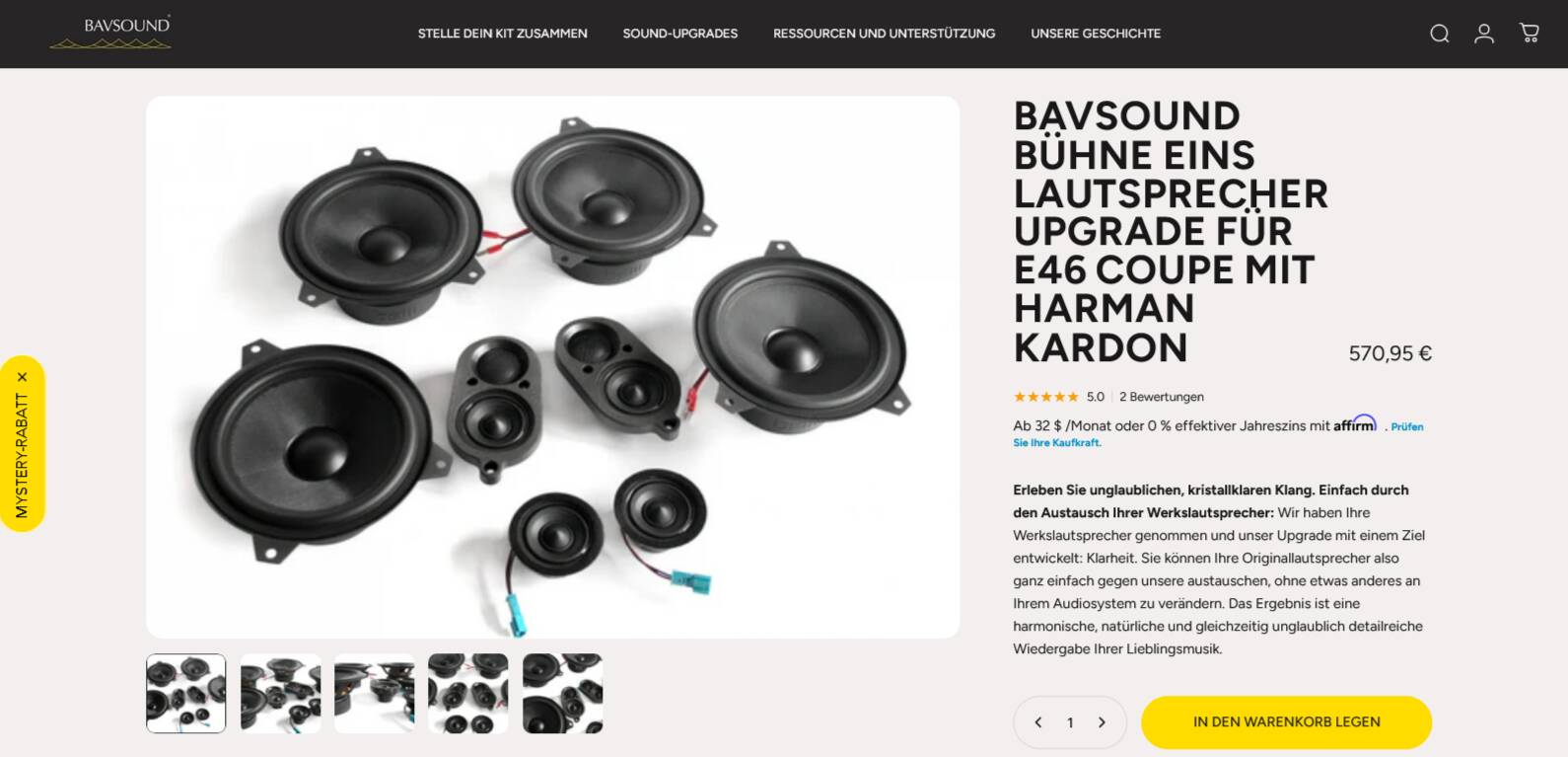 - Original Harman Kardon speakers (have been replaced by Bavsound Stage One and can be retrofitted without any problems, although the sound of the Bavsound is much better)