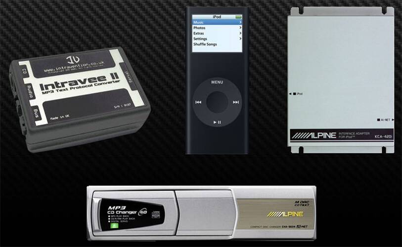 - Intravee interface instead of CD changer for connecting an iPod/iPhone/iPad with Lightning connector (The iPod is connected and then recognized by the standard navigation system. Albums, playlists, artists, search, etc. can be operated via the navigation buttons or the steering wheel buttons. The CD changer is still present and can be retrofitted.)