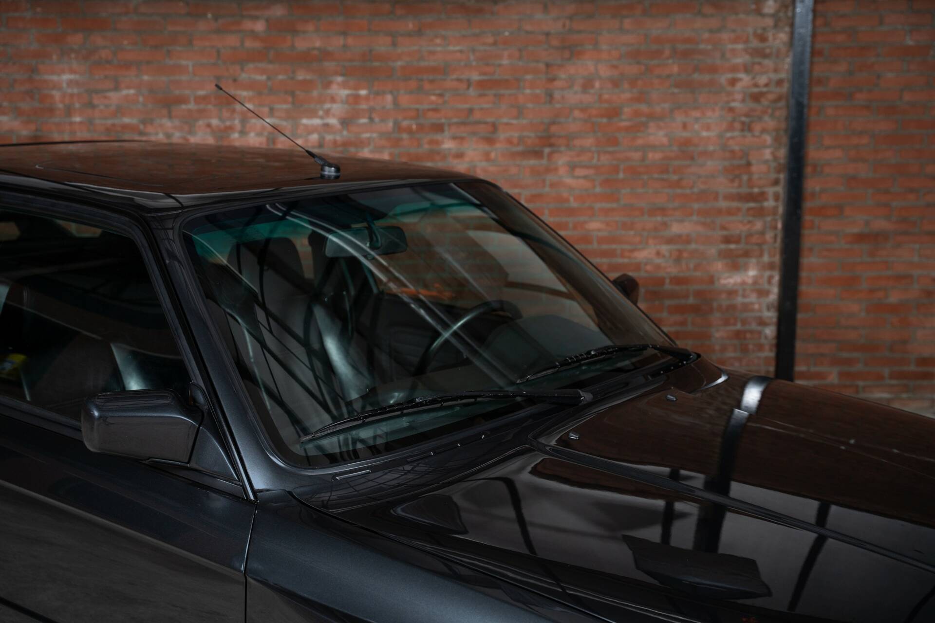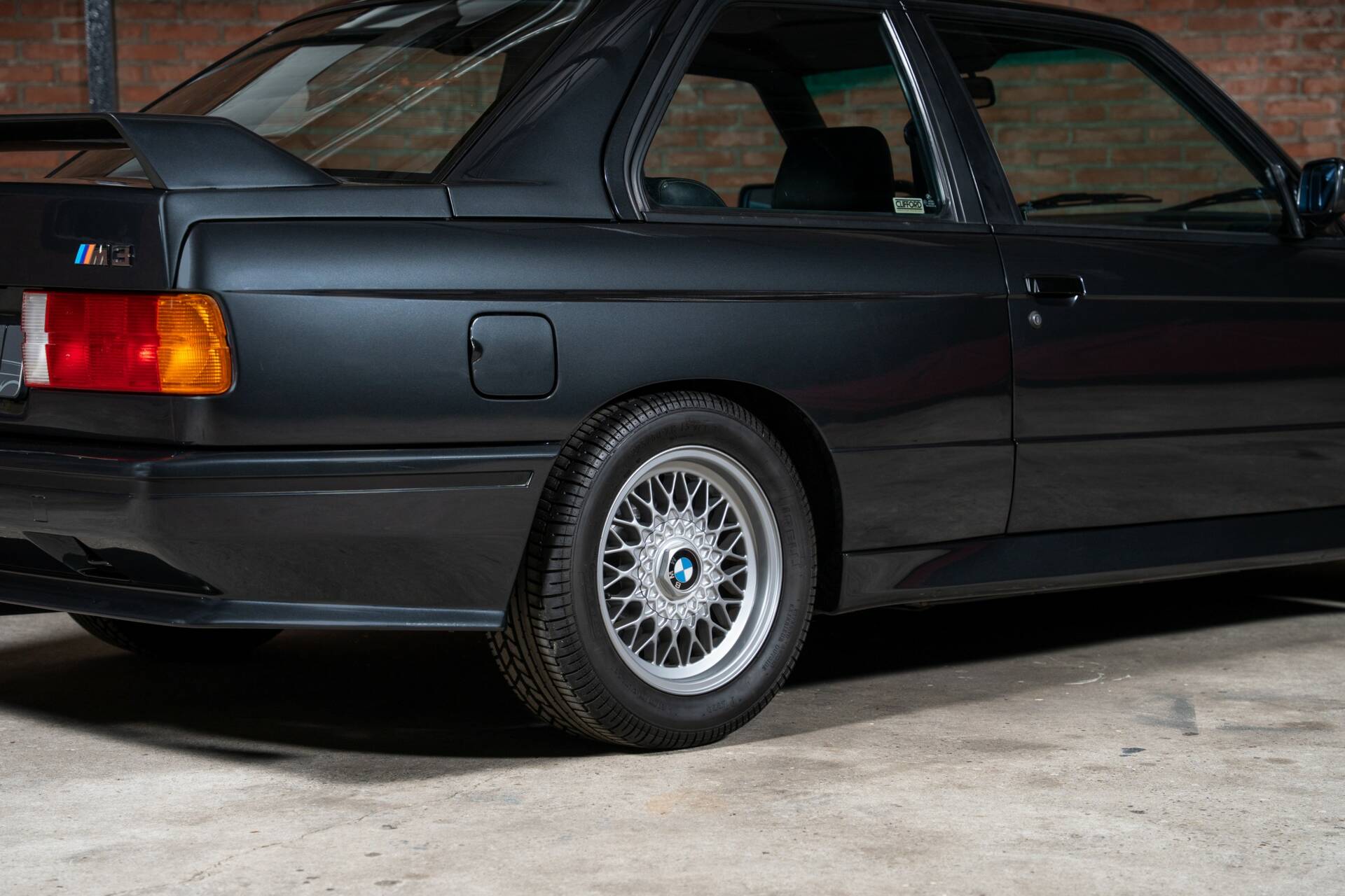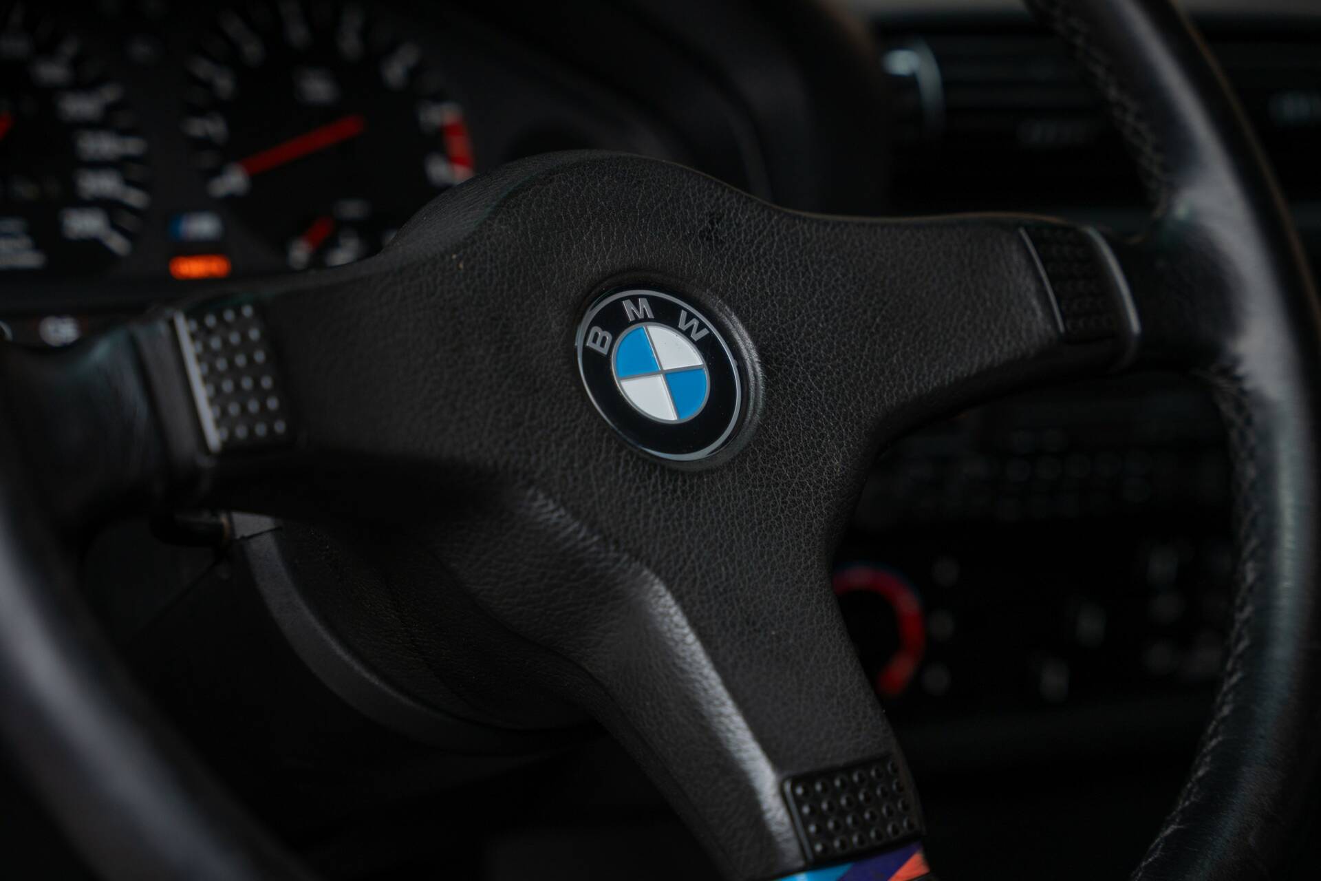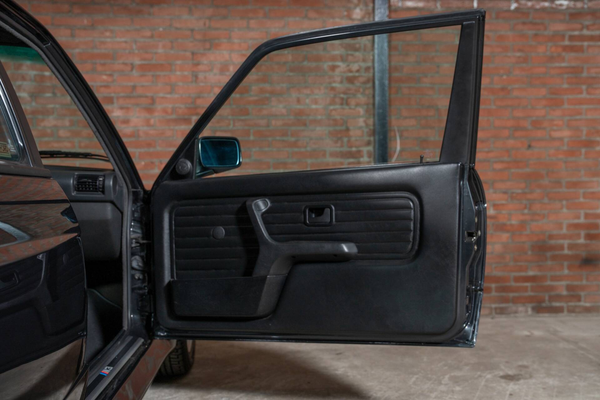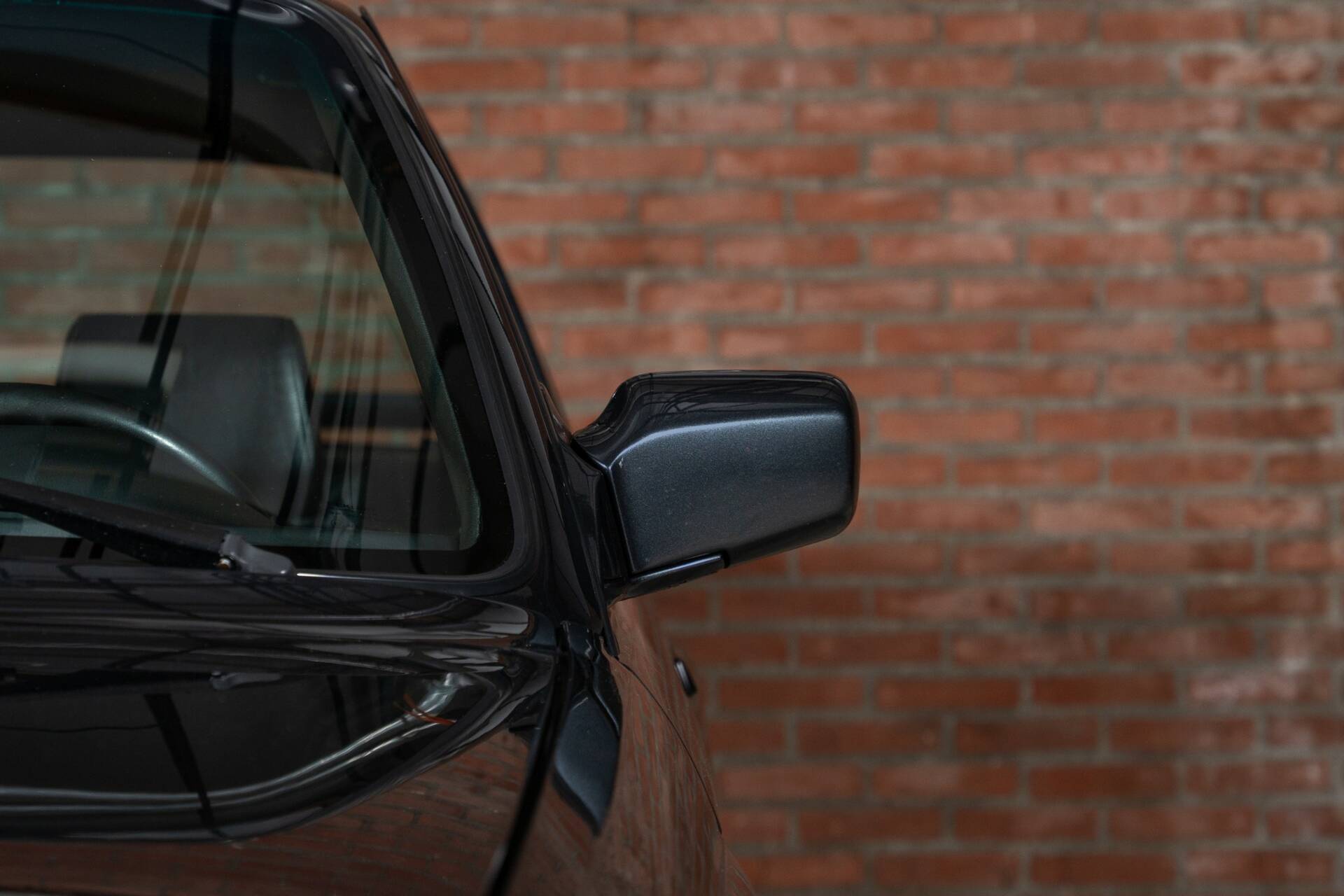 Het exterieur is werkelijk in uitmuntende staat. De kenmerkende brede schermen zijn niet zo vormgegeven voor de uitstraling! Ze geven ruimte aan een vergrote spoorbreedte, wat het haarscherpe stuurgedrag weer ten goede komt. Zijn plaatwerk is vrij van enige oneffenheden en/of schades en zijn ‘diamant zwart’ afwerking toont een diepe glans. De diepe kleur komt tot leven wanneer de auto buiten in de zon word genoten. In tegenstelling tot de standaard E30 heeft de M3 aerodynamisch geoptimaliseerde buitenspiegels. Zijn originele BBS styling 5 velgen zijn eveneens volledig vrij van beschadigingen en voorzien van Pirelli P Zero banden in de maat 225/50ZR15 (DOT code 09/19). Verder is het voertuig voorzien van een elektrisch dakraam.
