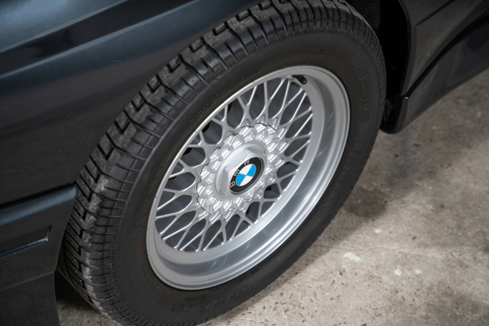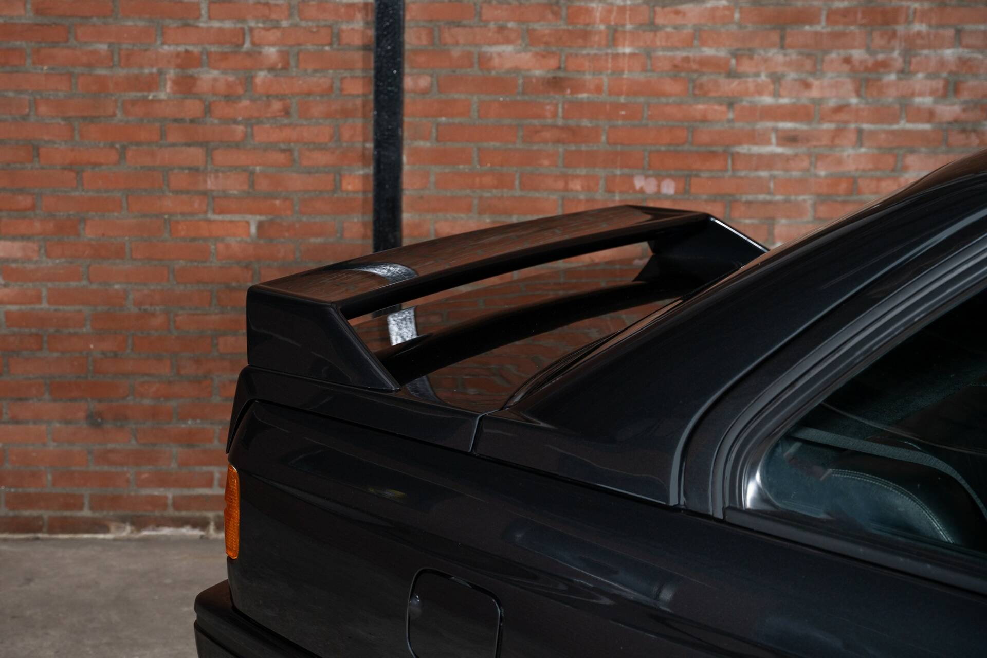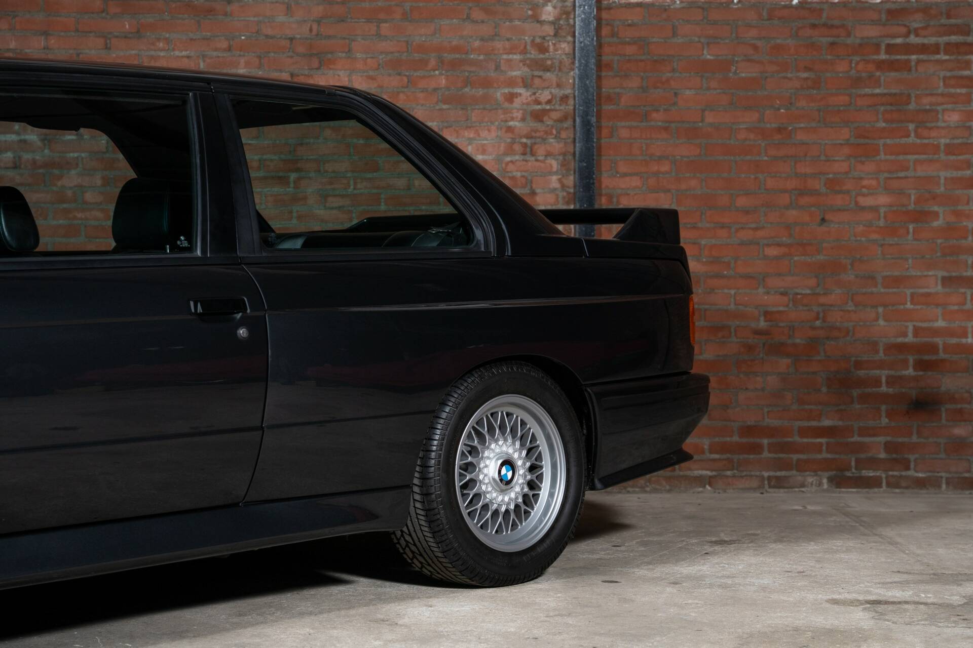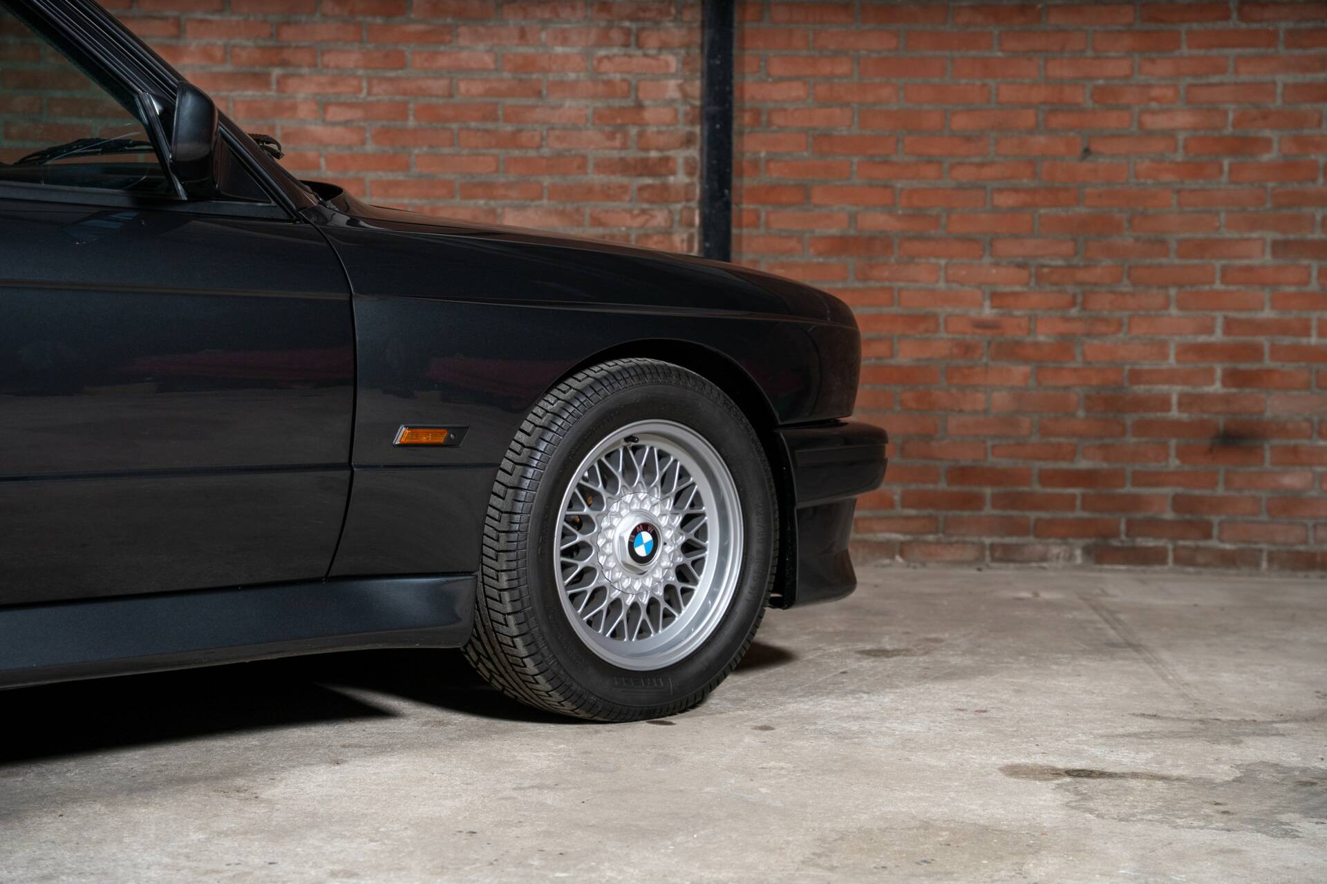 Het exterieur is werkelijk in uitmuntende staat. De kenmerkende brede schermen zijn niet zo vormgegeven voor de uitstraling! Ze geven ruimte aan een vergrote spoorbreedte, wat het haarscherpe stuurgedrag weer ten goede komt. Zijn plaatwerk is vrij van enige oneffenheden en/of schades en zijn ‘diamant zwart’ afwerking toont een diepe glans. De diepe kleur komt tot leven wanneer de auto buiten in de zon word genoten. In tegenstelling tot de standaard E30 heeft de M3 aerodynamisch geoptimaliseerde buitenspiegels. Zijn originele BBS styling 5 velgen zijn eveneens volledig vrij van beschadigingen en voorzien van Pirelli P Zero banden in de maat 225/50ZR15 (DOT code 09/19). Verder is het voertuig voorzien van een elektrisch dakraam.