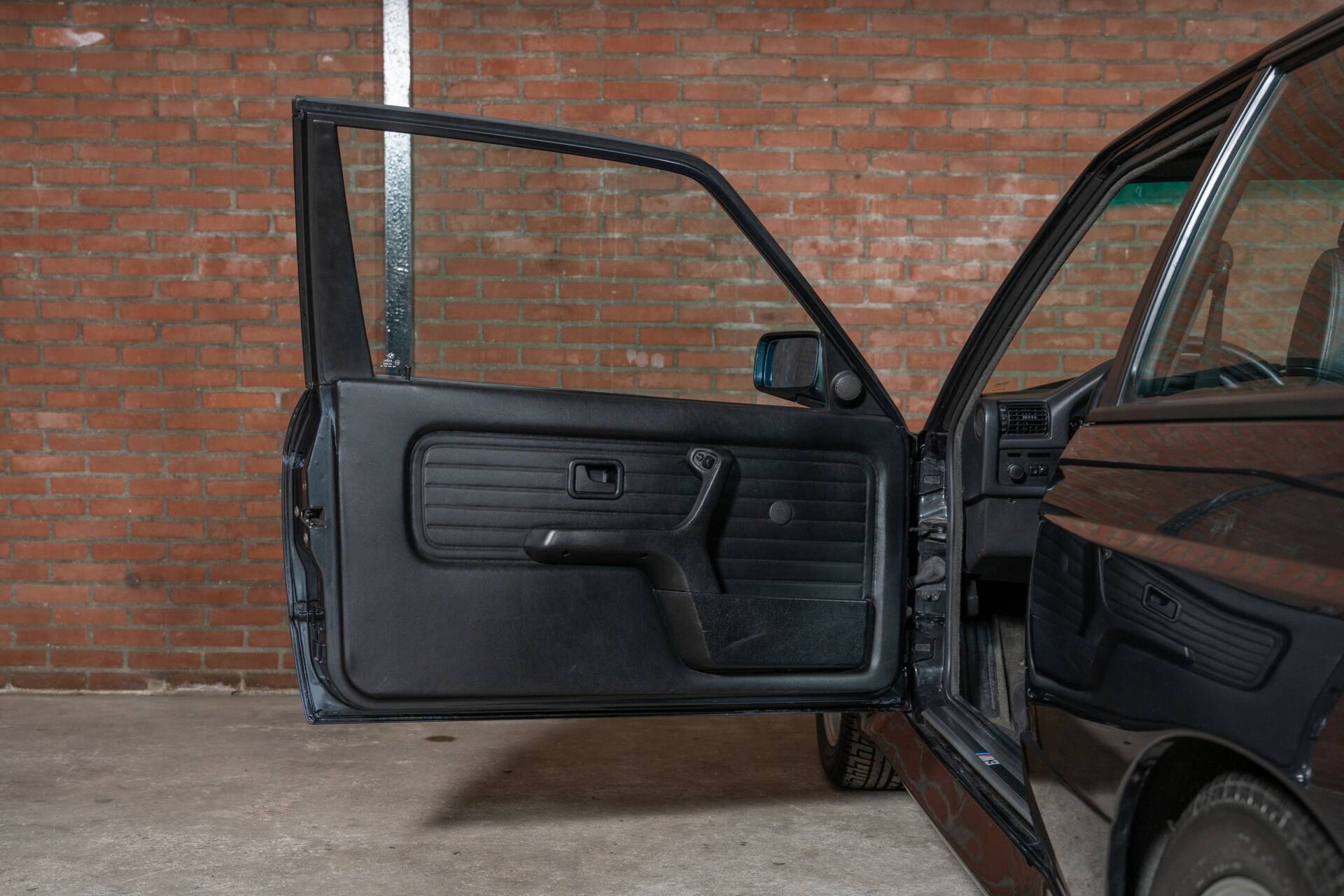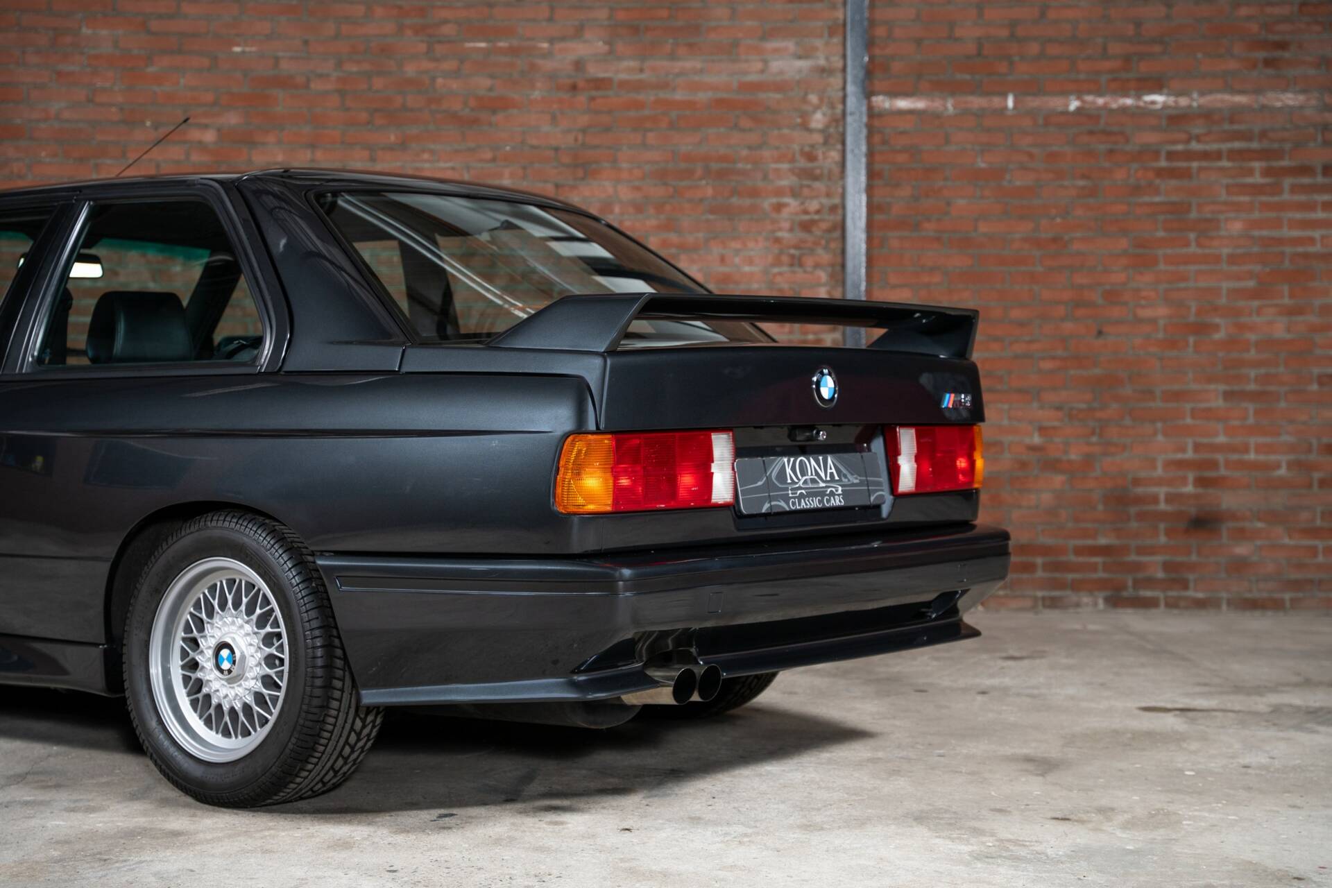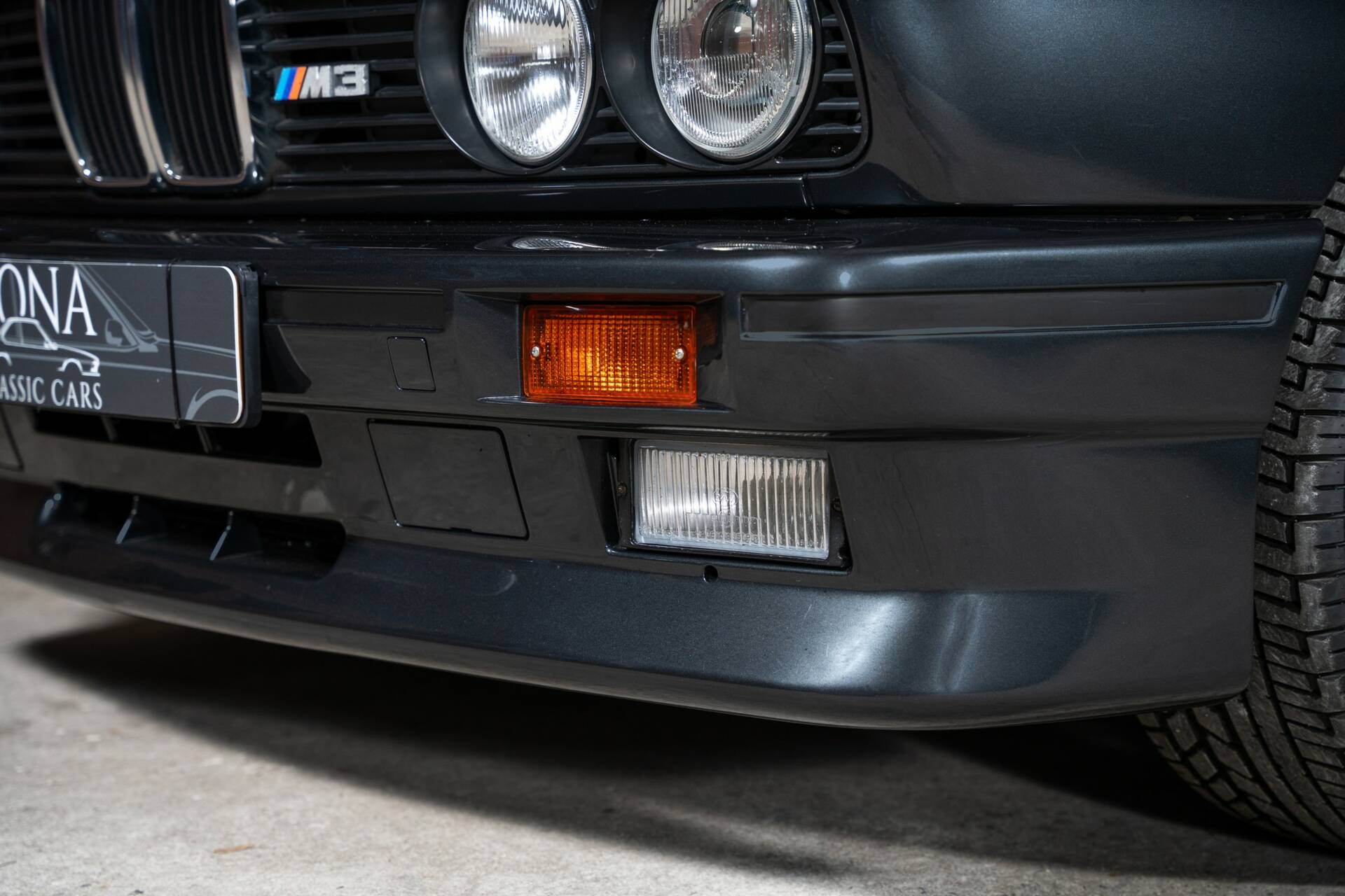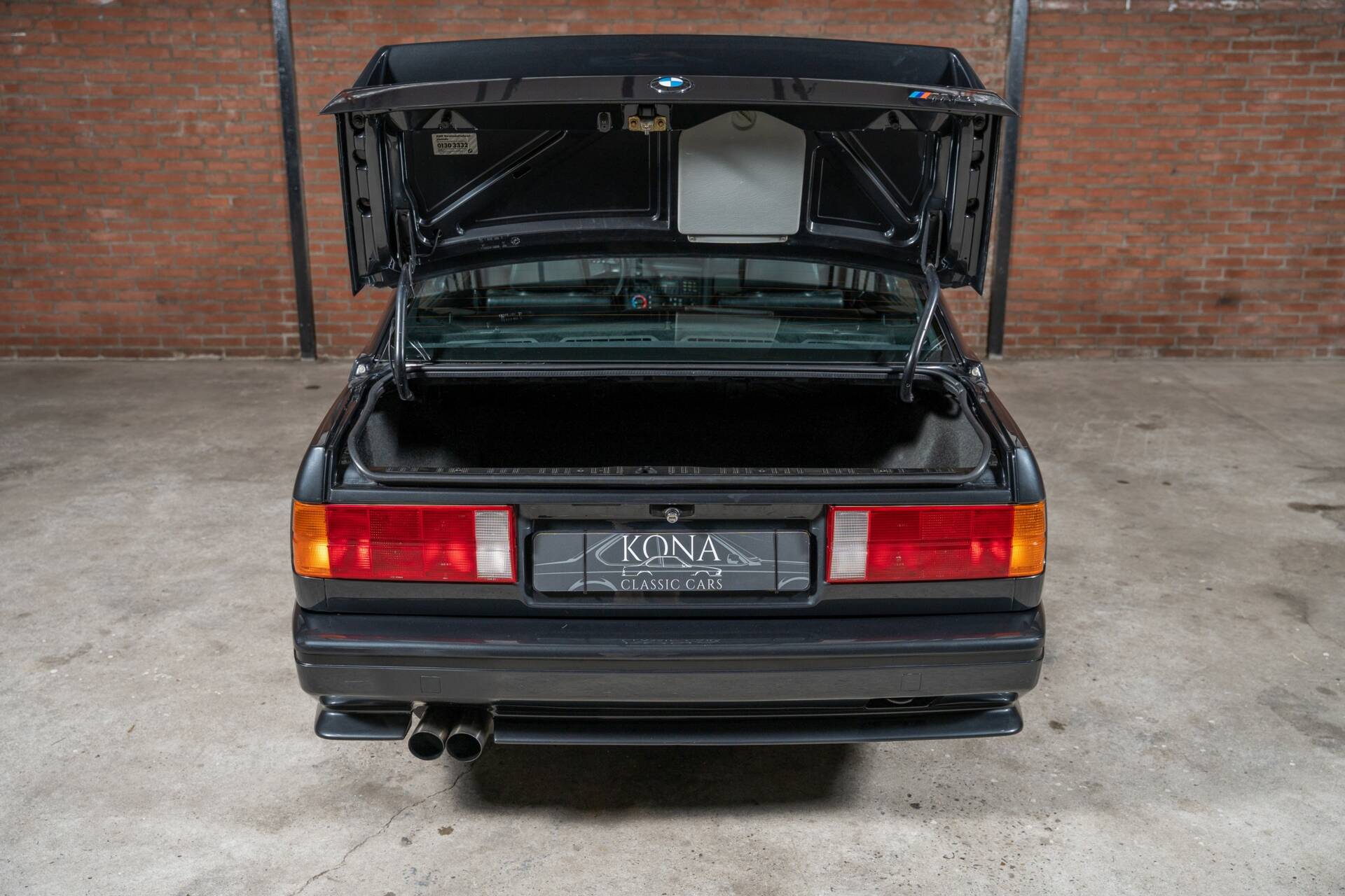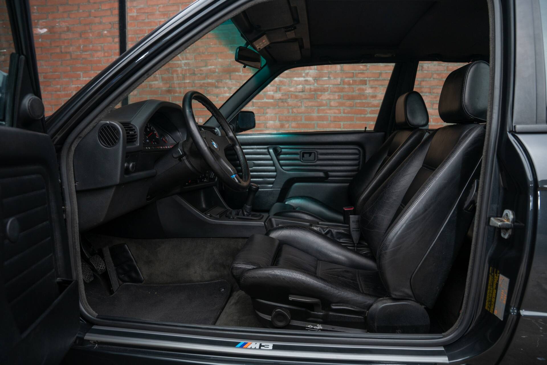 Het exterieur is werkelijk in uitmuntende staat. De kenmerkende brede schermen zijn niet zo vormgegeven voor de uitstraling! Ze geven ruimte aan een vergrote spoorbreedte, wat het haarscherpe stuurgedrag weer ten goede komt. Zijn plaatwerk is vrij van enige oneffenheden en/of schades en zijn ‘diamant zwart’ afwerking toont een diepe glans. De diepe kleur komt tot leven wanneer de auto buiten in de zon word genoten. In tegenstelling tot de standaard E30 heeft de M3 aerodynamisch geoptimaliseerde buitenspiegels. Zijn originele BBS styling 5 velgen zijn eveneens volledig vrij van beschadigingen en voorzien van Pirelli P Zero banden in de maat 225/50ZR15 (DOT code 09/19). Verder is het voertuig voorzien van een elektrisch dakraam.