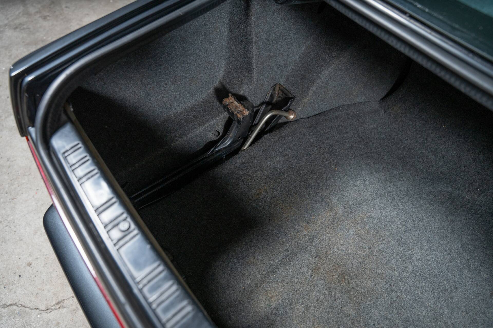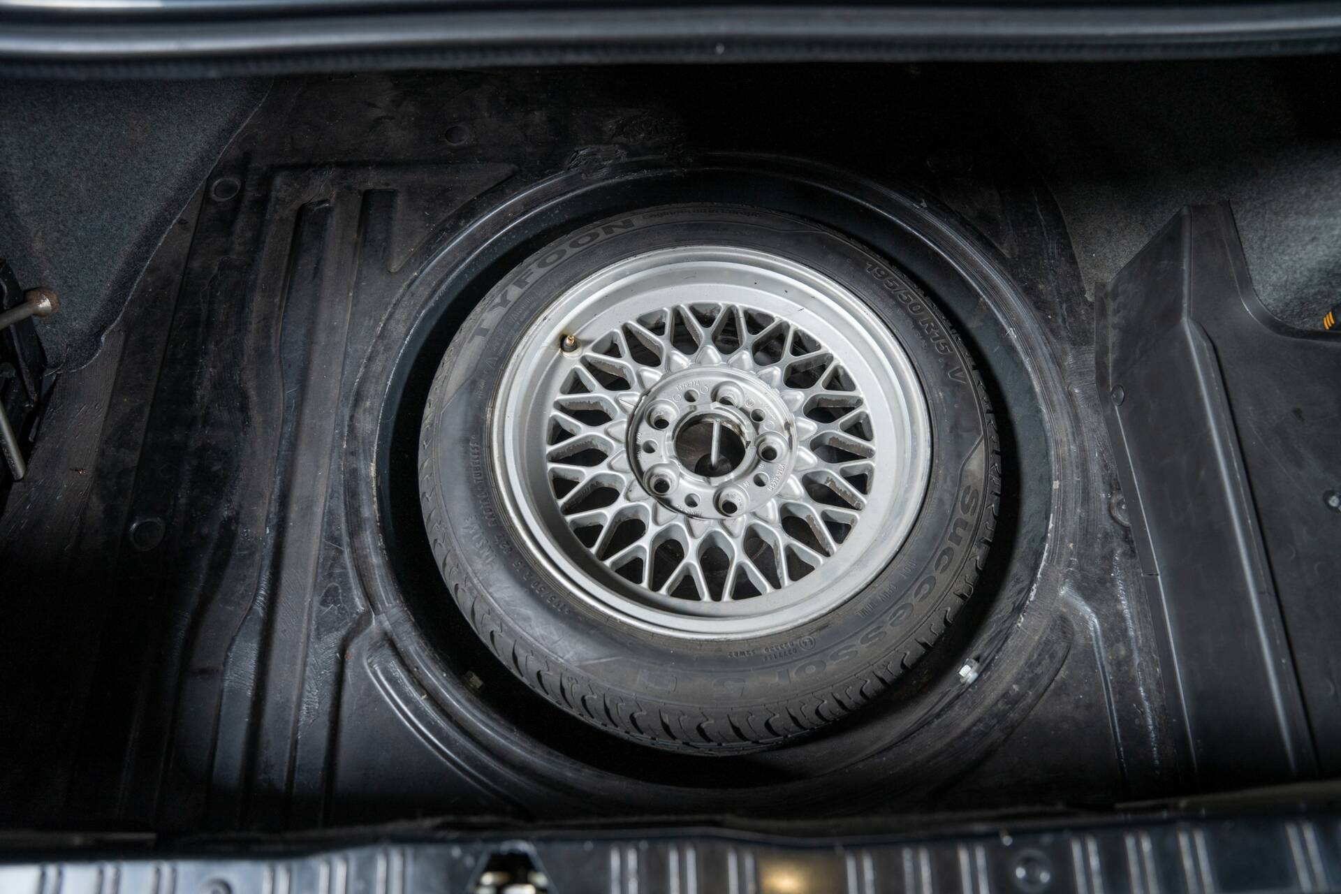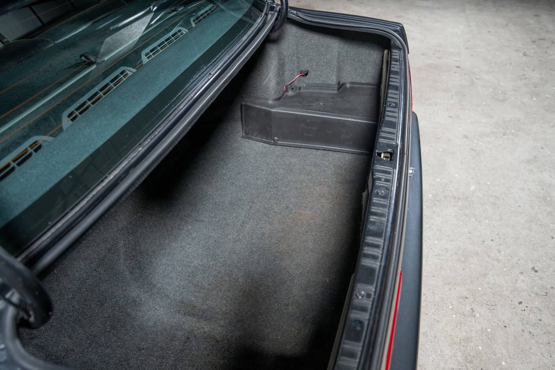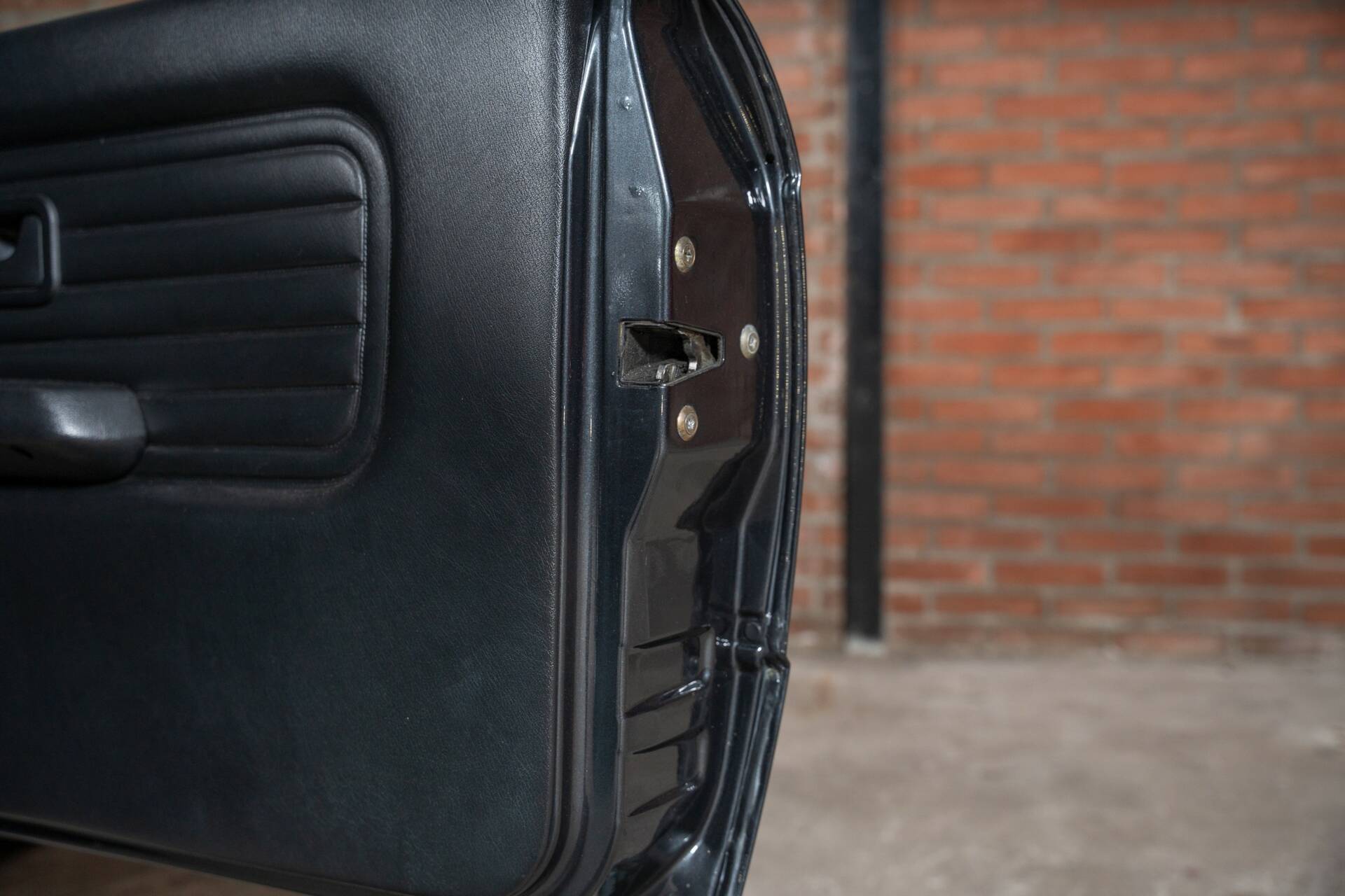 Bij het instappen aan de bestuurderszijde valt direct het zwart lederen interieur op dat werkelijk in topstaat verkeerd. Bij het plaatsnemen achter het M-tech 1 stuurwiel toont dat alles in perfecte staat verkeerd. De bestuurdersstoel zit sportief zoals bedoeld. De afgelezen tellerstand is 191716 kilometer. De versnellingspook oogt in nieuwstaat en laat zien dat het om een zogeheten ‘dogleg’ versnellingsbak gaat waarbij de 1e versnelling linksonder zit. Het elektrisch bedienbare schuif/kanteldak verzorgt voor verkoeling op een mooie zomerdag. Verder is het voertuig reeds voorzien van retro Blaupunkt Bremen SQR46 radio, hiermee heeft u de looks van een oude Blaupunkt maar de gemakken van de huidige tijd, zoals bluetooth streamen en carkit. Naast de radio merken we tevens een knop voor de airconditioning op! Alle elektronica functioneert verder naar behoren. De achterruit is voorzien van zonblinderingsscherm.