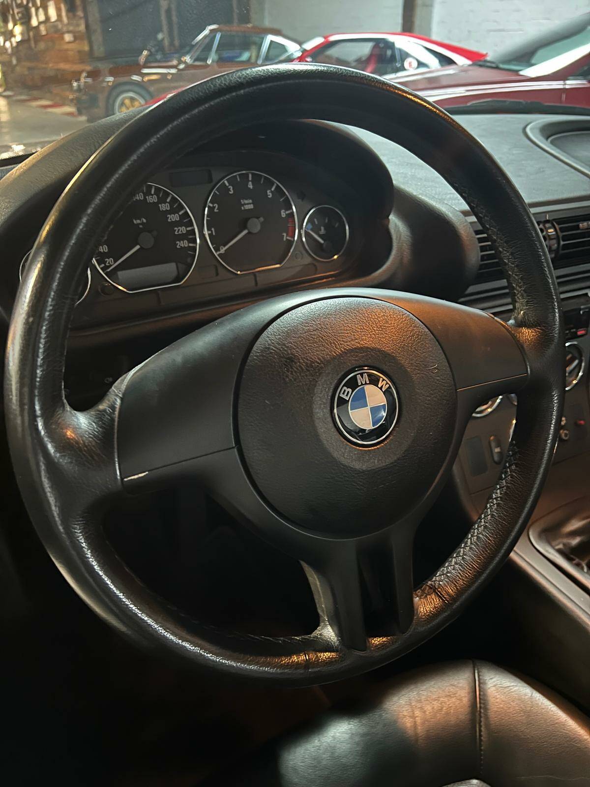 Technical Mechanically, this Z3 3.0i leaves nothing to be desired. The legendary straight-six starts instantly, idles smoothly, and delivers linear power accompanied by a distinctive sound. The manual gearbox is precise, with firm yet smooth action. Suspension and steering are solid and responsive, providing the stability and engagement for which the Z3 is renowned. All electrical systems—lighting, power windows, wipers, and climate control—are fully operational.