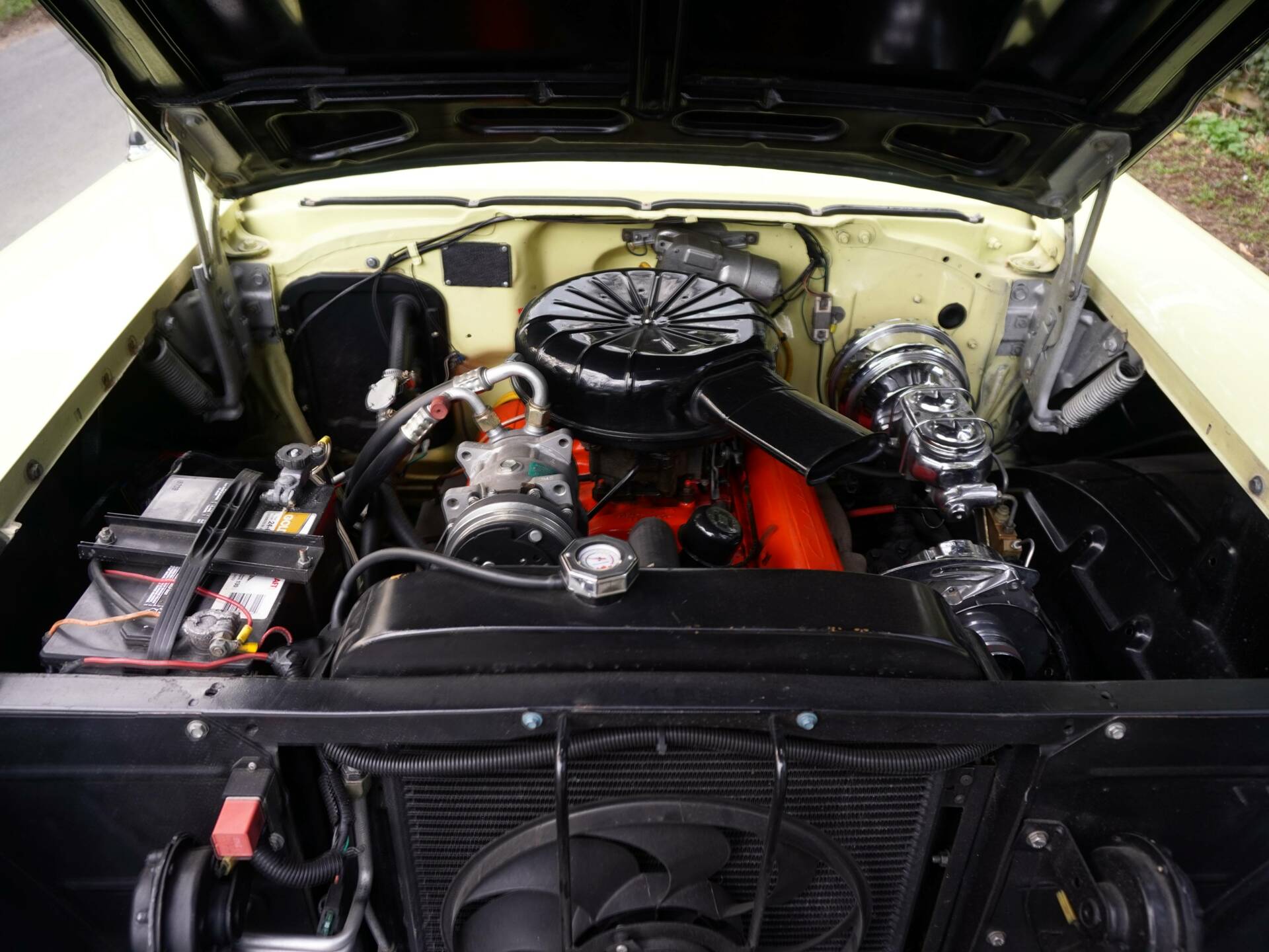 This 283ci equipped 210 delivers lively acceleration, strong top speed, and that unmistakable small-block growl. The powerplant turns a practical family vehicle into something fun for weekend cruises with more than ample space for luggage. With its bold fins, chrome accents, two-tone paint scheme, and versatile wagon utility paired with genuine V8 performance 954 XWE offers the classic Tri-Five experience.