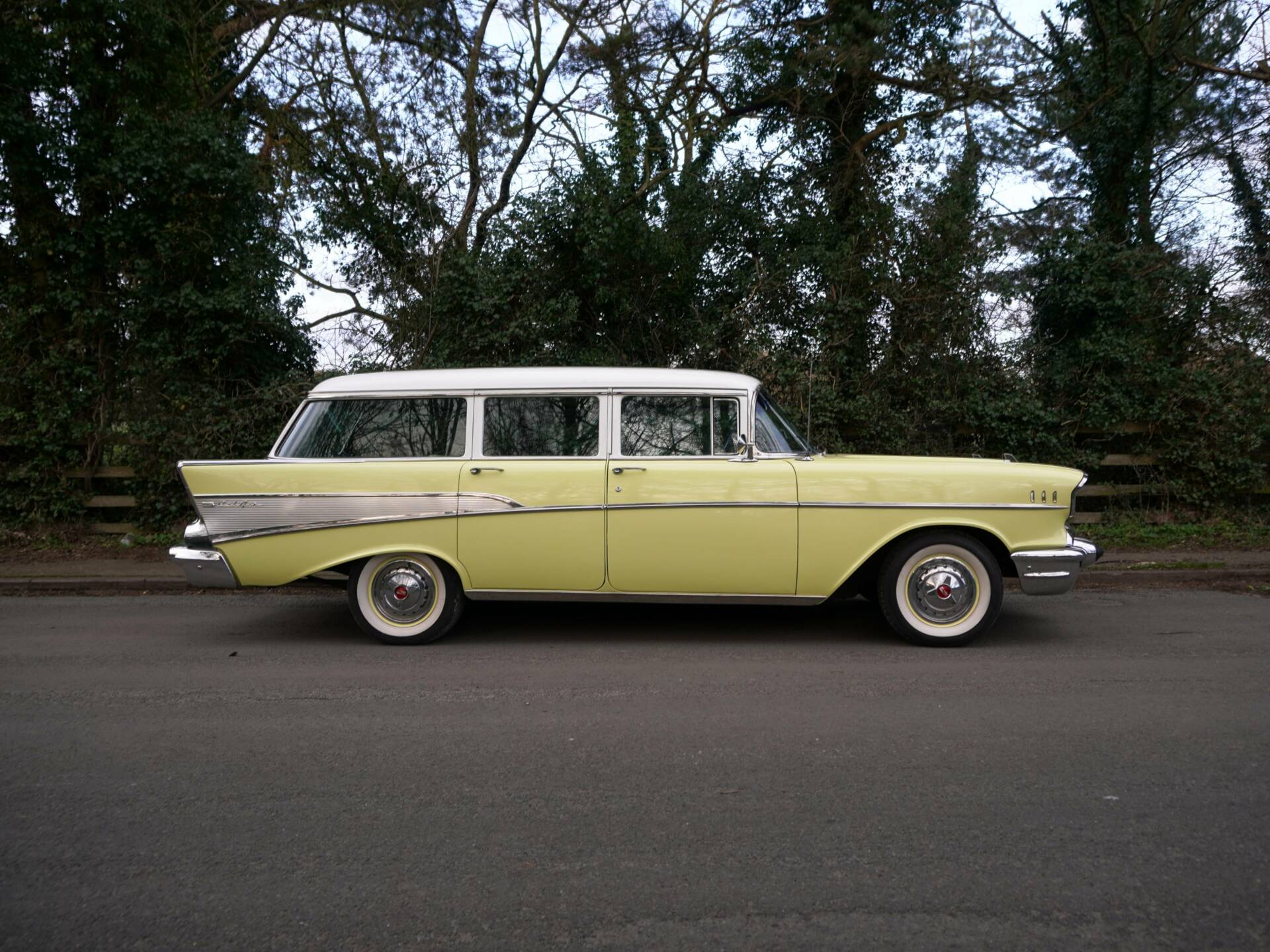 This stunning, show level Chevrolet Bel Air 210 Series Wagon has had just one owner in the U.K., a long term client of ours who has a stunning Lake District based collection of cars. Only wanting to acquire top class examples, and with nothing available at the time in this condition in the U.K., our customer has to purchase the Bel Air in the US and in 2024 it was fully registered with the DVLA as 954 XWE. This beautifully restored 1957 Bel Air is one of the unique Wagon, 4-door, 4-seat examples with a 4.6L engine and 3-speed Automatic Transmission. Making this even more special is its condition, it would cost at least double our price to restore one to this standard. Right throughout the Wagon it's clear to see true attention to detail has gone into the restoration, and maintenance of this magnificent example. The bodywork is exceptional with a gleaming paint finish, the engine bay is equally as impressive, as is the exemplary Yellow and Black interior trim.