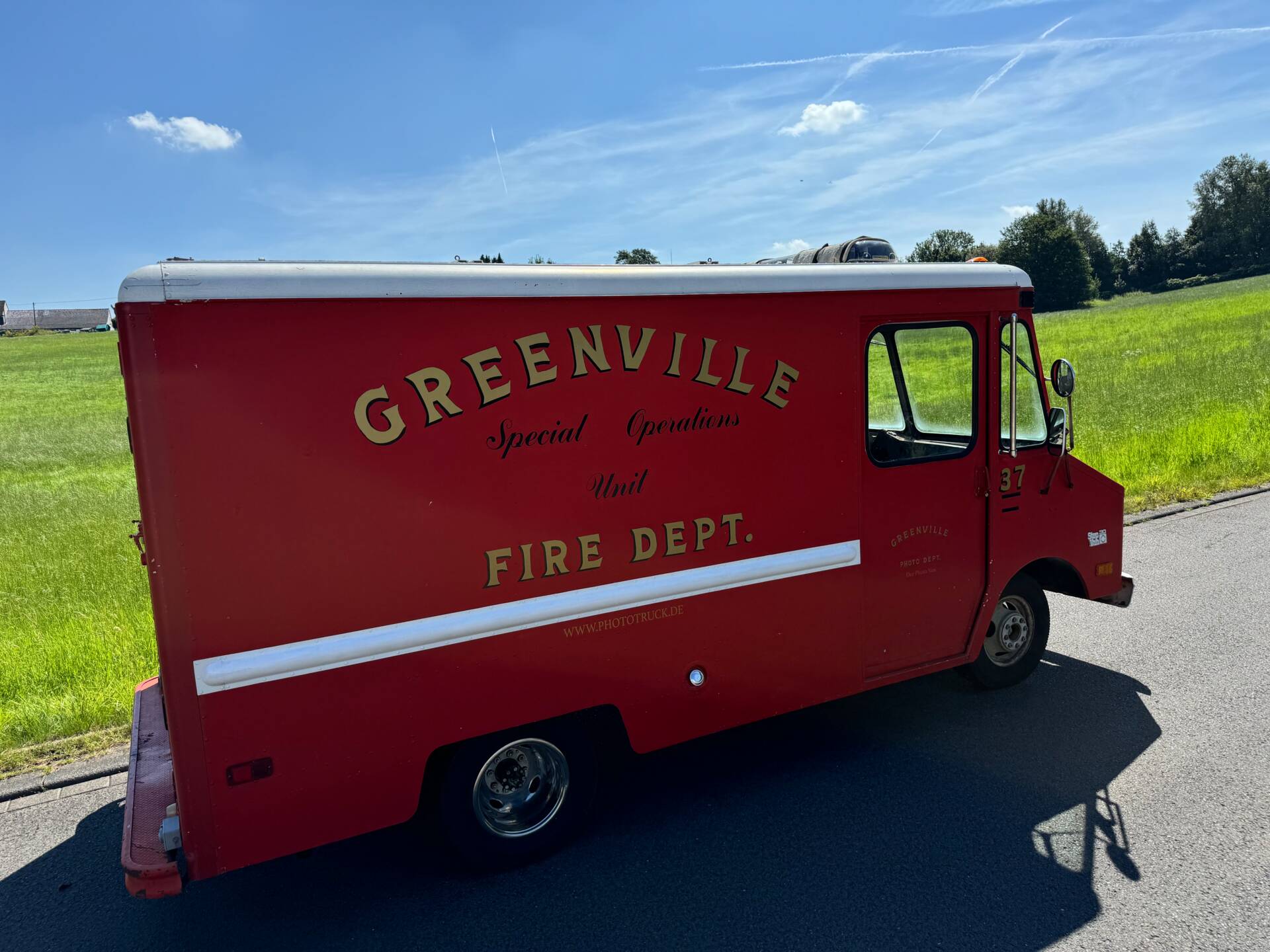 Ehemaliges Feuerwehrauto aus Greenville Alabama. Wurde als Mobile Einsatzzentrale genutzt. Original ab Werk mit 7,4L Big Block V8 Motor. Seltene Ausführung in kurz. Dadurch ein kleiner Wendekreis. Diese Konstellation ist sehr selten in Deutschland wenn nicht sogar einmalig.