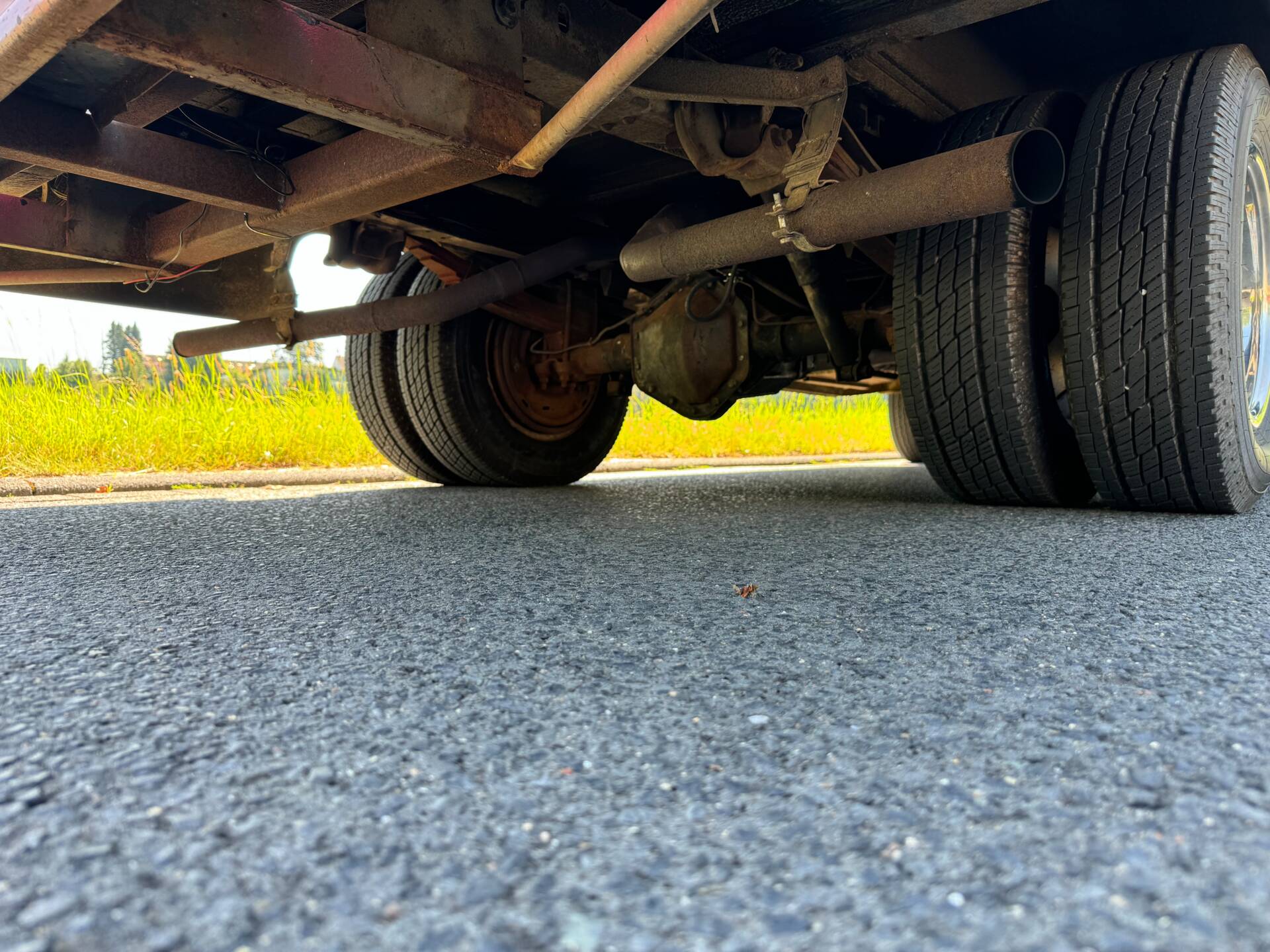 Wir haben den kleinen Kasten aus einer Privathand in Atlanta 2017 gekauft und in den USA gefahren. Damals waren hinten noch die Schreibtischbefestigung und diverse Steckdosen vorhanden. Der Motor soll general- überholt sein, Beläge gibt es darüber leider nicht. Aber die Feuerwehrautos in den Staaten gelten immer als sehr gut gewartet. Die gepflegte Behörden -vergangenheit ist am derzeitigen Zustand ersichtlich. Kein Rost am Rahmen, keine Unfallschäden an der Aluminium Karosserie. Das Aluminium lässt jeden Schaden oder Reparatur sofort erkennen.
