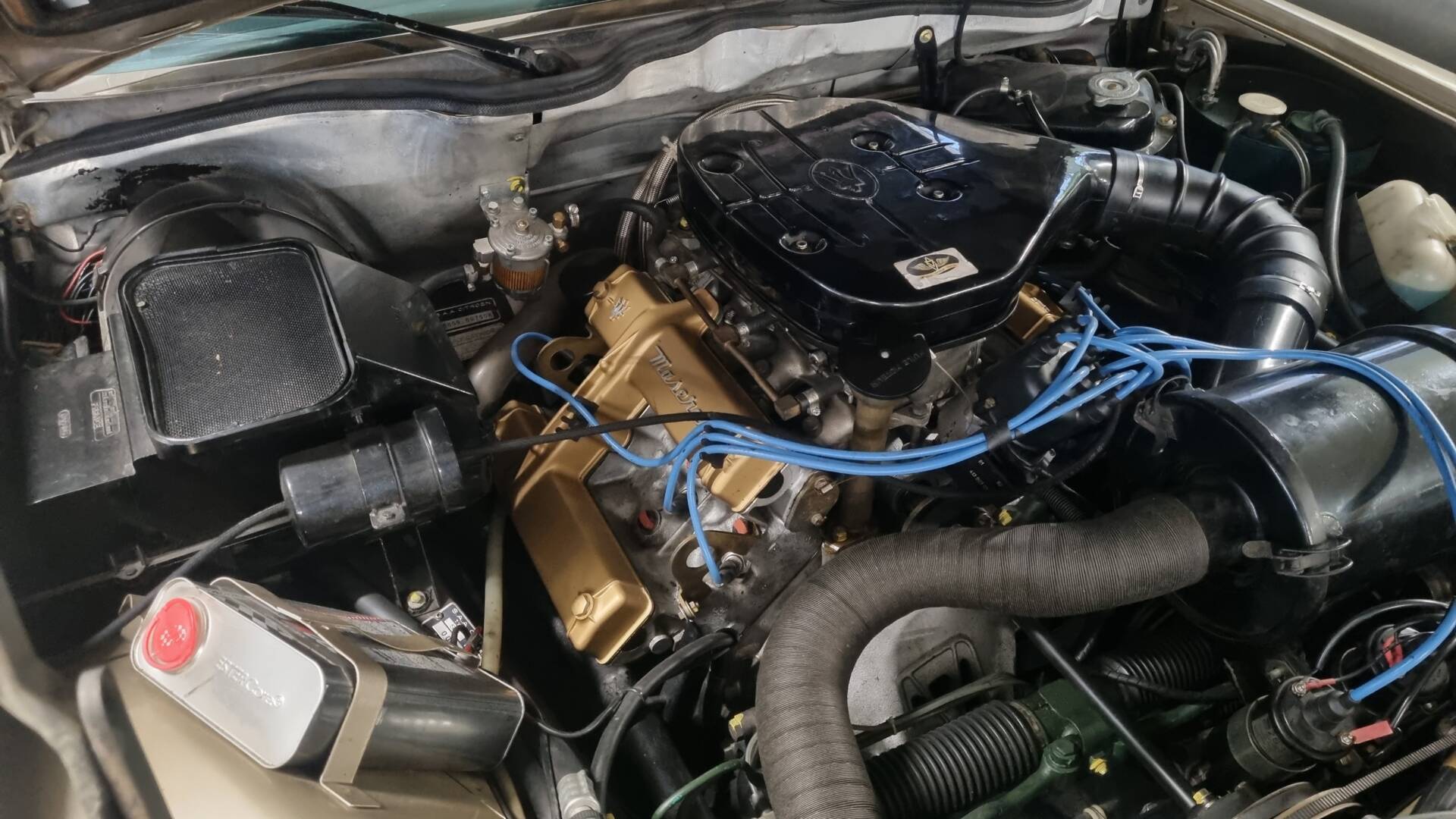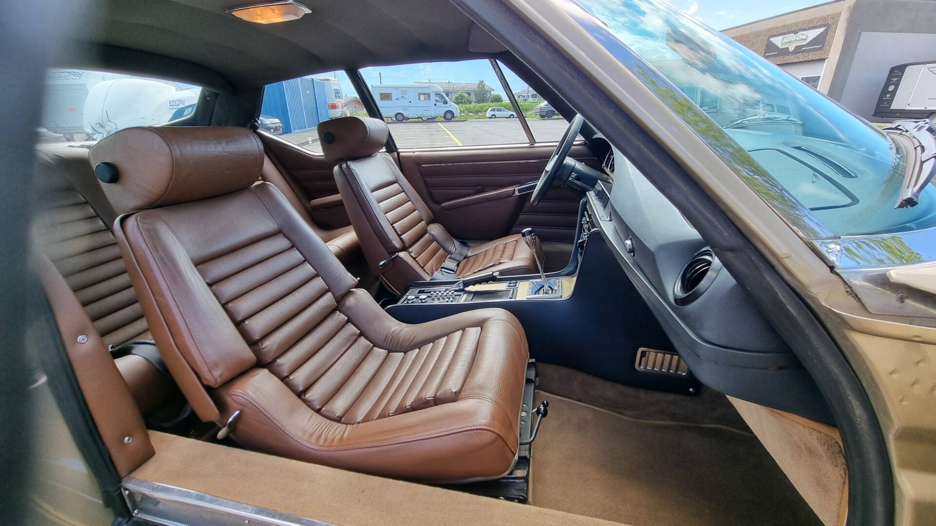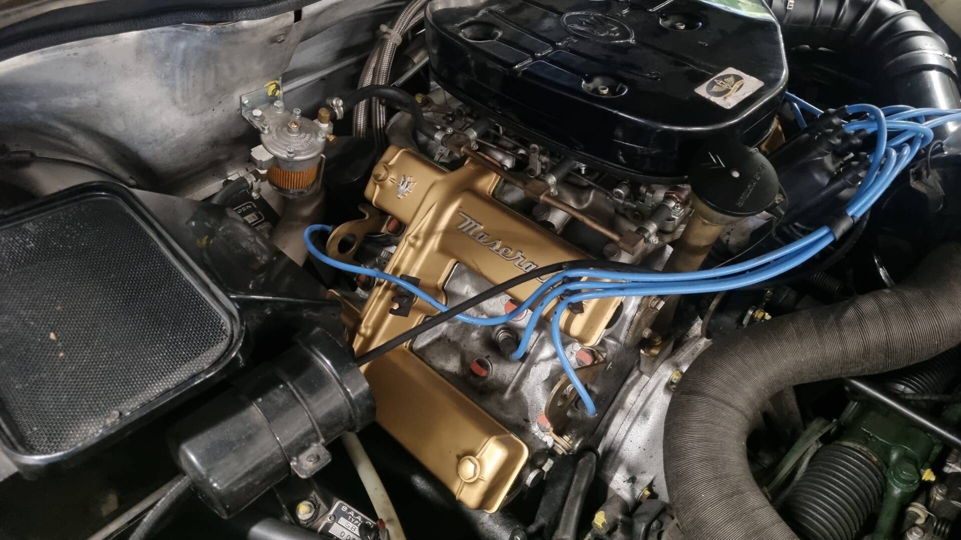 Splendide exemplaire totalement restauré ! Couleur extérieure or métallisé (Feuille d'Or), intérieur cuir tabac et équipée du fameux Moteur V6 Maserati à double arbres à cames en tête. 3 carburateurs double corps.