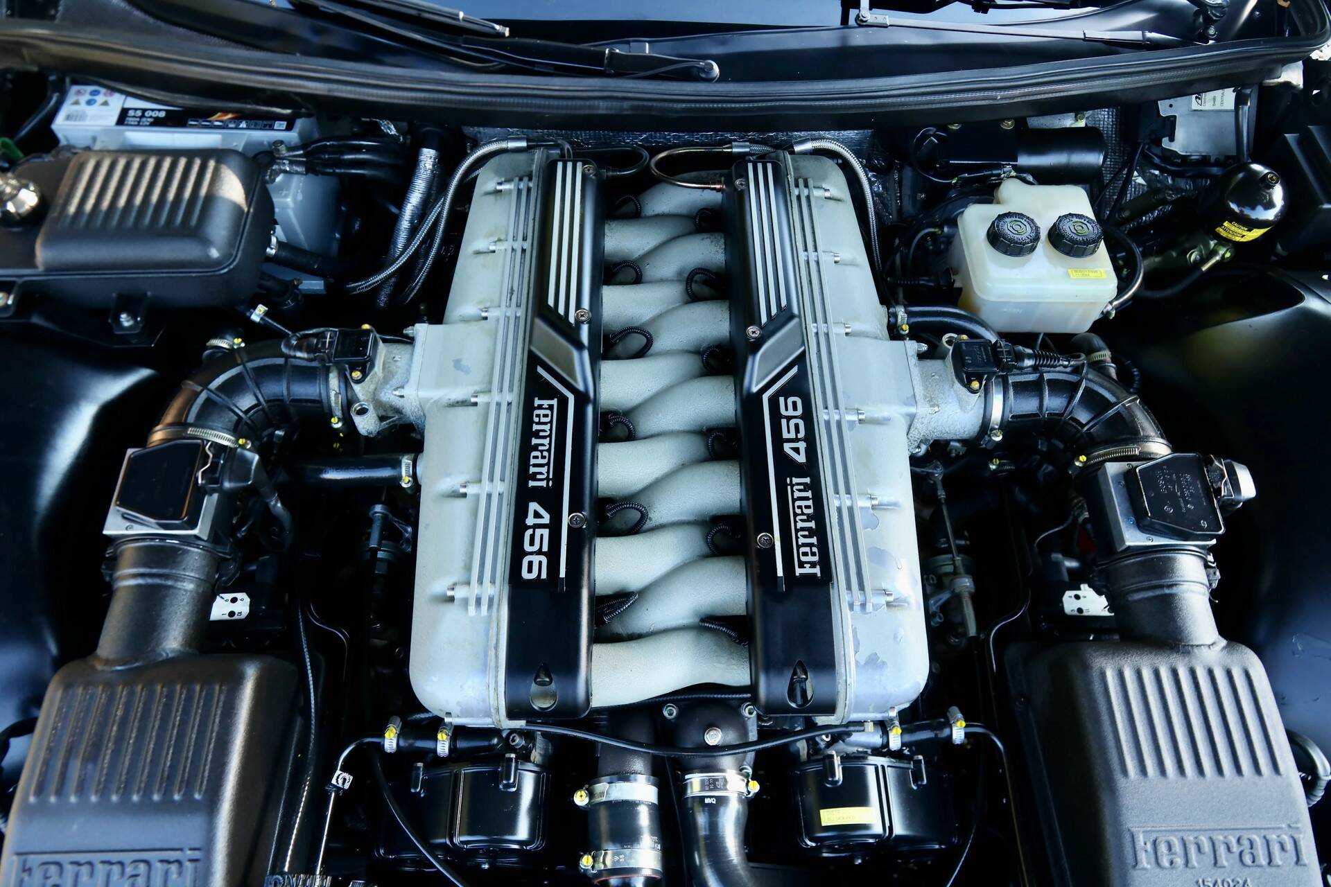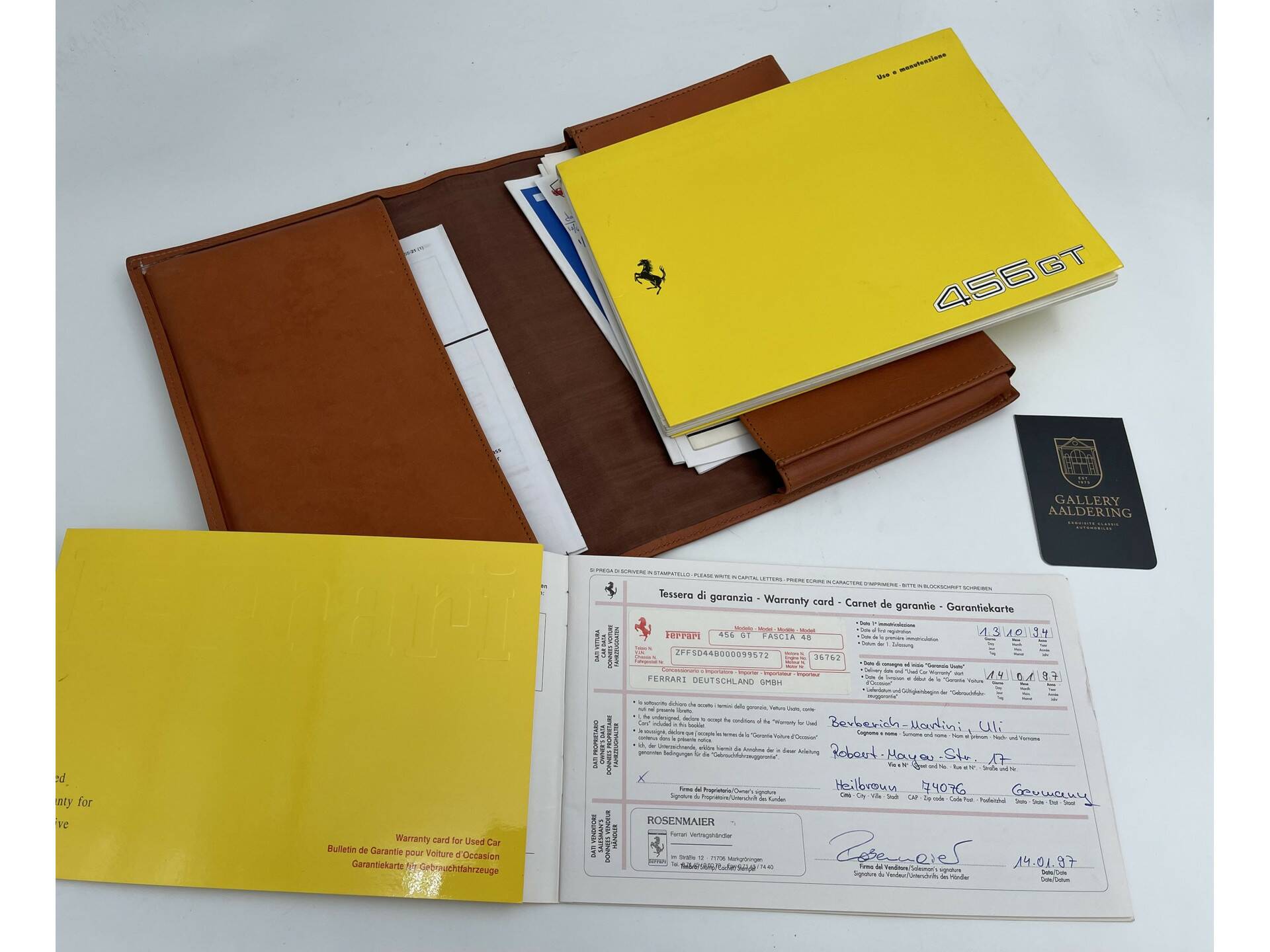 Ferrari 456 GT "55.000 kilometers" 55.000 documented kilometers with invoices and the original board map, Newly delivered by Ferrari dealer Tamsen in Germany, "Blu Swaters" - Blue over Blue/Black, Fully serviced by dealer and Ferrari specialists, Fine and original preserved condition, A manual transmission gentleman's sports car, History without concessions,