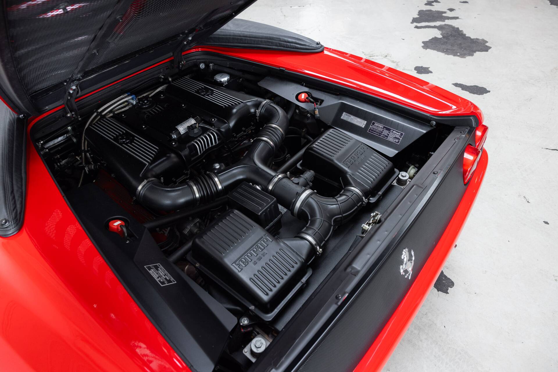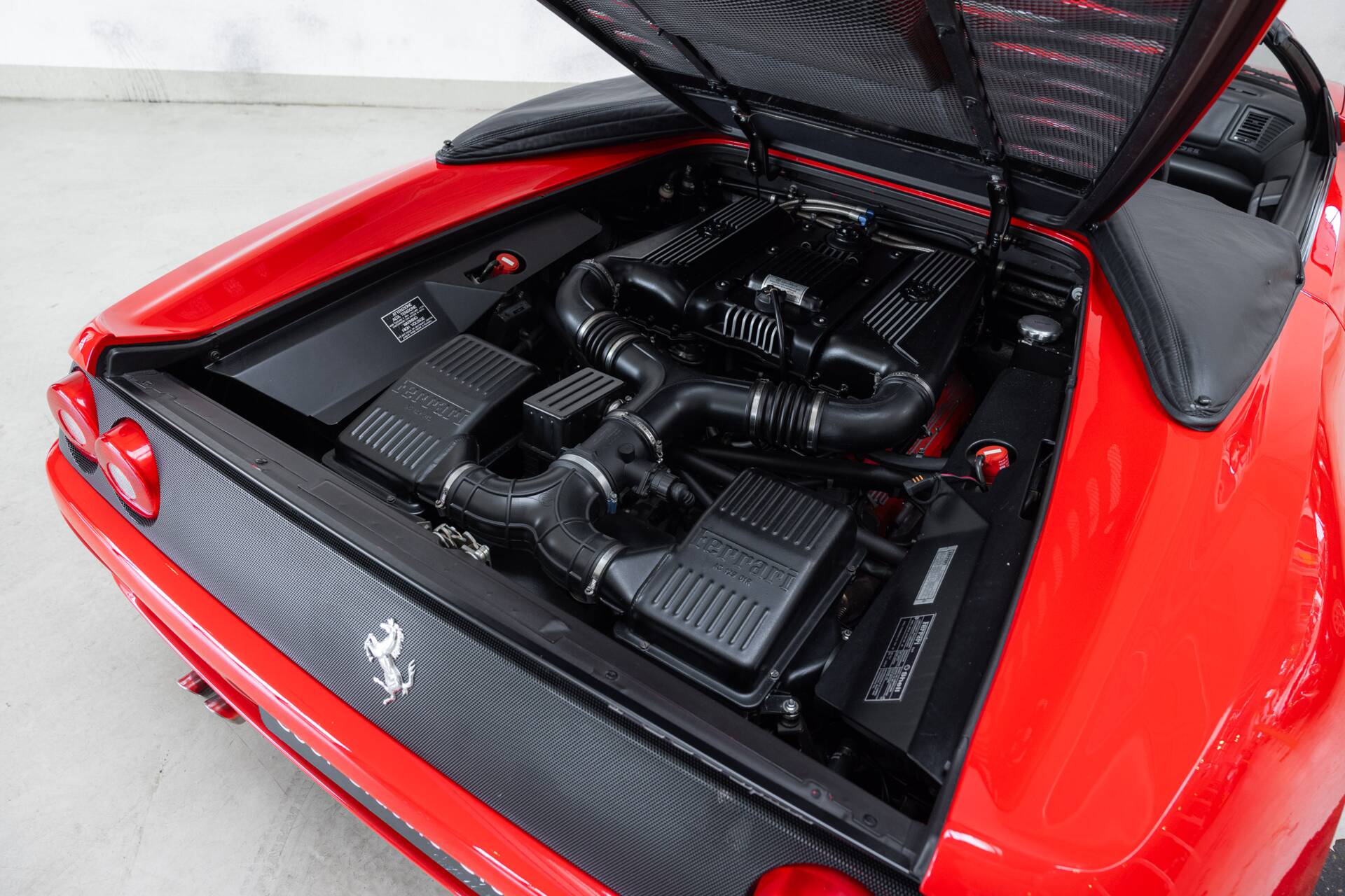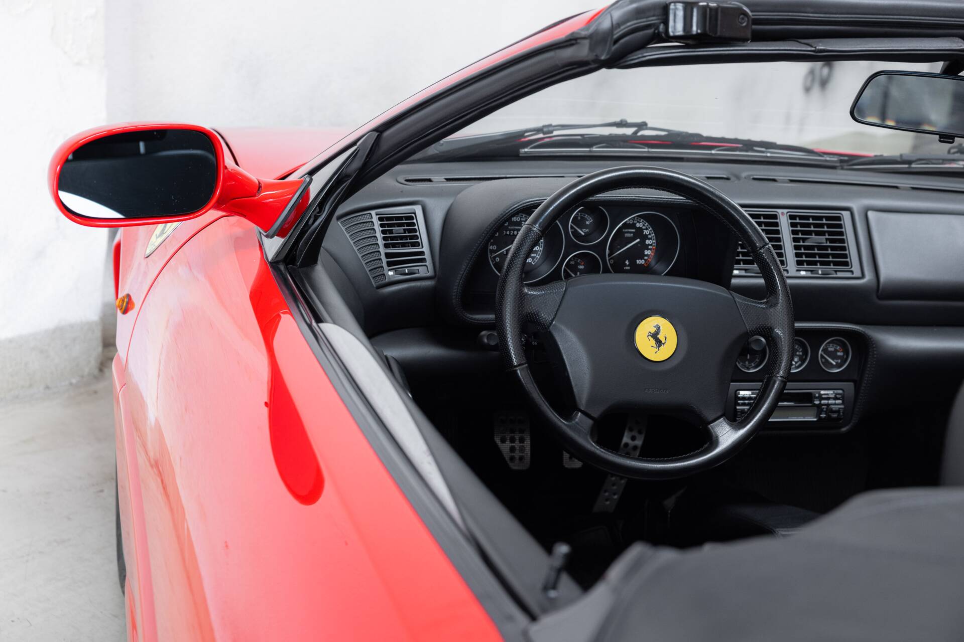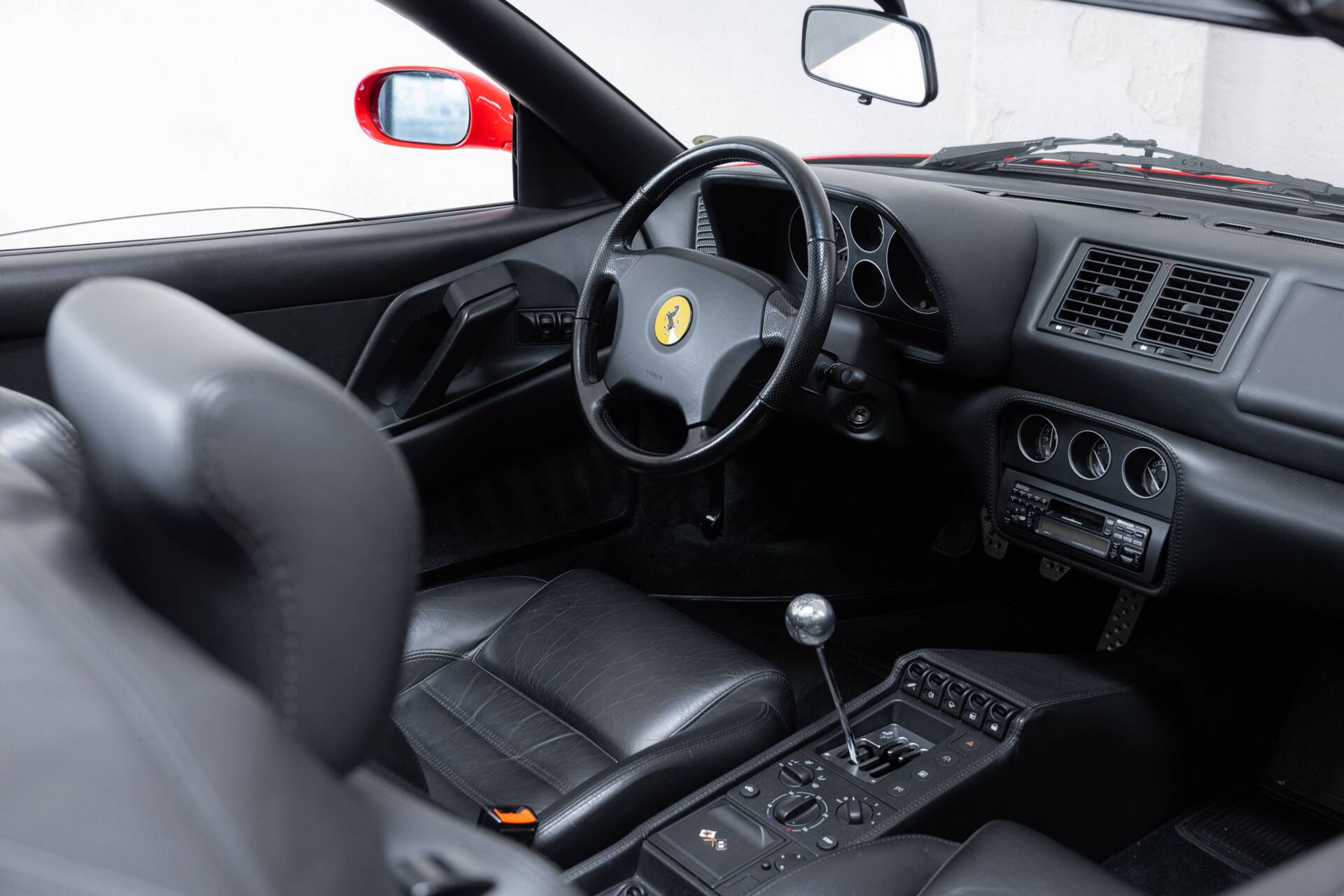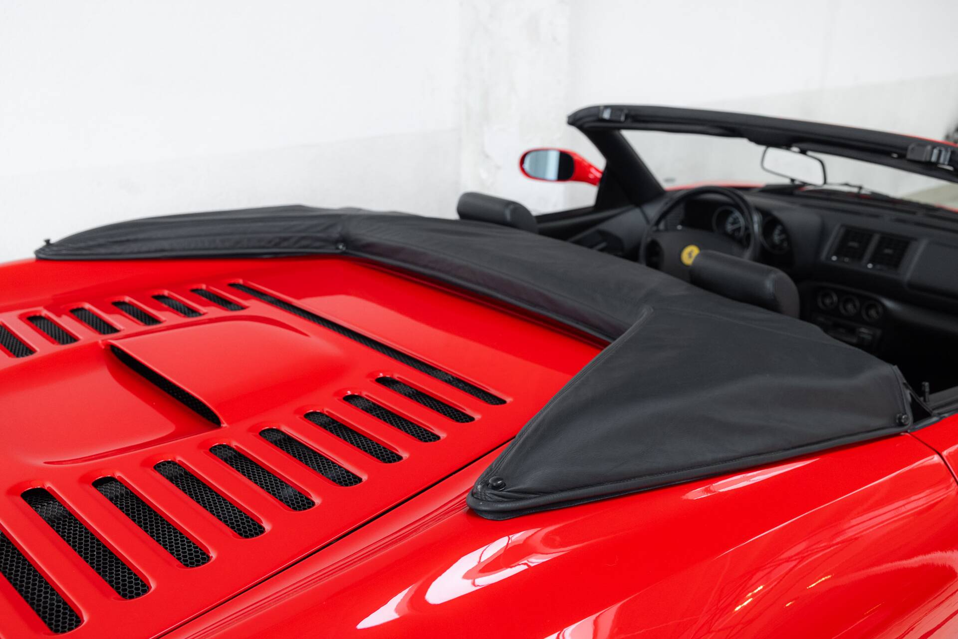 Now for the serious part. Our example is exactly as you’d want it. Originally delivered in Frankfurt, meticulously maintained, fully stamped service books, and the right boxes ticked: Rosso Corsa exterior, black leather interior, Ferrari shields on the flanks, painted brake calipers, and the Challenge grille at the rear. And yes, the holy grail: a six-speed manual gearbox. No compromises, no clickbait Ferrari. This is the F355 Spider purists dream about at night. The difference between a well-preserved car and a true collectible. Will we be seeing you soon?