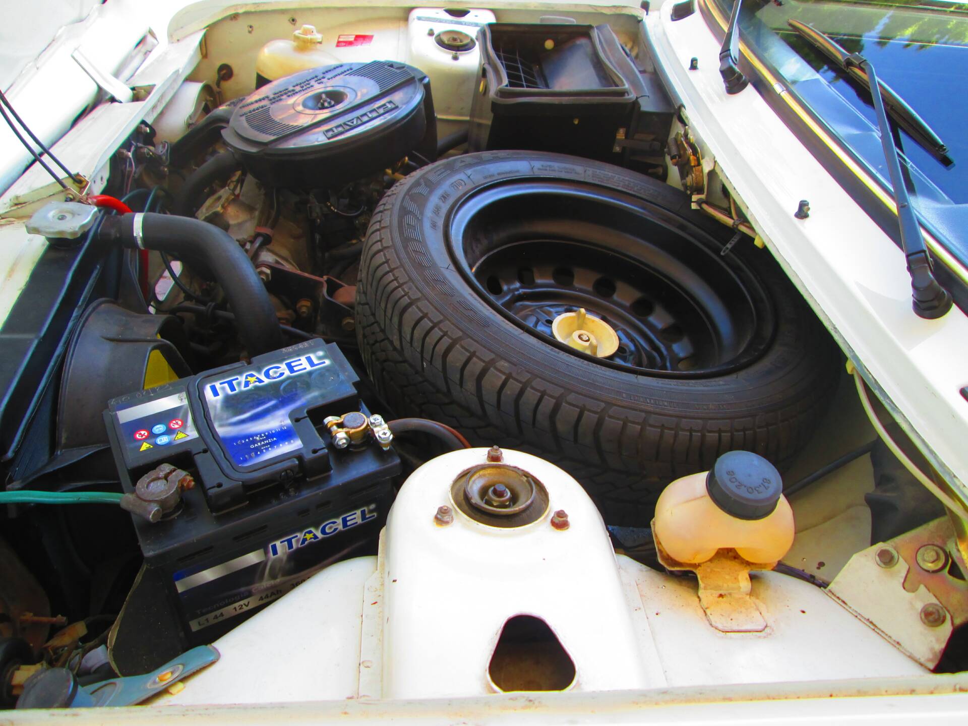 Nel 2025 la Fiat 128 è stata oggetto di una revisione meccanica totale finalizzata al ritorno su strada in piena sicurezza. In particolare, sono stati completamente rifatti l’impianto frenante e il sistema di alimentazione, oltre alla sostituzione di tutti i liquidi e a un tagliando completo. Questi interventi sono stati eseguiti per garantire affidabilità e corretto funzionamento dopo il lungo periodo di inattività. Non sono disponibili ulteriori dettagli di tipo analitico sui singoli componenti sostituiti.