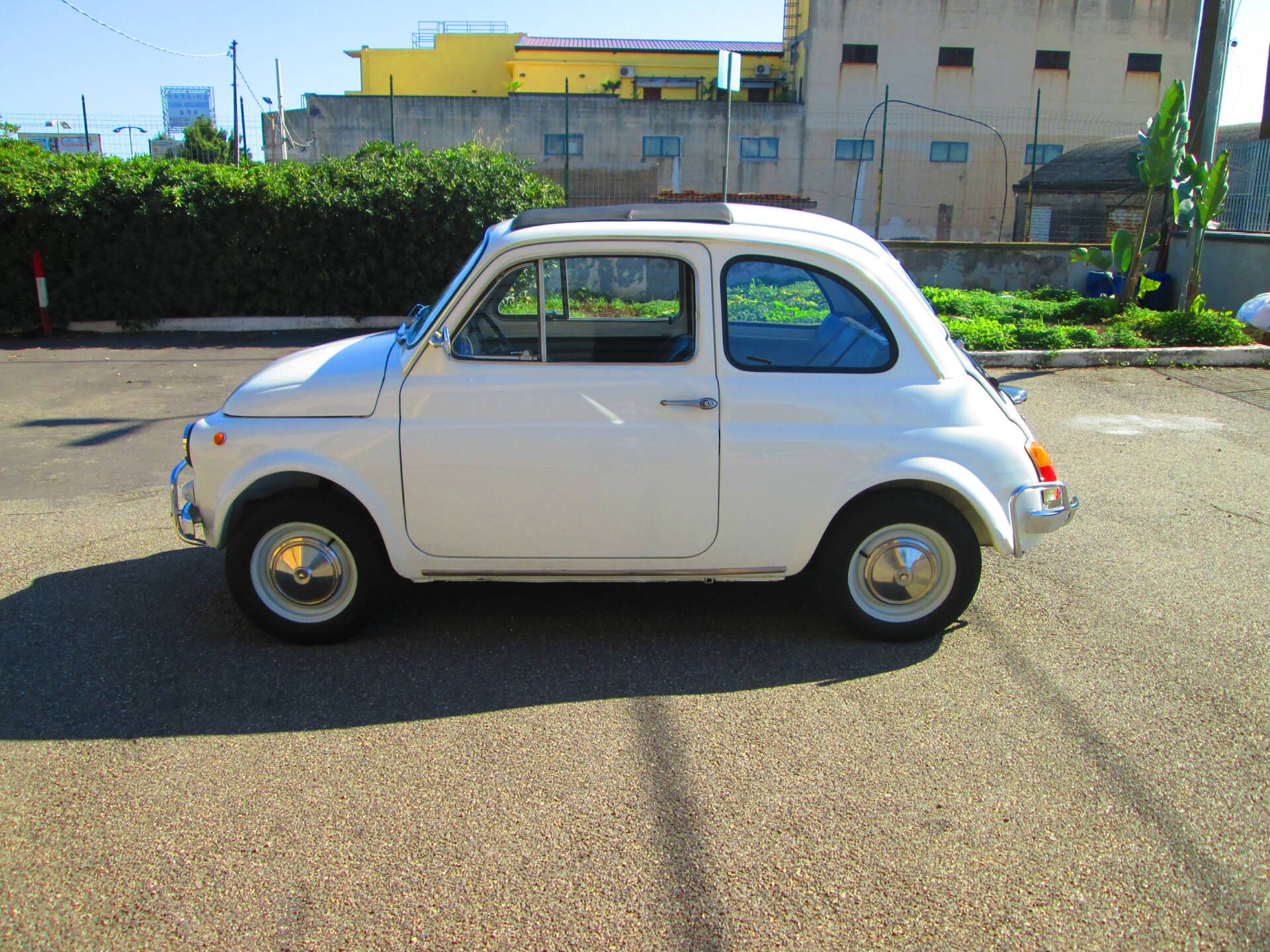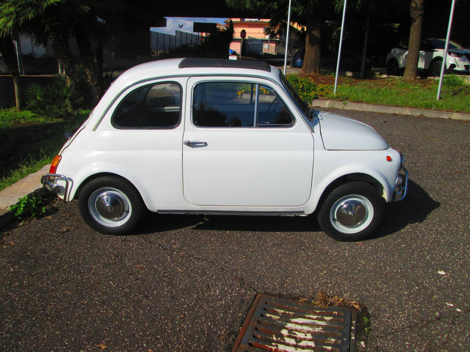 Fiat 500 L del 1972 in vendita da collezione privata, restaurata dal secondo proprietario nel 2010, con interni totalmente originali con ancora la moquette originale di fabbrica, verniciatura nel bianco fiat 233 con qualche lieve segno dati i 15 anni dal restauro, cromature originali con qualche segno degli anni, meccanica efficiente, sono stati rifatti i freni da poco ed è stato fatto un regolare tagliando di manutenzione. Il precedente proprietario ha sostituito il motore con un 650 della fiat 126 con alternatore al posto della dinamo e con prestazioni più performanti, il cambio è quello originale 500. Con targhe originali Palermo e primo libretto di circolazione e revisione valida sino al 10/2026.