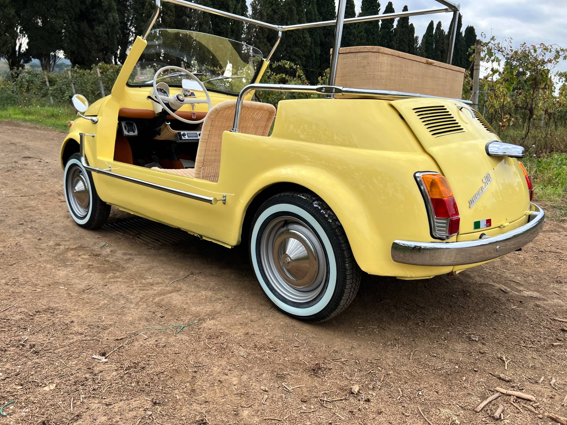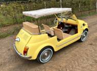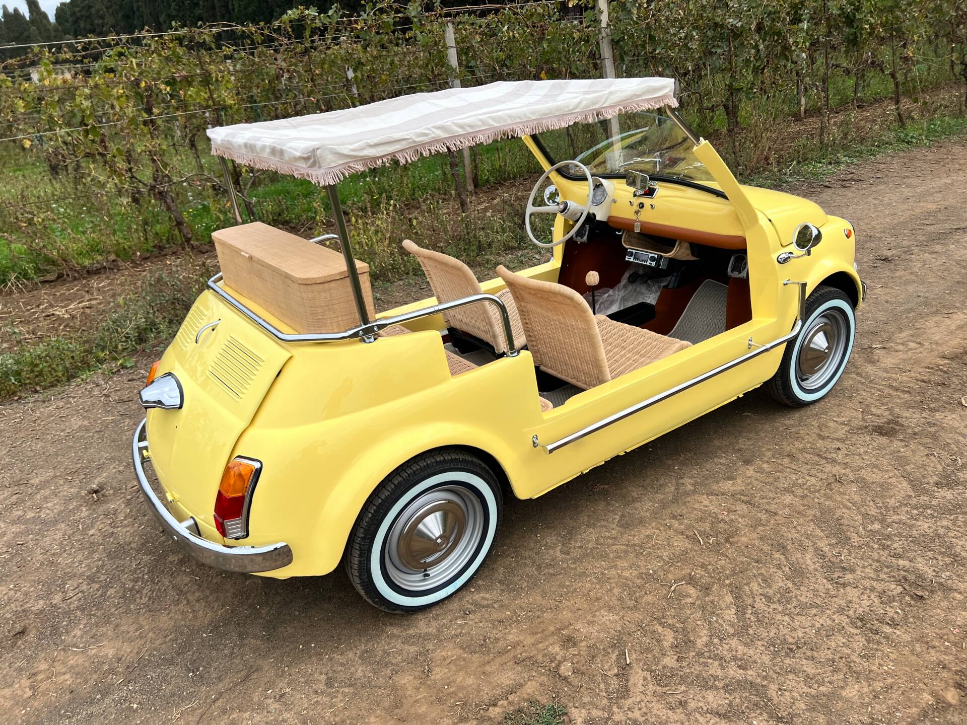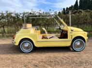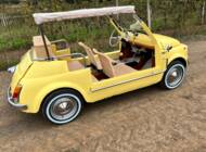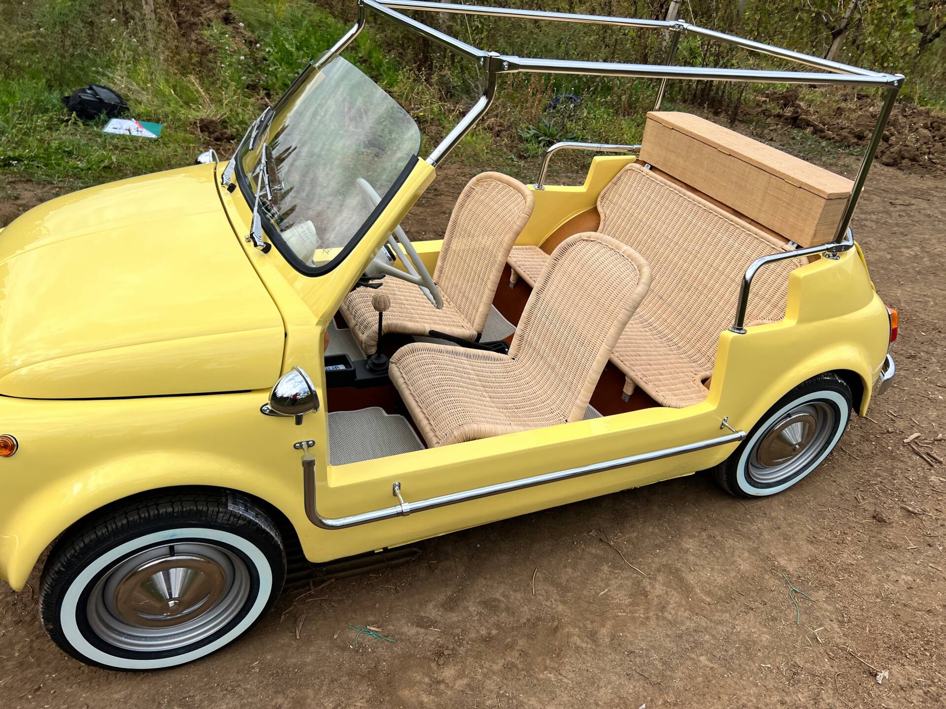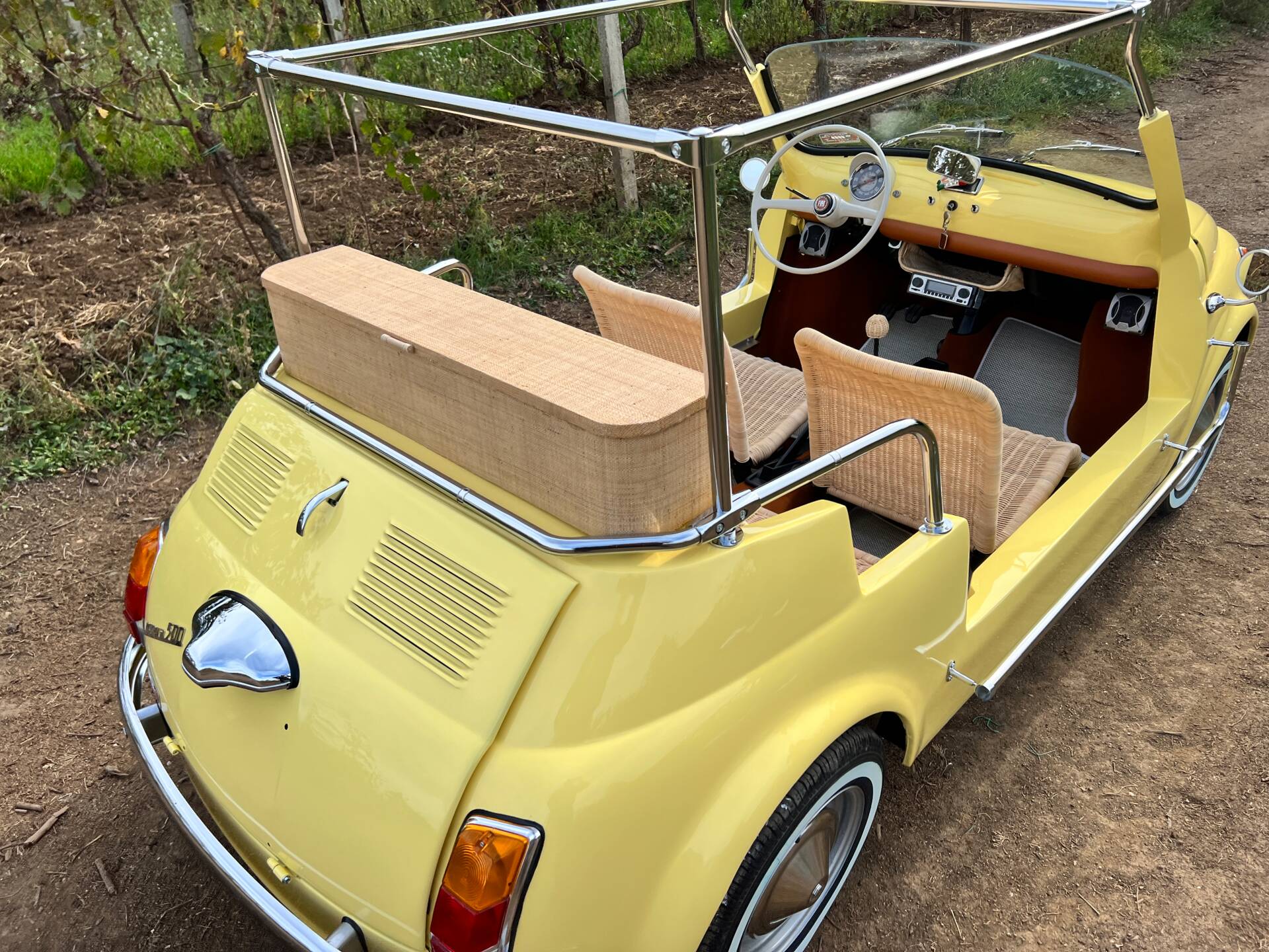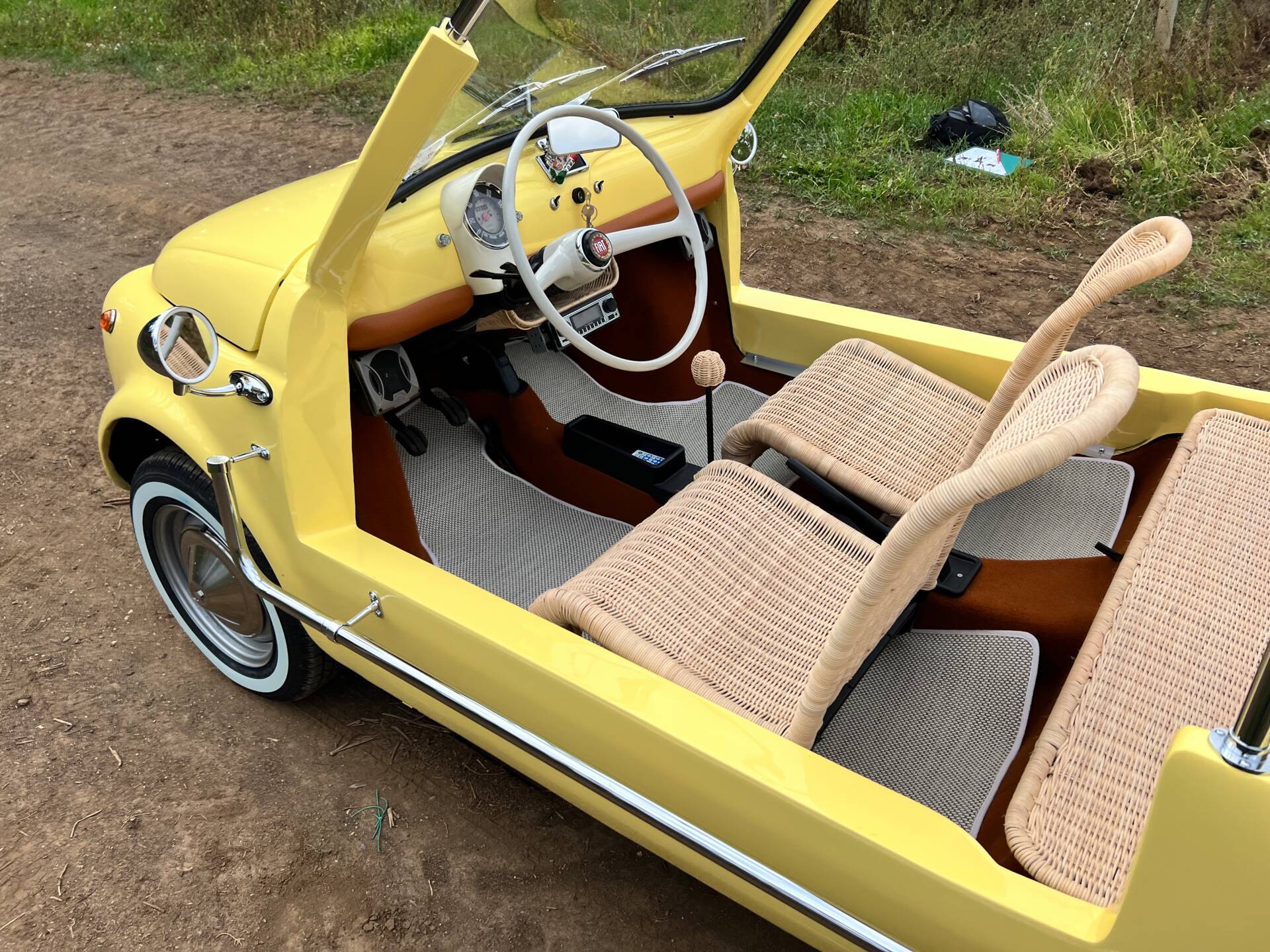 Questa Jolly Spiaggina, realizzata sulla base di una FIAT 500 F del 1972, colpisce per una meticolosa restaurazione frame-off. La carrozzeria è stata completamente sabbiata e tutte le lamiere sono state sostituite – un intervento che si riflette nell’aspetto impeccabile del veicolo. Ogni componente tecnico, dal motore al cambio, è stato rivisto o sostituito con grande cura. Gli interni sono stati realizzati a mano da un tappezziere specializzato in auto d’epoca. La trasformazione in Jolly “Spiaggina” richiama i leggendari esemplari Carrozzeria Ghia, rendendo questa vettura una vera rarità. Tutta la documentazione relativa al restauro e alla trasformazione, nonché i documenti originali della vettura, sono presenti.