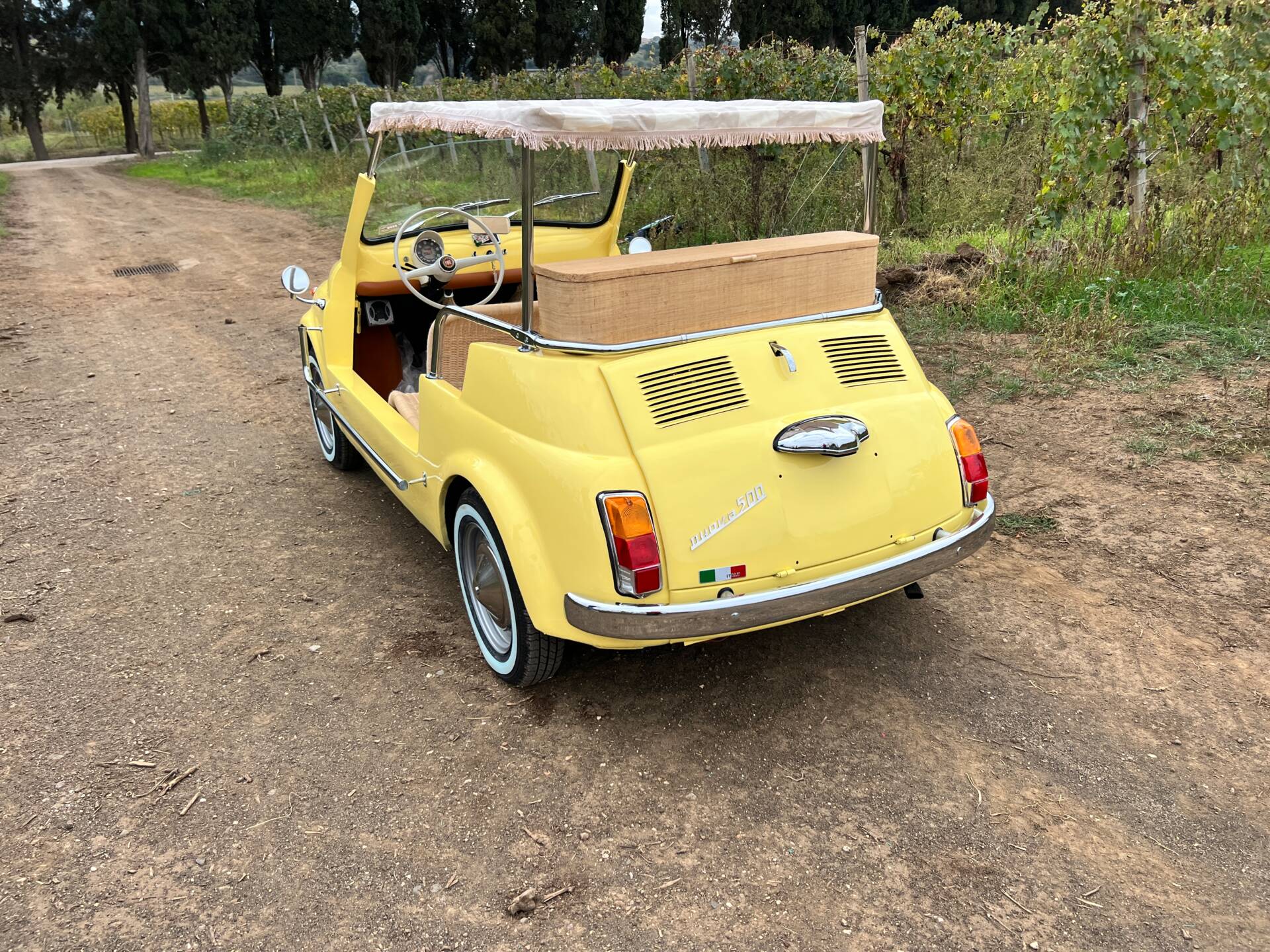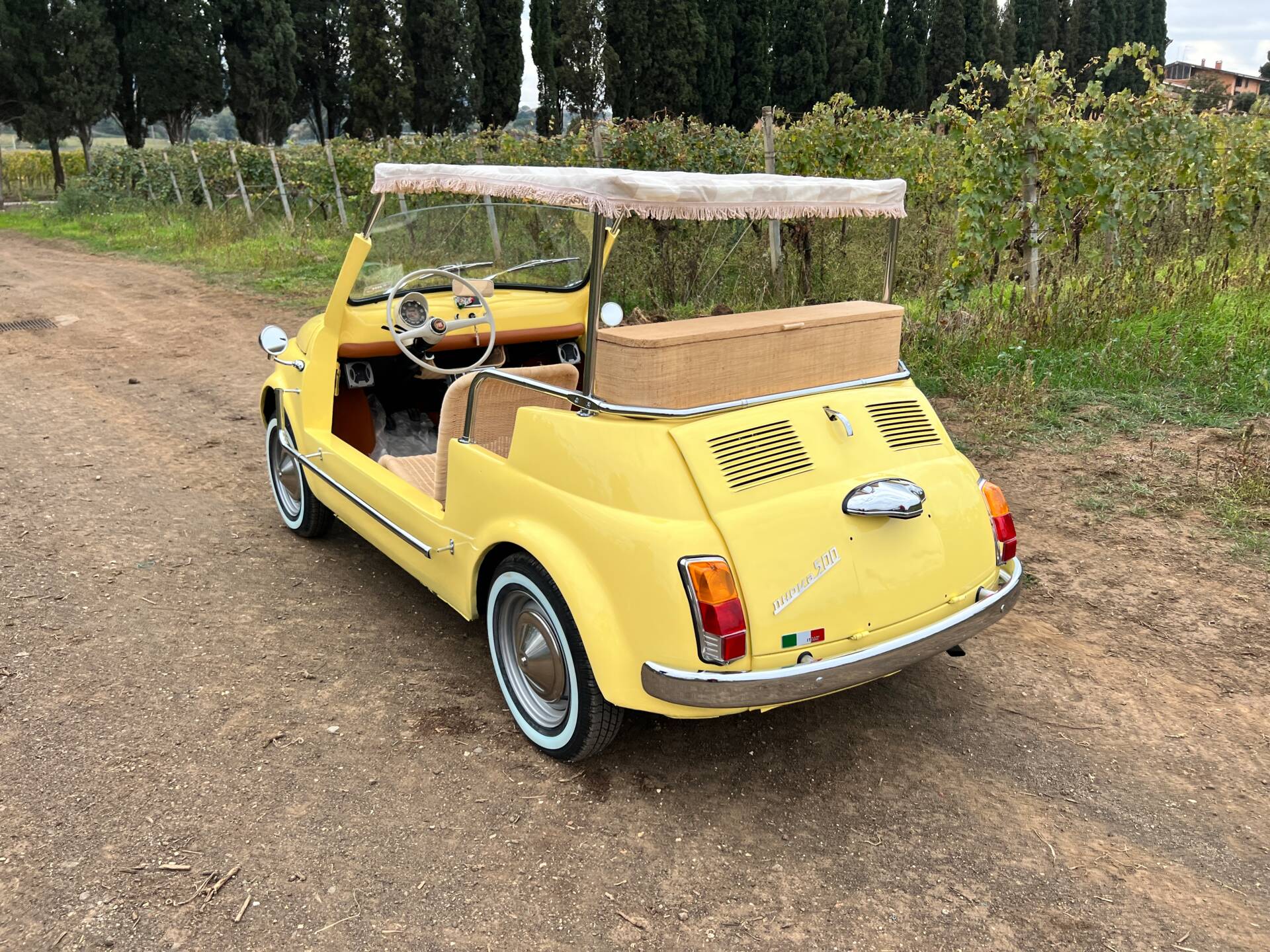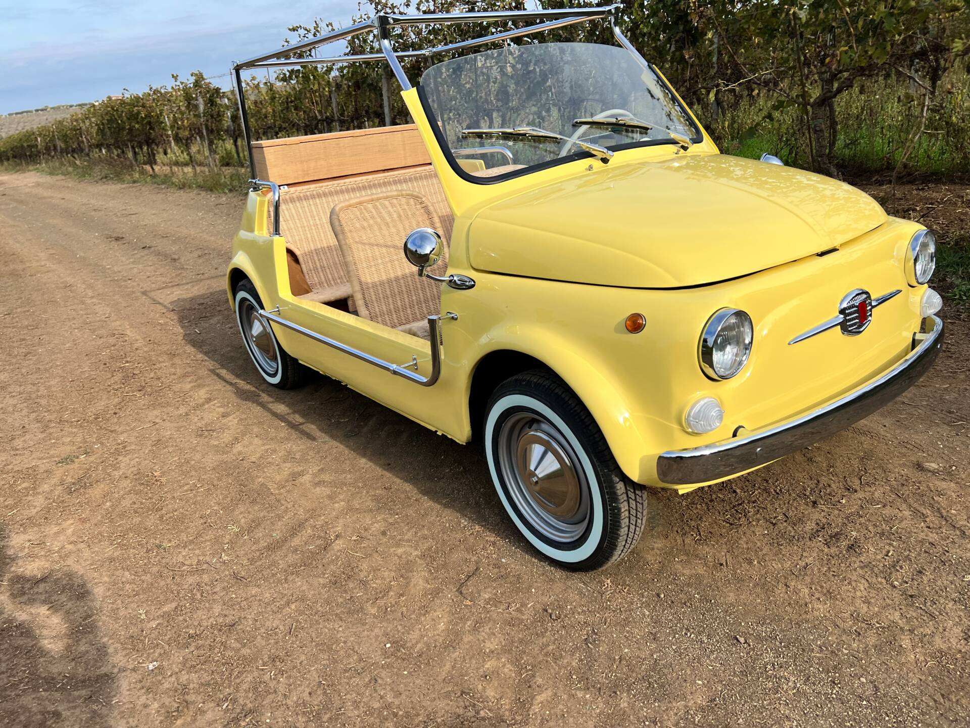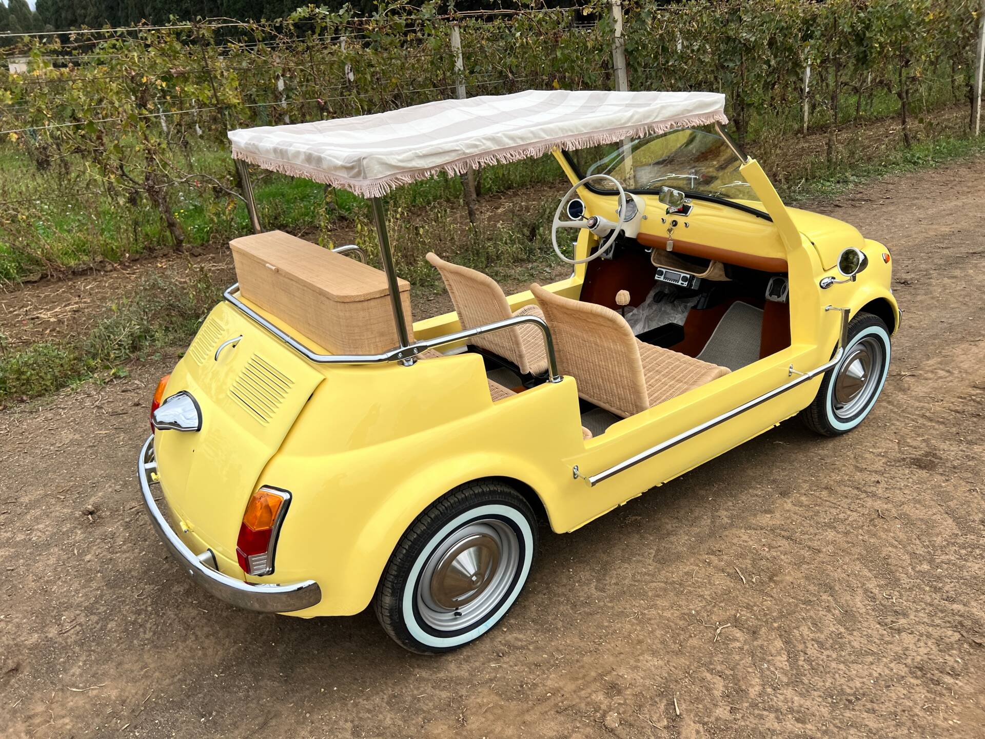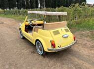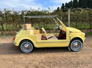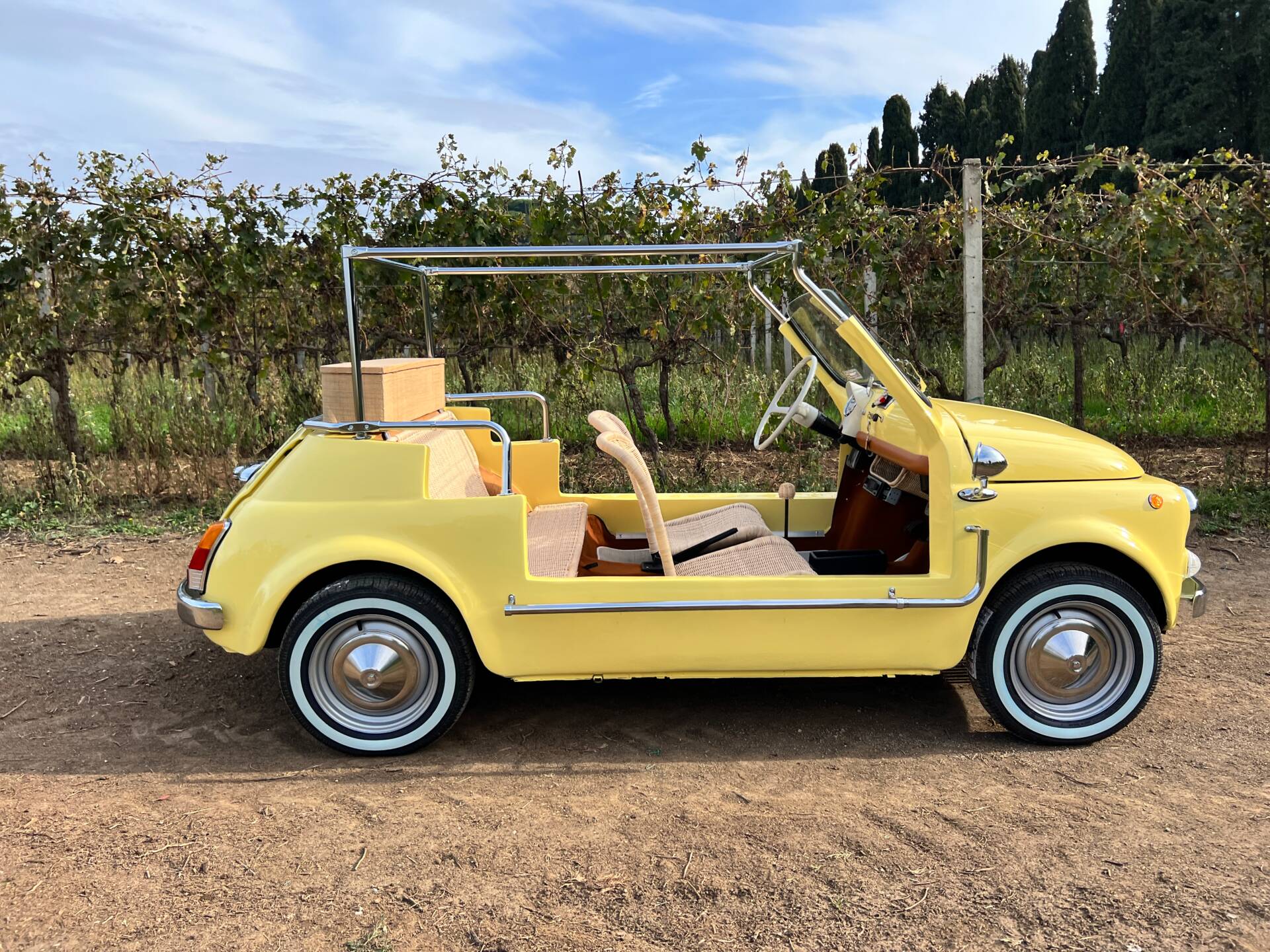 Questa Jolly Spiaggina, realizzata sulla base di una FIAT 500 F del 1972, colpisce per una meticolosa restaurazione frame-off. La carrozzeria è stata completamente sabbiata e tutte le lamiere sono state sostituite – un intervento che si riflette nell’aspetto impeccabile del veicolo. Ogni componente tecnico, dal motore al cambio, è stato rivisto o sostituito con grande cura. Gli interni sono stati realizzati a mano da un tappezziere specializzato in auto d’epoca. La trasformazione in Jolly “Spiaggina” richiama i leggendari esemplari Carrozzeria Ghia, rendendo questa vettura una vera rarità. Tutta la documentazione relativa al restauro e alla trasformazione, nonché i documenti originali della vettura, sono presenti.