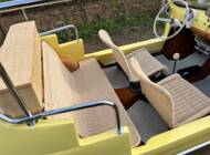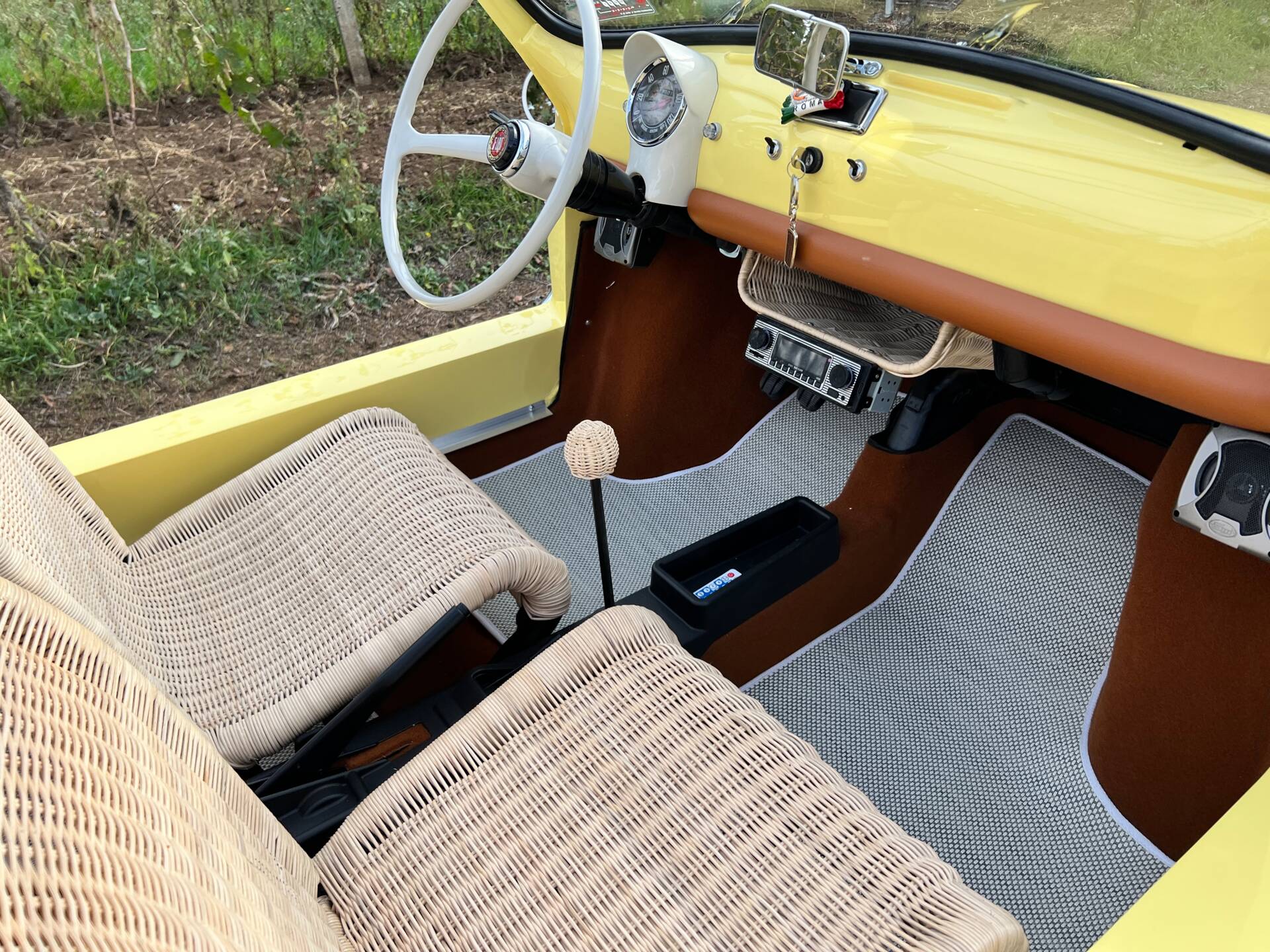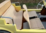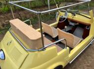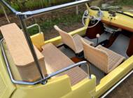 La carrozzeria di questa Jolly è stata completamente smontata, sabbiata e tutte le lamiere sono state sostituite da professionisti. La configurazione aperta si ispira ai leggendari modelli Ghia. Verniciatura, cromature e dettagli sono in condizioni eccellenti. Gli accessori tipici come il tendalino parasole, le finiture e i dettagli “Jolly” sono stati riprodotti con grande attenzione.