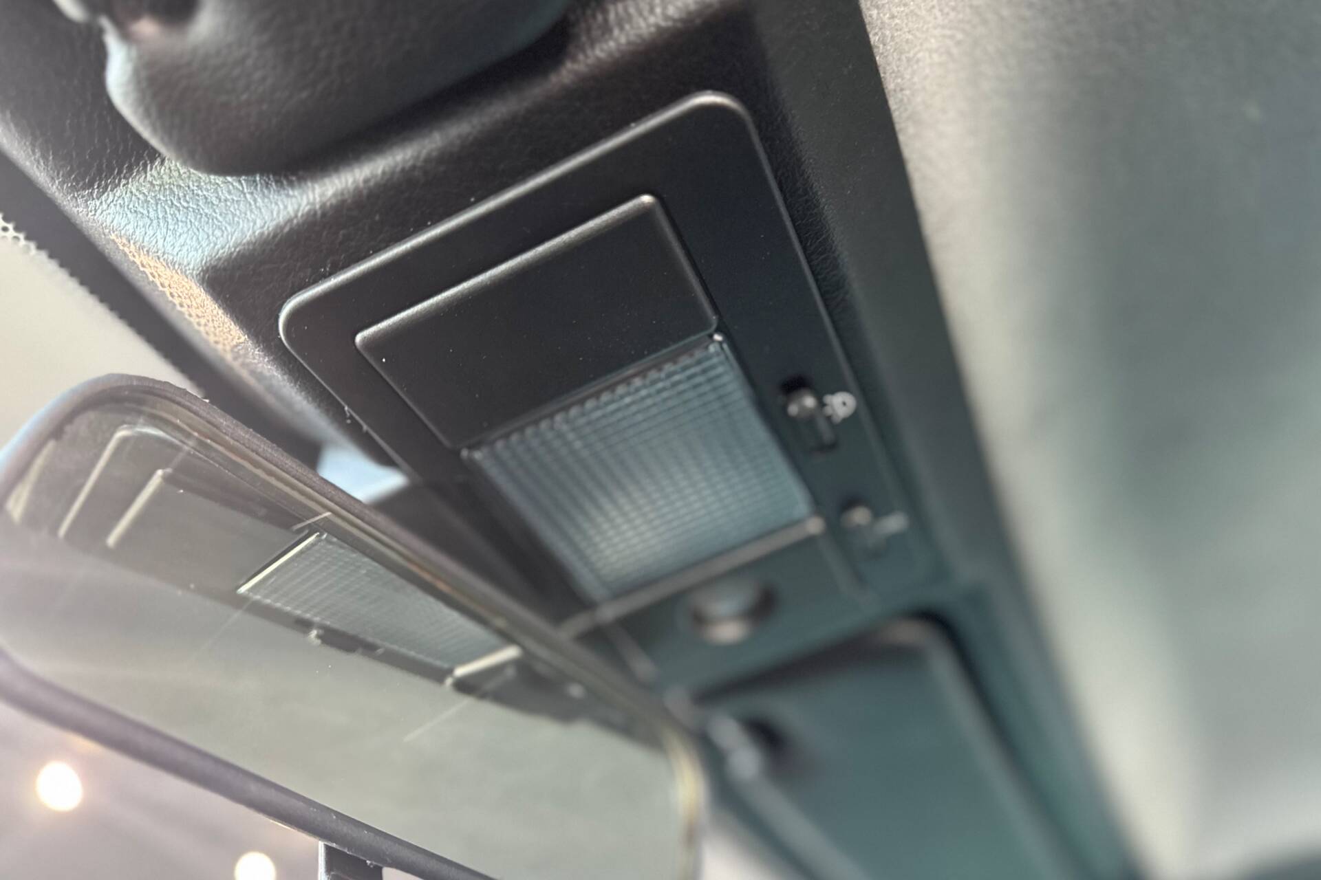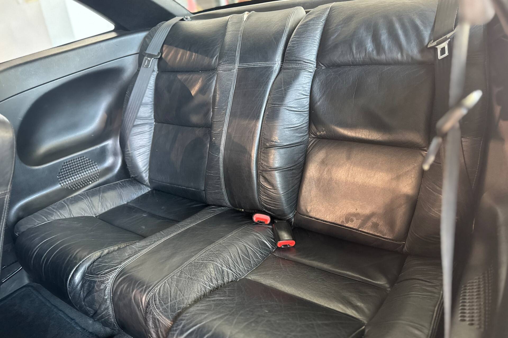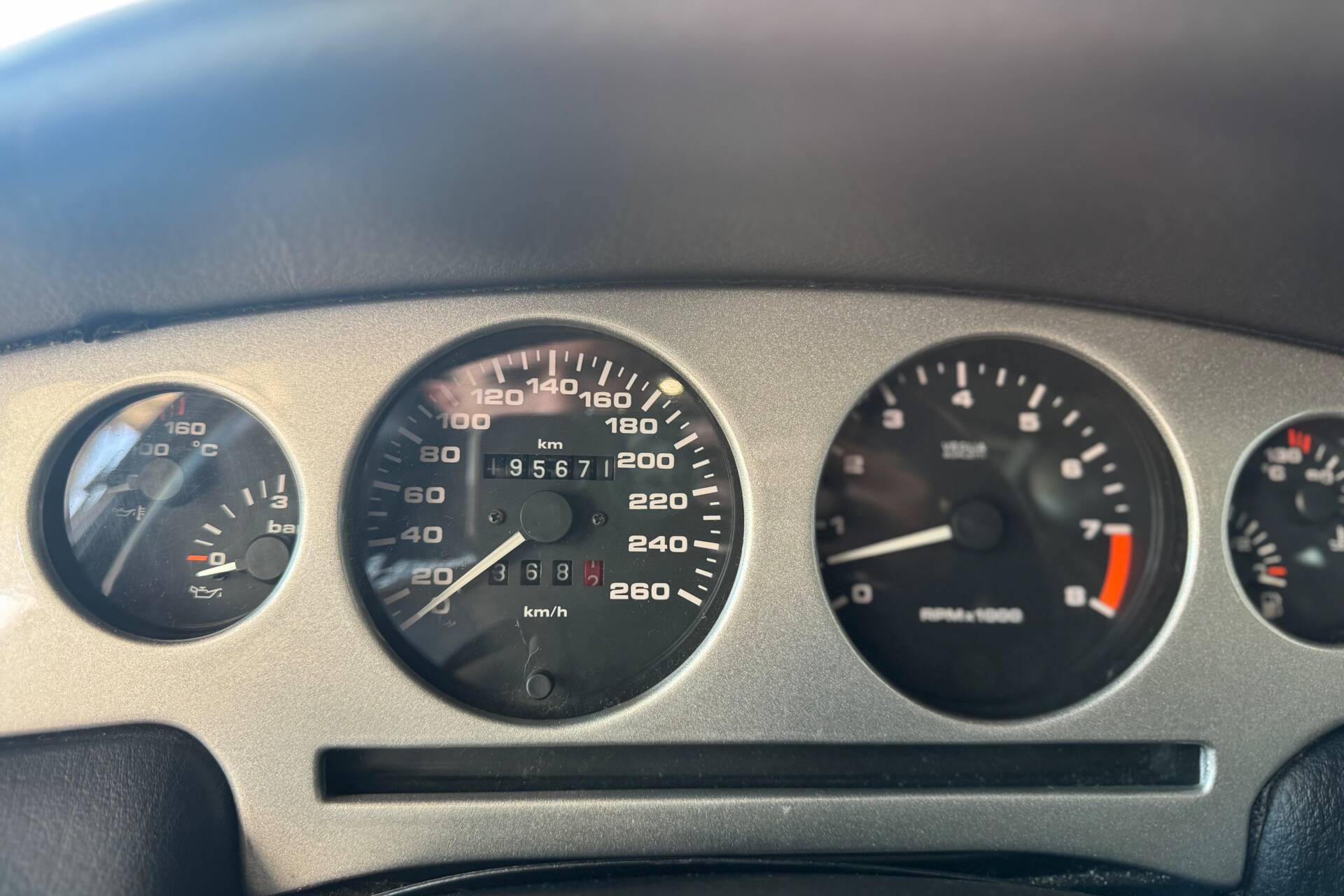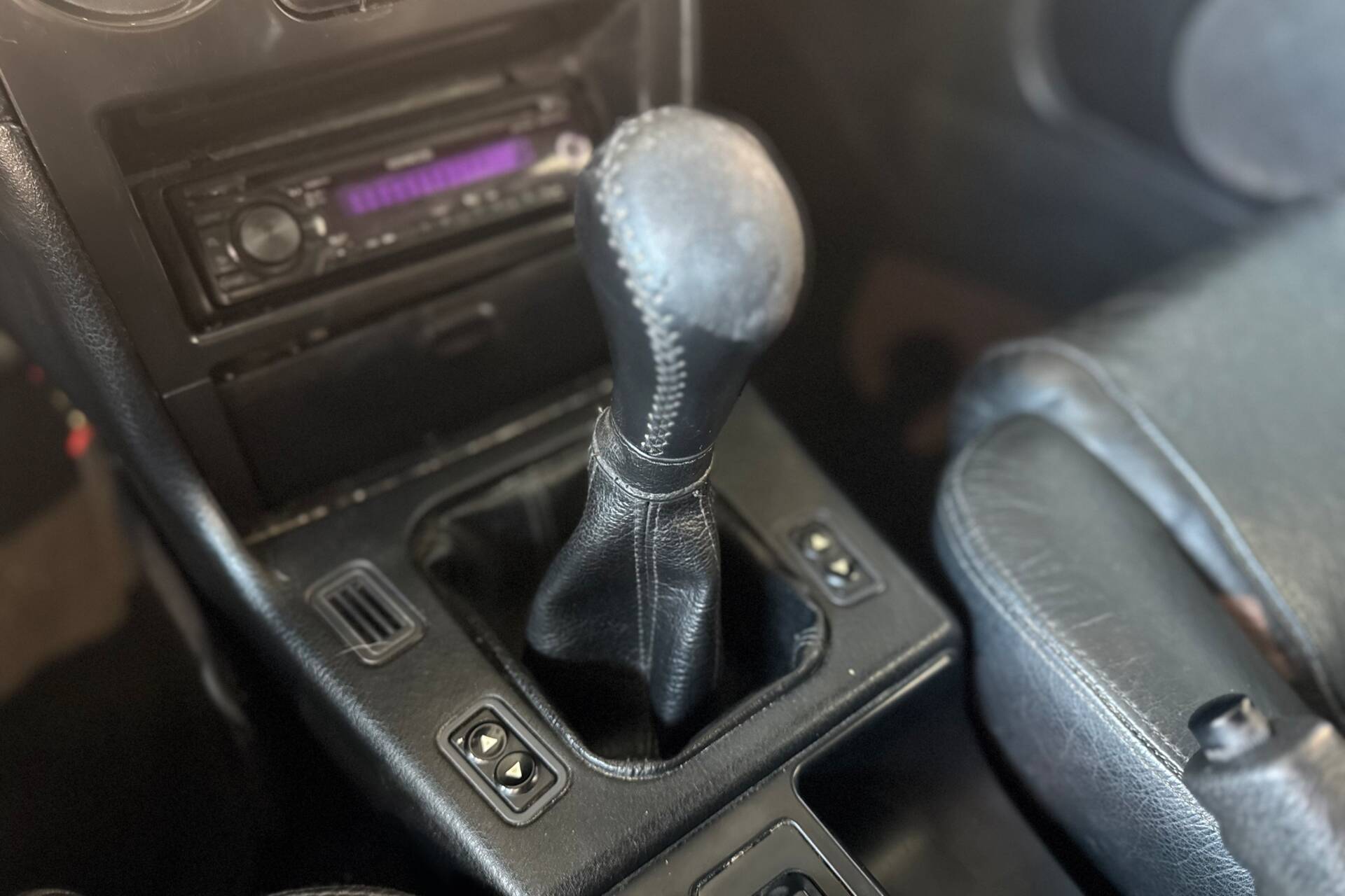 L'intérieur est bien entretenu pour son âge, même si, comme c'est normal pour un véhicule de près de 30 ans, il présente des signes d'usure liés à son utilisation et au temps. On note notamment une déchirure dans le revêtement d'un siège, ainsi que de légères marques sur certains plastiques et commandes. Il n'y a aucun dommage structurel ni détérioration importante ; il s'agit simplement des marques d'usage normales pour une voiture qui a été appréciée et bien entretenue.