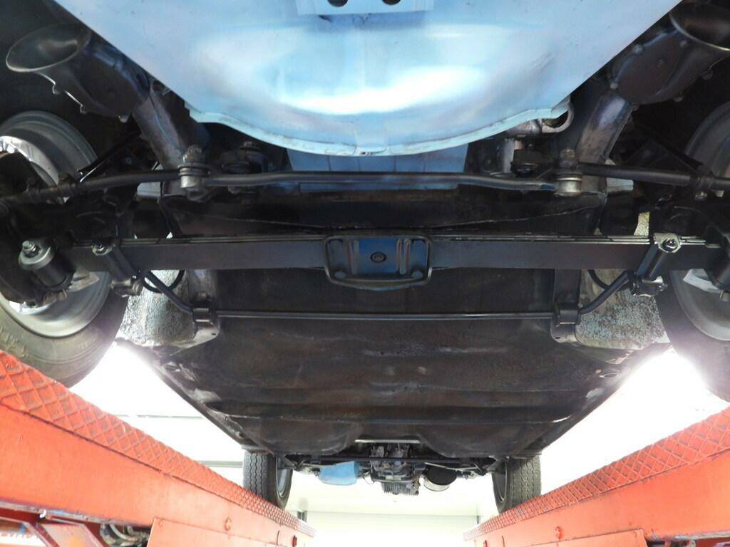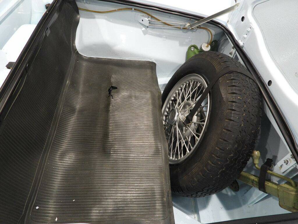 Sedili e pannelli in sky blu, Volante a due razze, Cruscotto in legno, Sovratappeti in gomma originali dell’epoca, Specchio esterno Vitaloni lato guida cromato, 5 cerchi a raggi verniciati con gallettone con pneumatici Pirelli cinturato P3 155 SR13