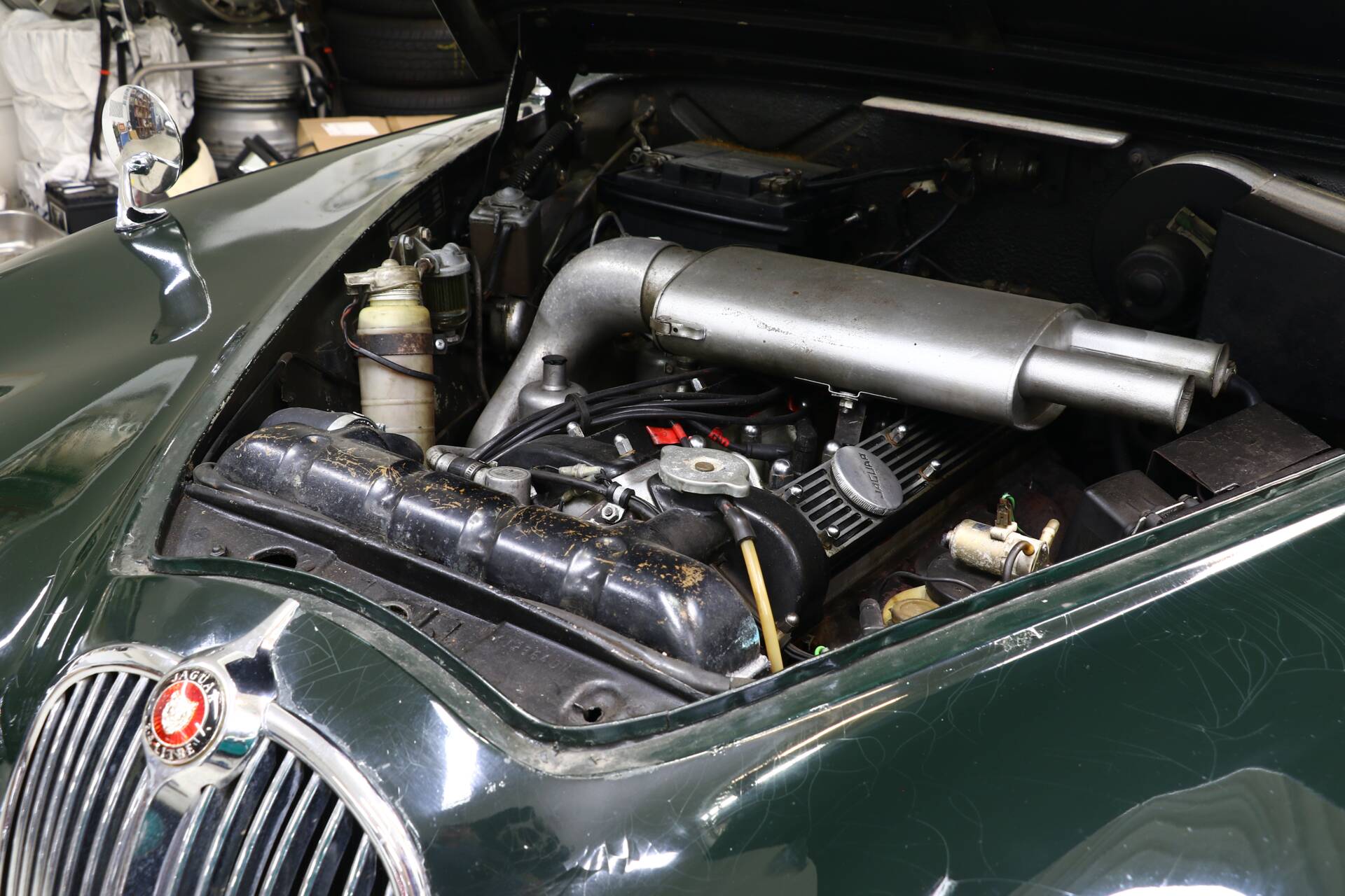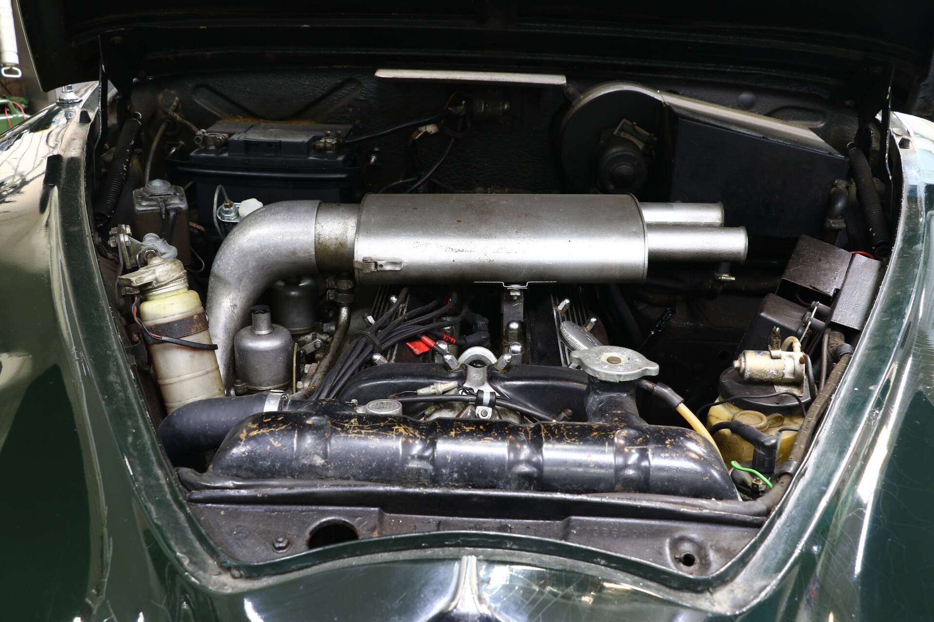 Sein 2,4 Liter Sechszylinder-Reihenmotor mit zwei obenliegenden Nockenwellen und 133 PS startet bei gezogenem Choke und gefluteten Vergasern einwandfrei und nimmt sofort willig Gas an. Er läuft sehr kraftvoll und begeistert, nach dem Maschine behutsam auf Betriebstemperatur gebracht wurde, mit sanftem Druck in jedem Drehzahlbereich -- und das ab Leerlaufdrehzahl! Das manuelle 4-Gang-Getriebe lässt sich exakt und mühelos schalten, bei höherer Geschwindigkeit lässt sich die Drehzahl via Overdrive um ca. 20 % senken. Das schont den Motor und senkt den Benzinverbrauch. Am Fahrzeug ist eine Edelstahl-Auspuffanlage mit schönem Klangbild verbaut und es wurde eine leistungsstarke 4-Kolben-Scheiben-Bremsanlage nachgerüstet. Die Gesamtlaufleistung des am 17.04.1968 durch Henlys in London ausgelieferte Fahrzeug lässt sich in Aufzeichnungen vom Vorbesitzer nachvollziehen und liegt jetzt bei 107.000 Meilen (172000 Kilometern).