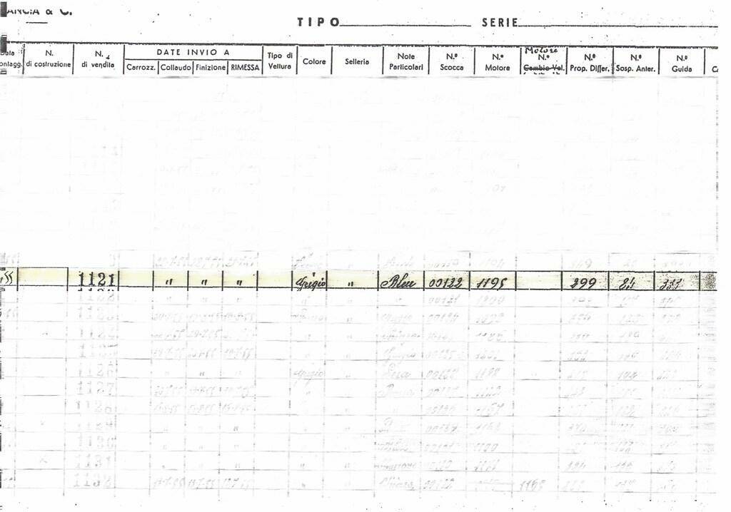 DISPONIBILE STRINGA REGISTRO DI PRODUZIONE LANCIA RELATIVA AL TELAIO COMPROVANTE NUMERAZIONE DI: MOTORE, SCOCCA, CAMBIO, DIFFERENZIALE, ASSALE ANTERIORE, TUTTI COMPONENTI MECCANICI ORIGINALI E DI PRIMO IMPIANTO QUANTO SOPRA ASSOLUTAMENTE ECCEZIONALE E RARISSIMO PER UNA VETTURA DI COSI IMPORTANTE PRESTIGIO