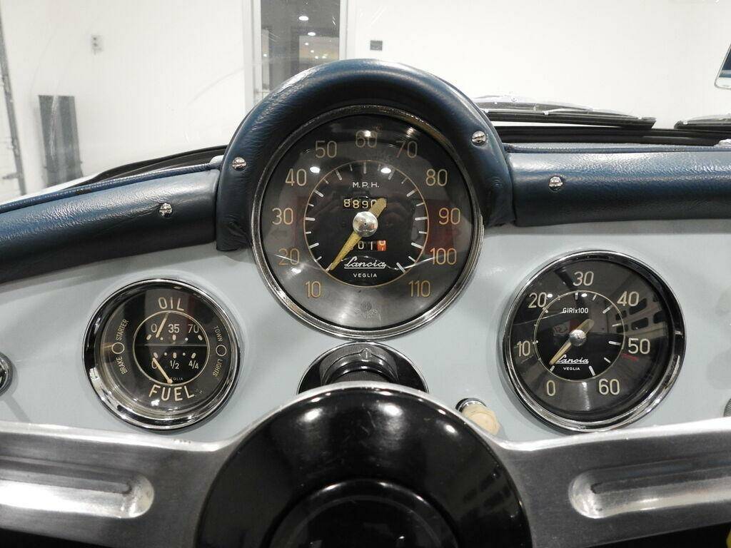 Sedili in pelle Bleu, Voletti removibili alle porte, Specchio esterno lato guida cromato, Cerchi in ferro verniciati con calotte cromate originali Lancia