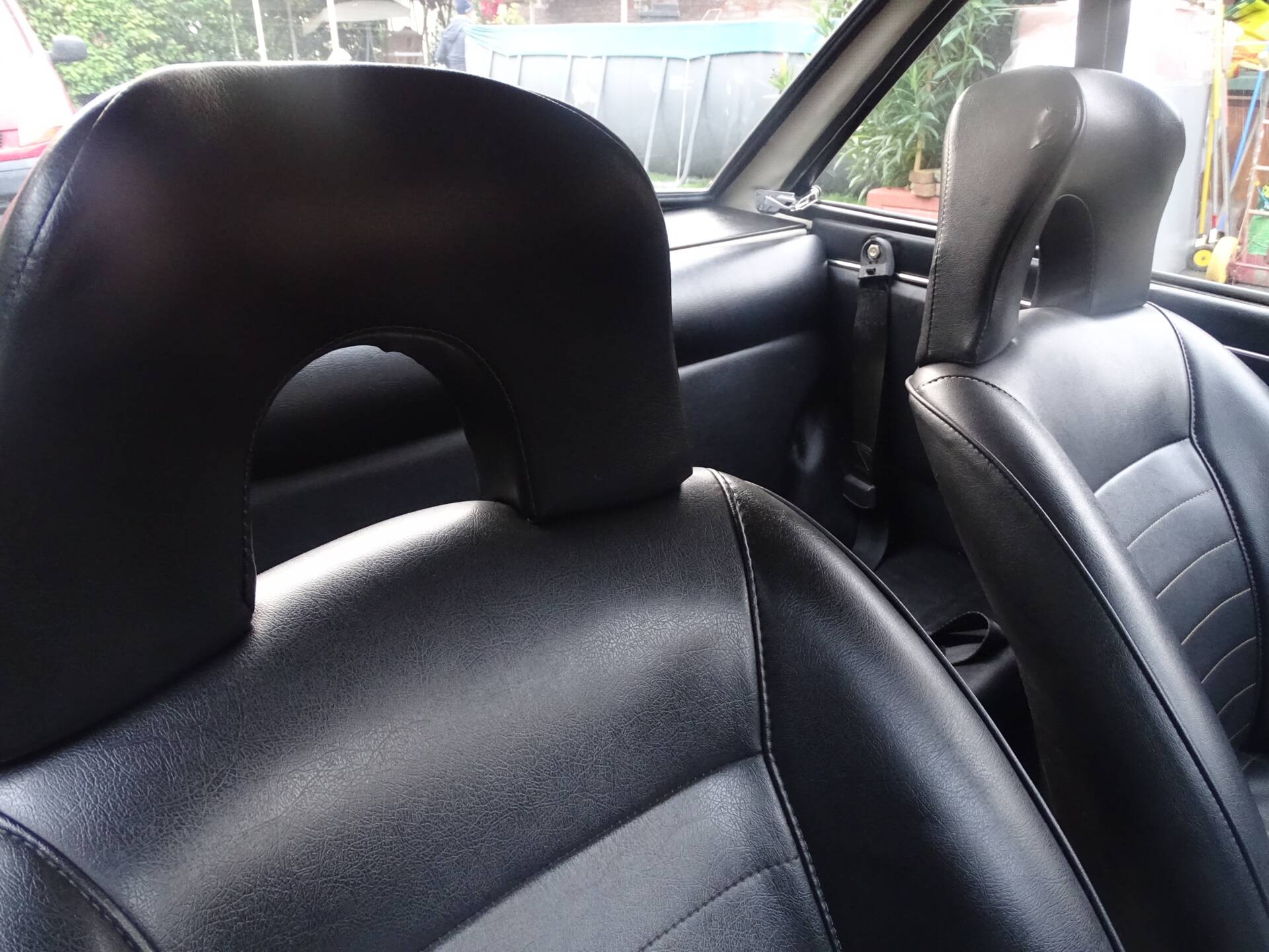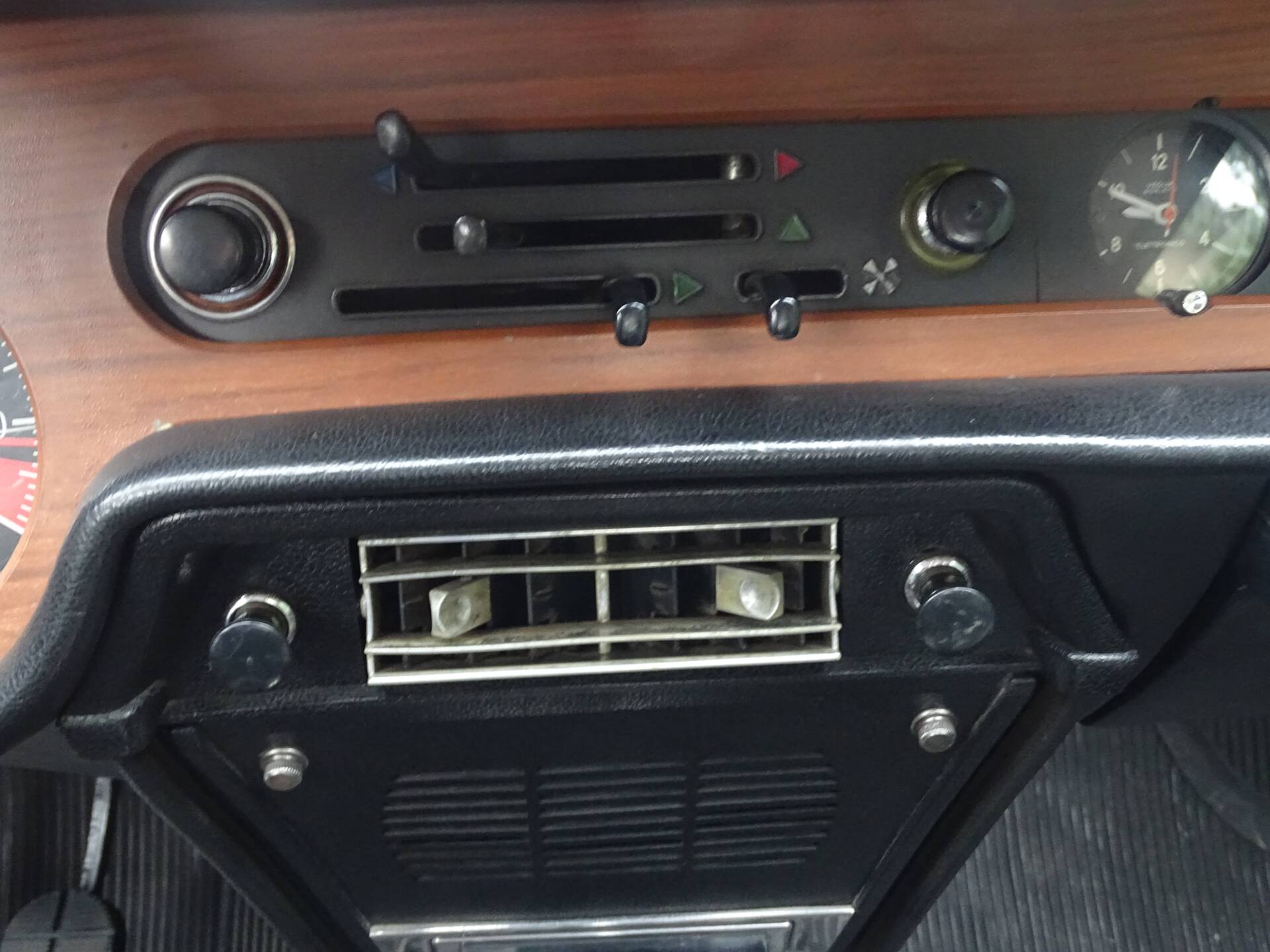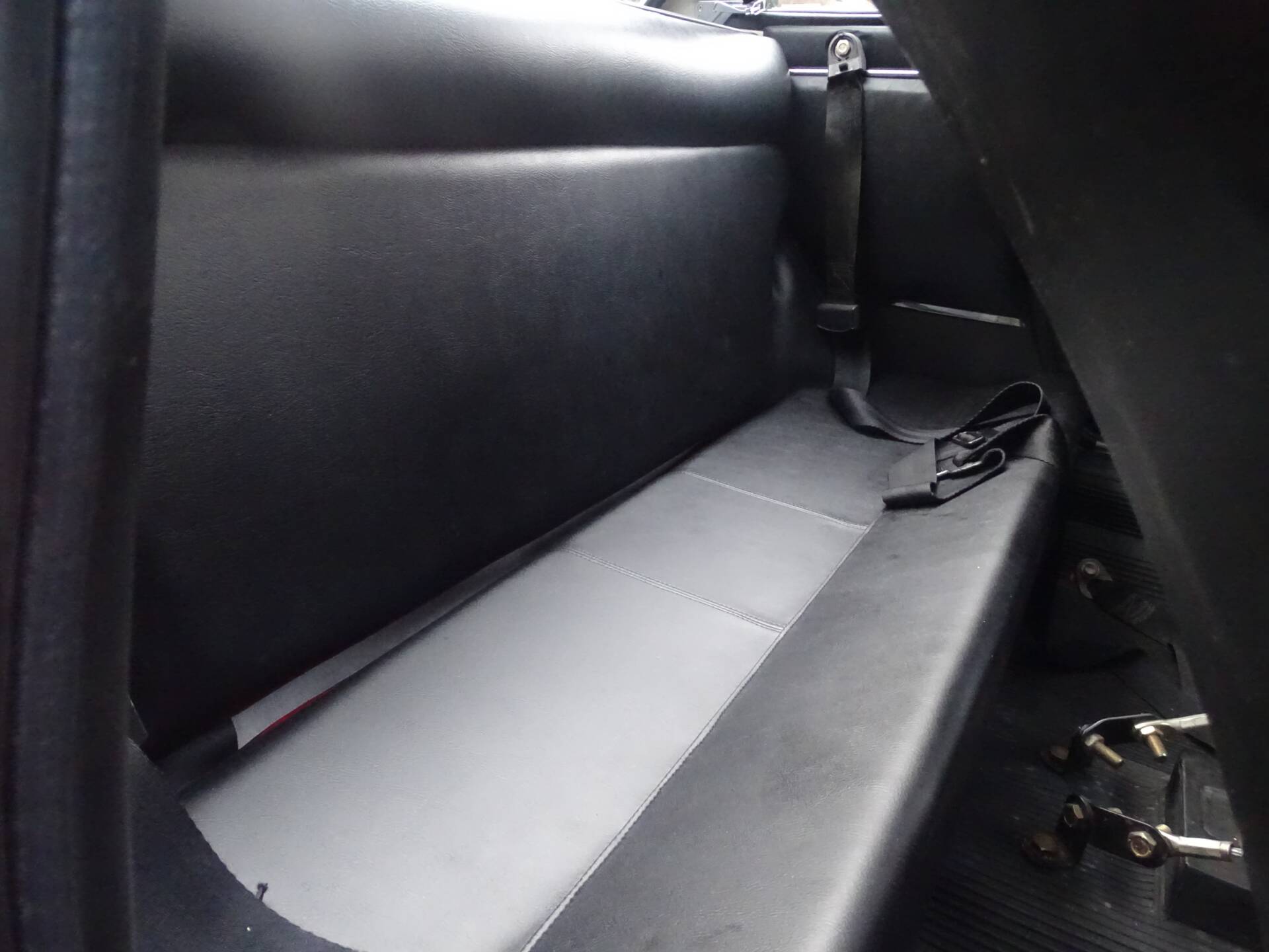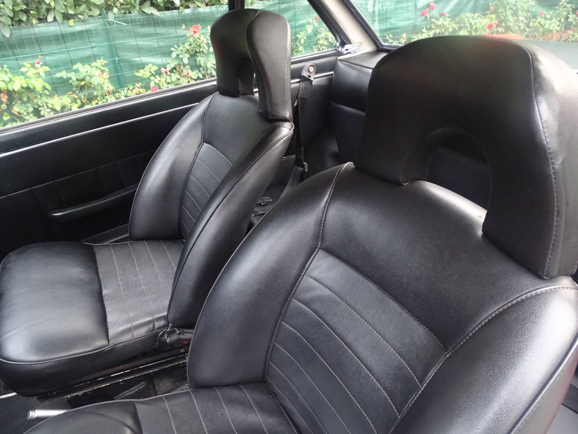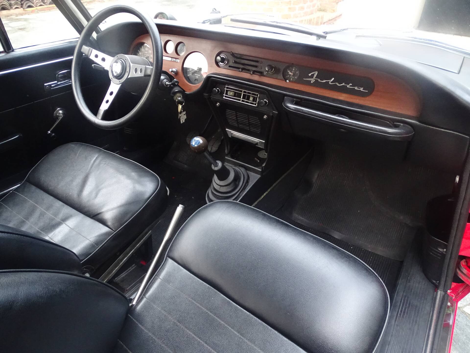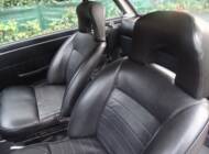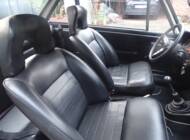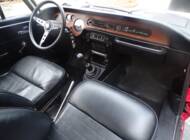 L’abitacolo è stato completamente rinnovato. I sedili anteriori sono stati rivestiti e la panchetta posteriore ricostruita integralmente. Grande attenzione è stata dedicata all’originalità: i pannelli porta di una serie successiva sono stati sostituiti con quelli corretti della seconda serie. Strumentazione e plancia sono state restaurate e presentano un aspetto autentico.