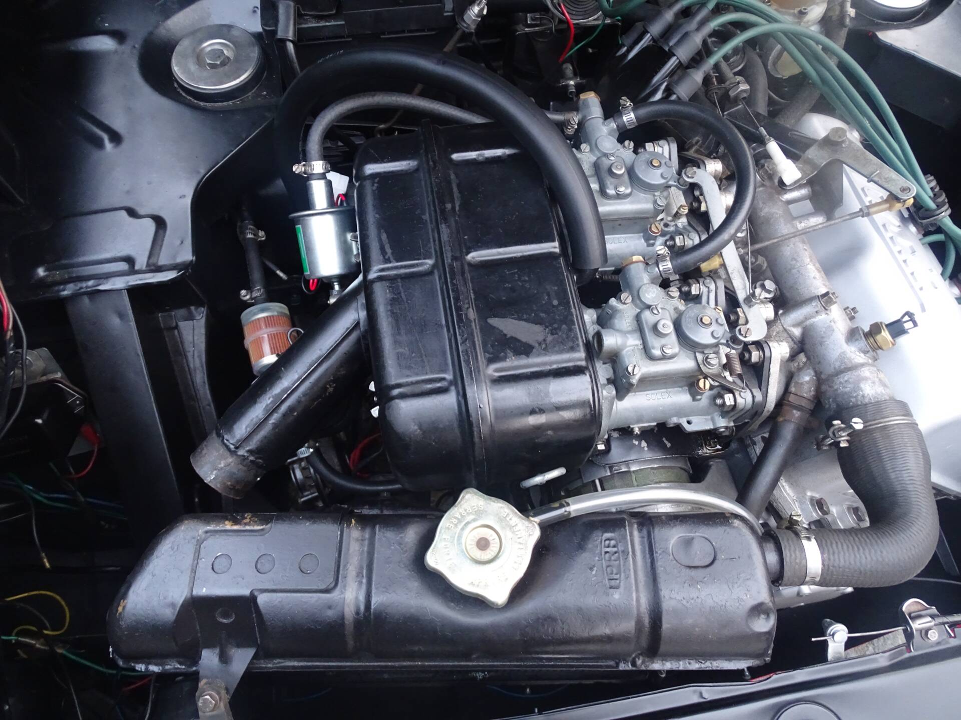 Il motore è stato completamente revisionato, comprendendo la rettifica dei cilindri, nuovi pistoni e fasce, valvole e molle, alberi a camme, bronzine di banco e di biella, catena di distribuzione, carburatori e numerosi altri componenti. Anche l’impianto frenante e le sospensioni sono stati completamente rinnovati, inclusi pompa freni, pinze, dischi e pastiglie. L’impianto elettrico è stato rifatto integralmente seguendo gli schemi originali, con cavi di sezione e colore corretti.