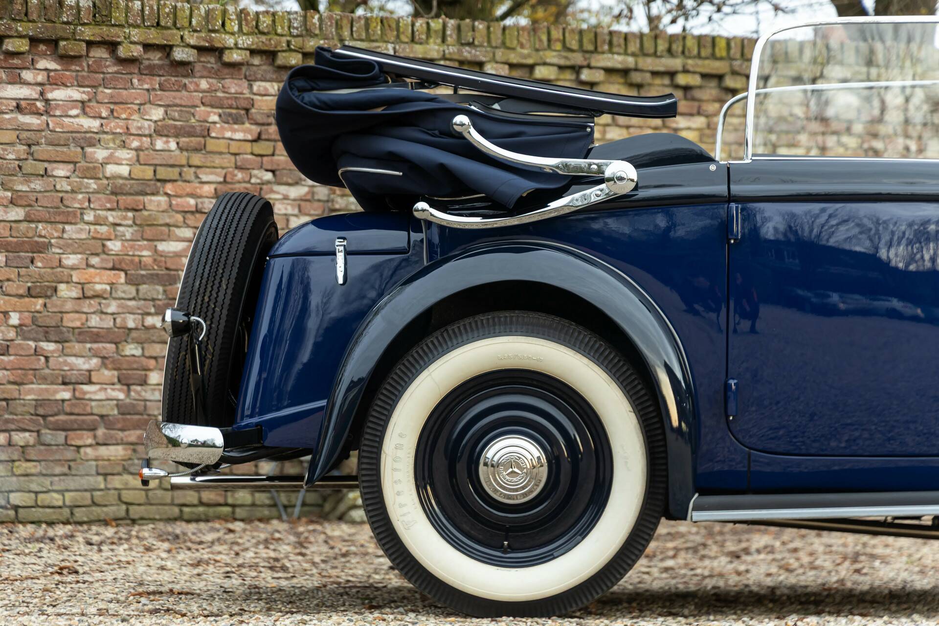Mercedes Benz 200 Cabriolet C "Bare metal-Frame off restoration" "Bare metal-Frame off restoration" - Restoration process documented with more than 600 photos, Major inspection in 2023 after years of display in private collection, Delivered new to Copenhagen-Denmark, All set for the following collector, Periodically correct color scheme, Offered with history file and reasonably consistent in documents from 1935 onwards