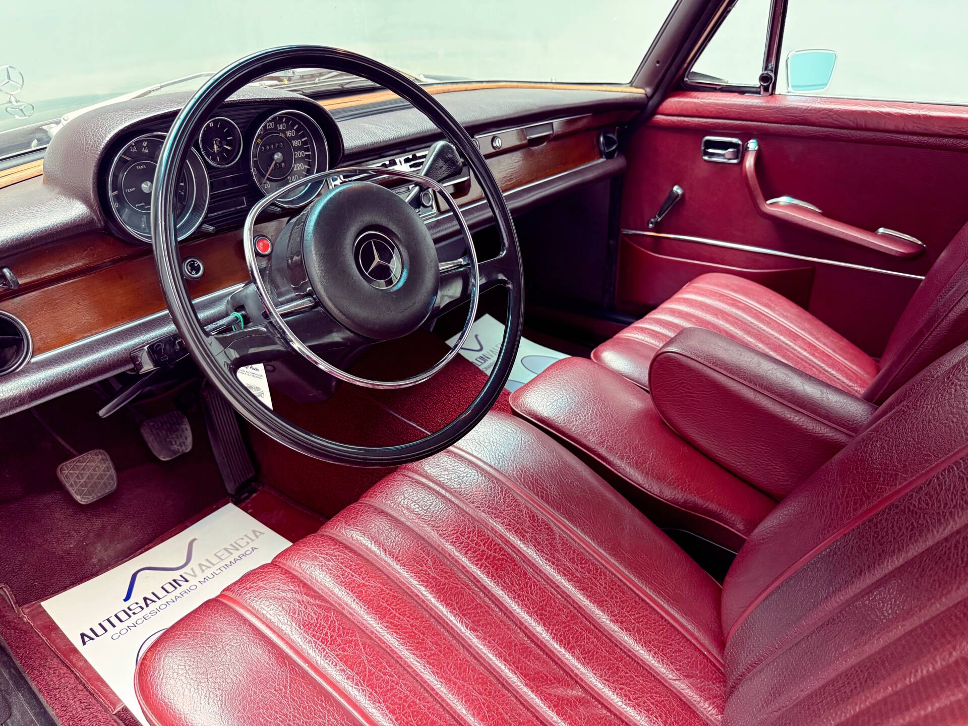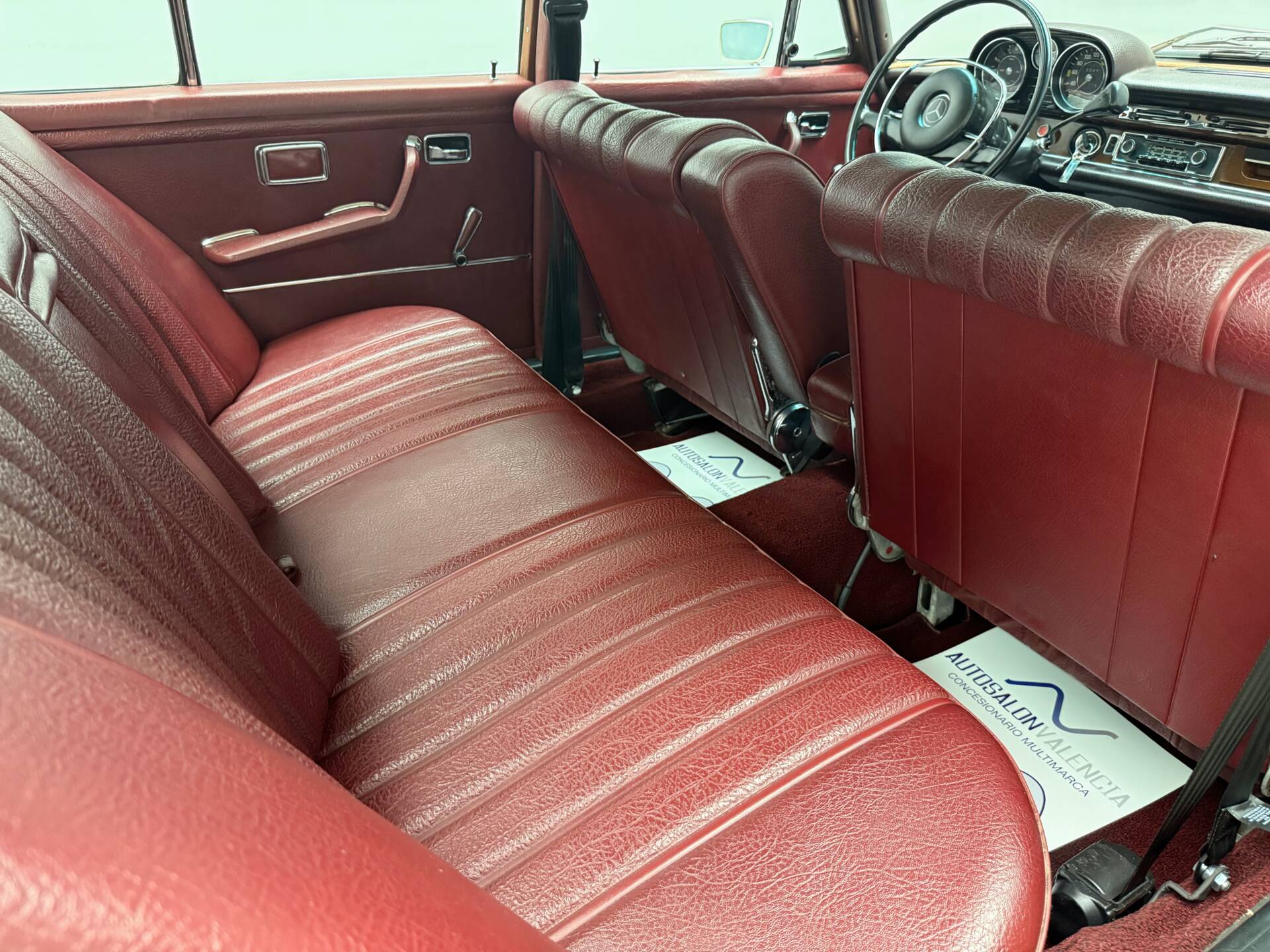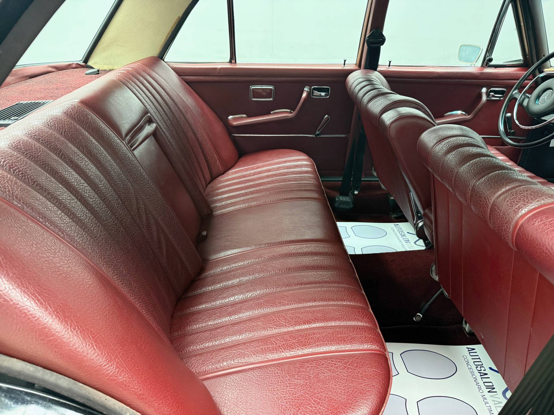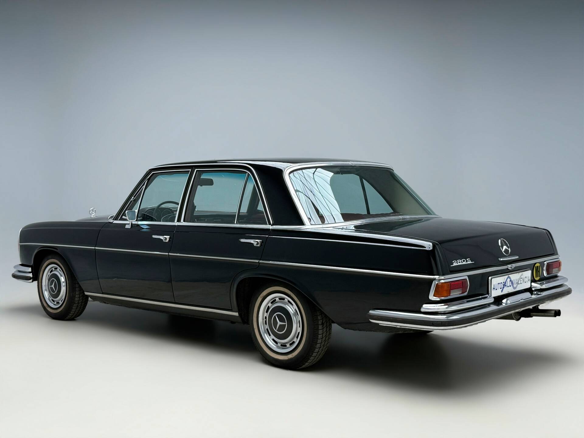 Mercedes-Benz 280 SE W108 from 1970 in an elegant black color combination with burgundy leather interior.