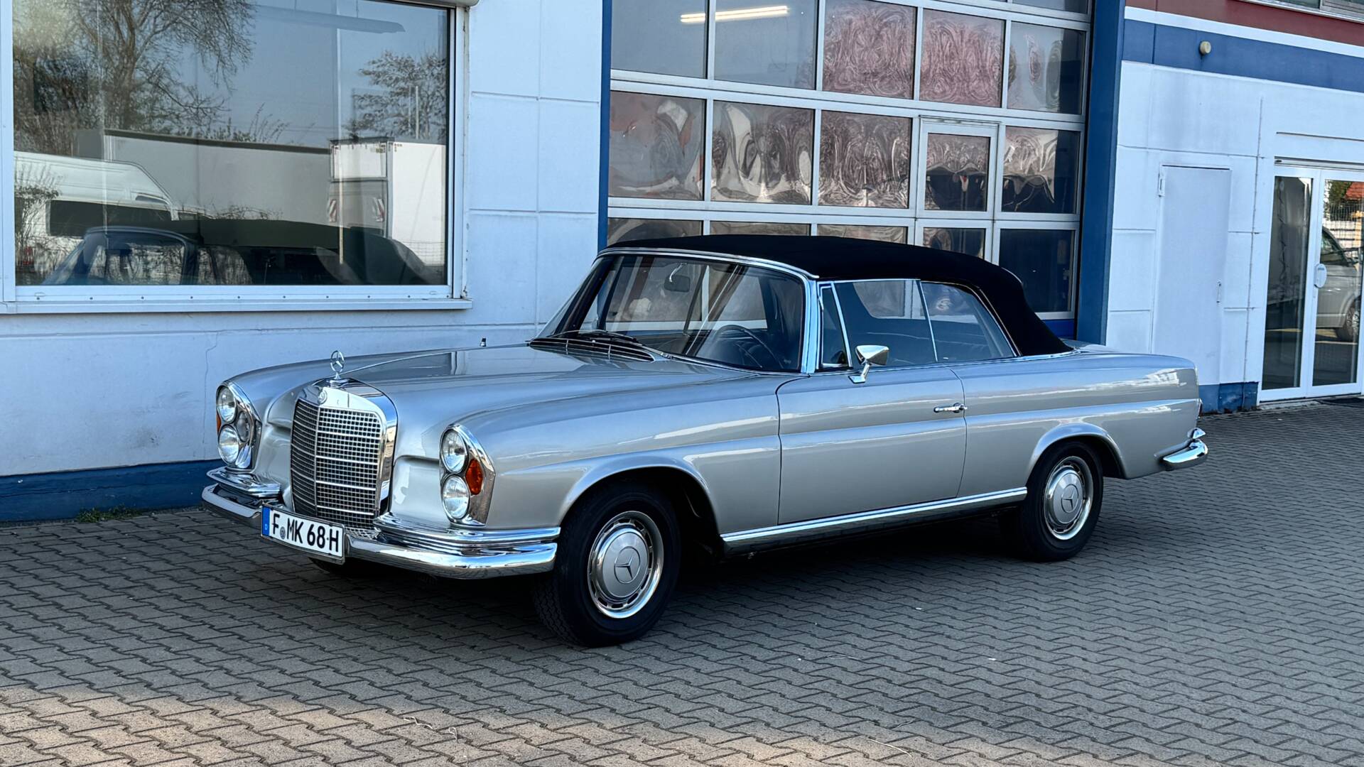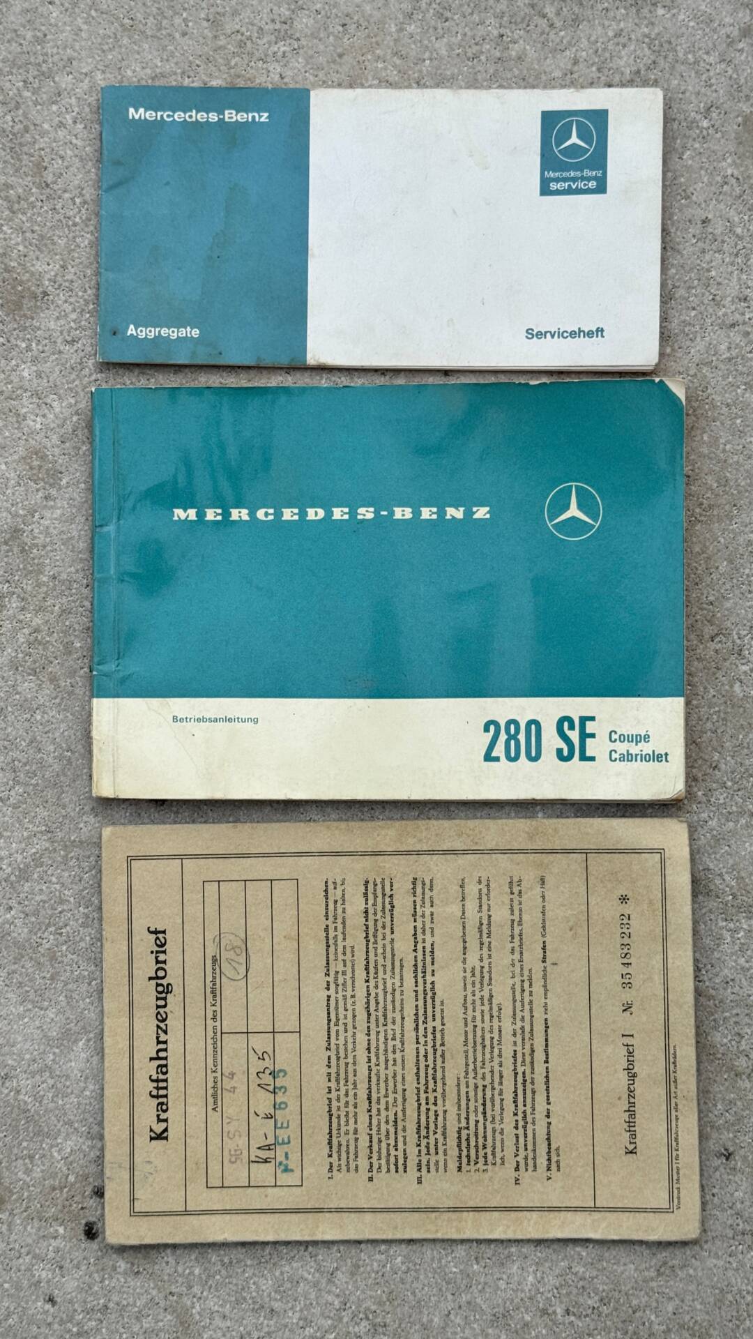 Das Cabriolet hat 4 Vorbesitzer und befindet sich seit 25 Jaren in meinem Besitz und wurde regelmäßig durch die Fa. Walter Pusch ( Mercedes Oldtimer Spezialist ) gewartet. Hier erhält er im Moment neuen TÜV und einen Ölwechsel.
